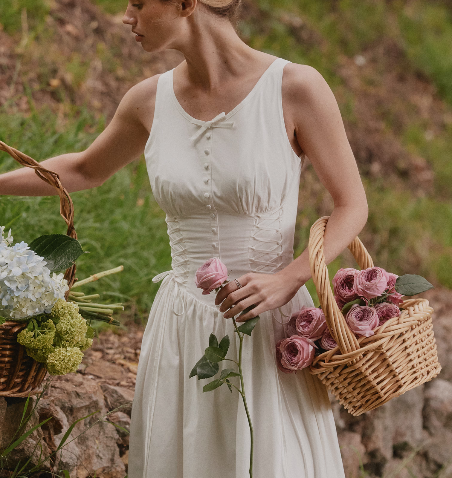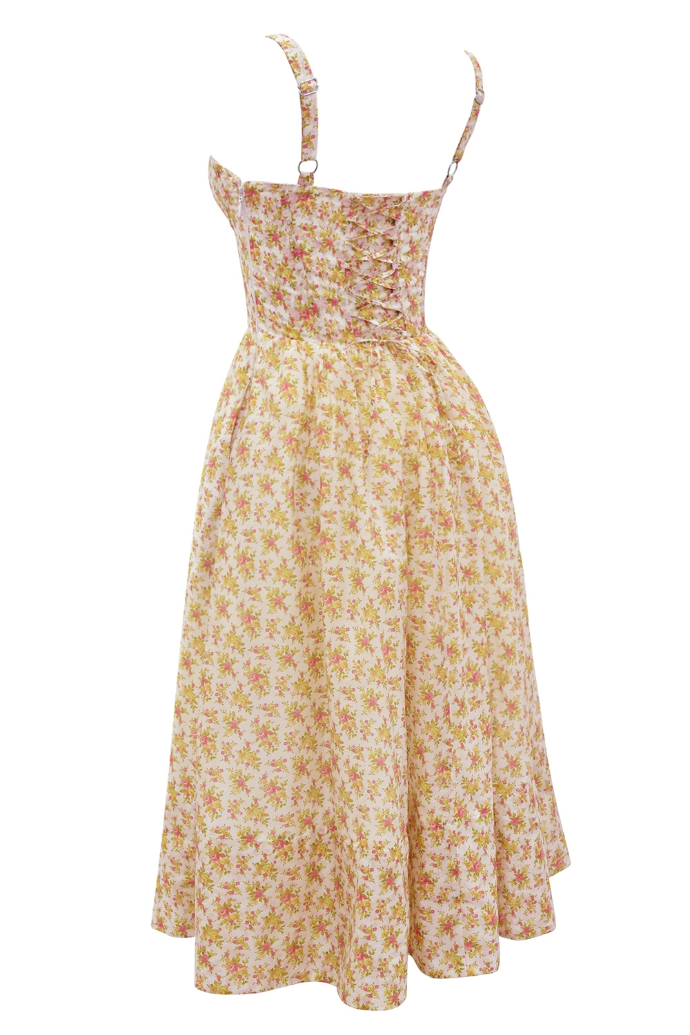 • White Rosebud Print Cotton Midi Sundress White Rosebud Print Cotton Midi Sundress