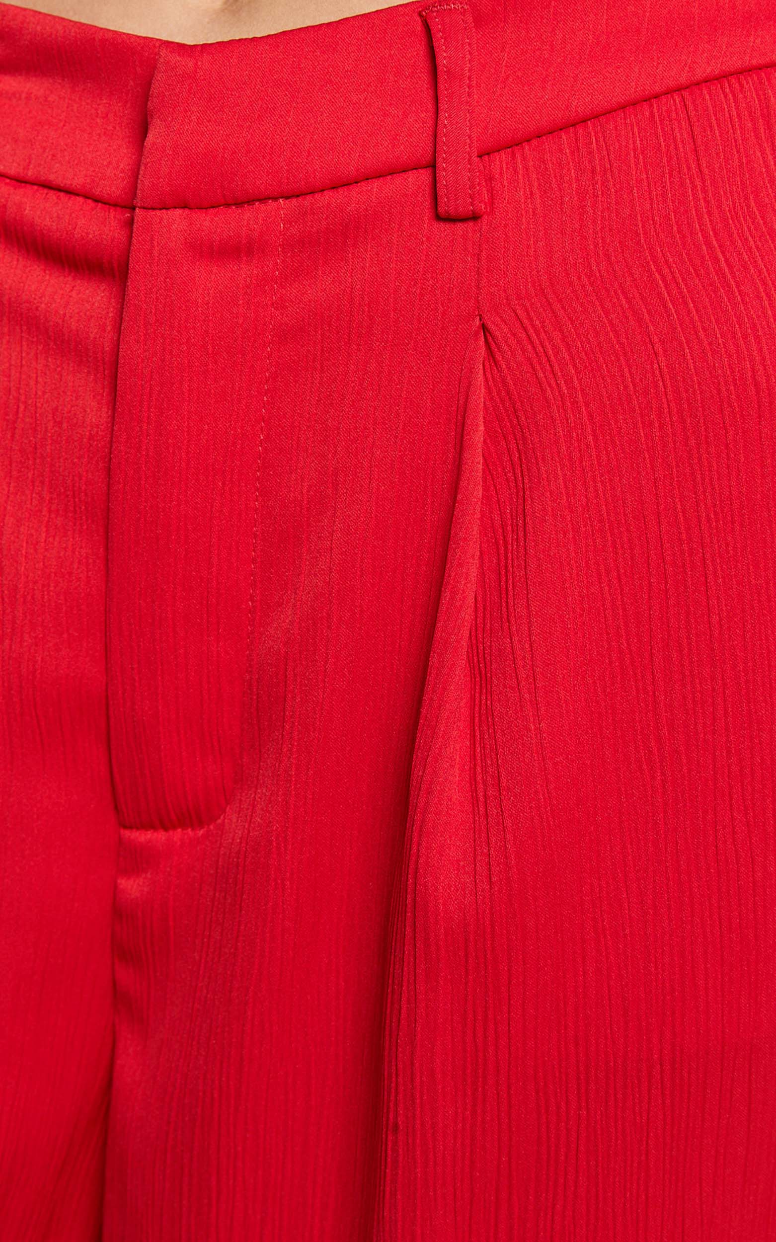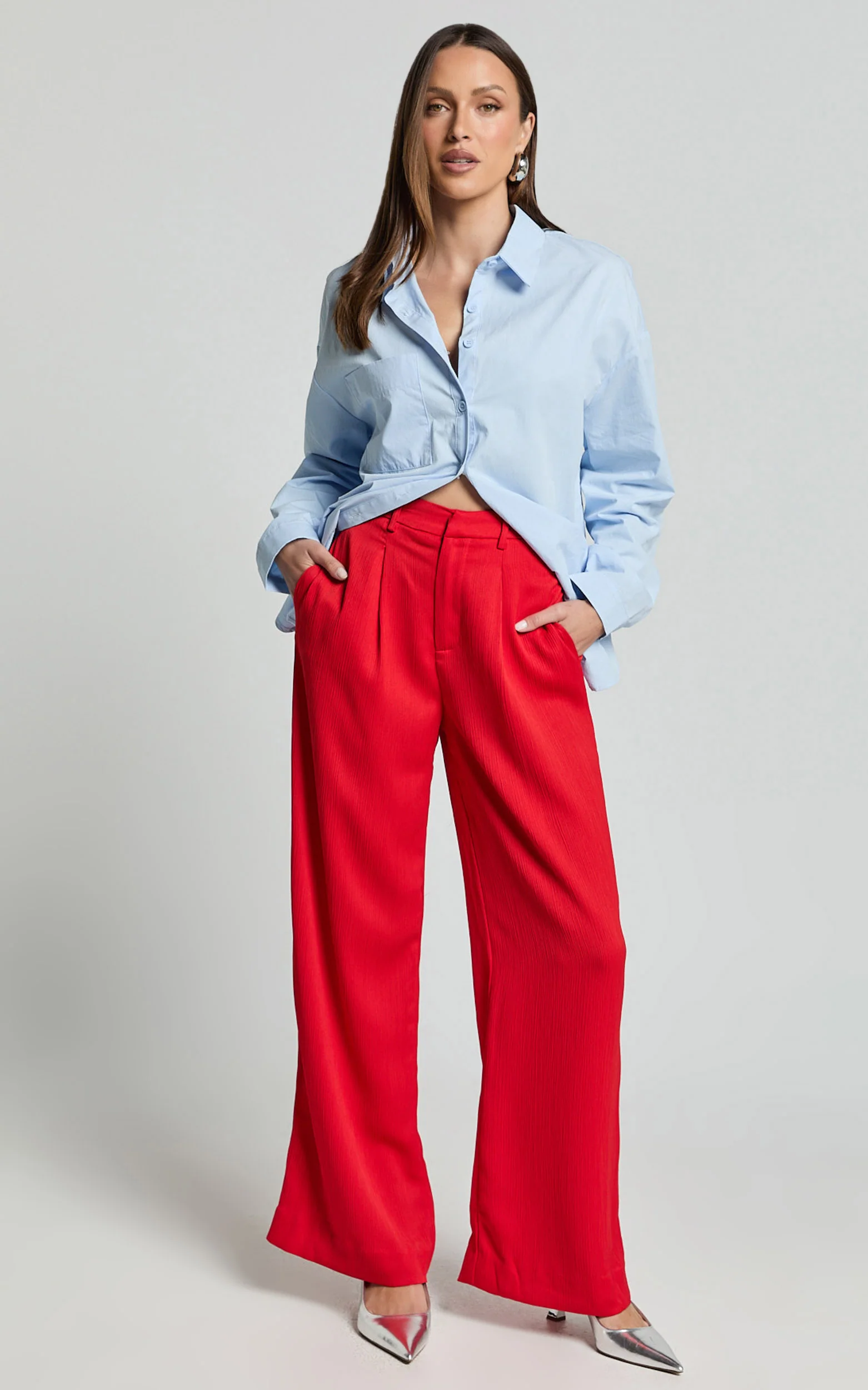 Jacie Pants - High Waisted Relaxed Textured Pants in Red