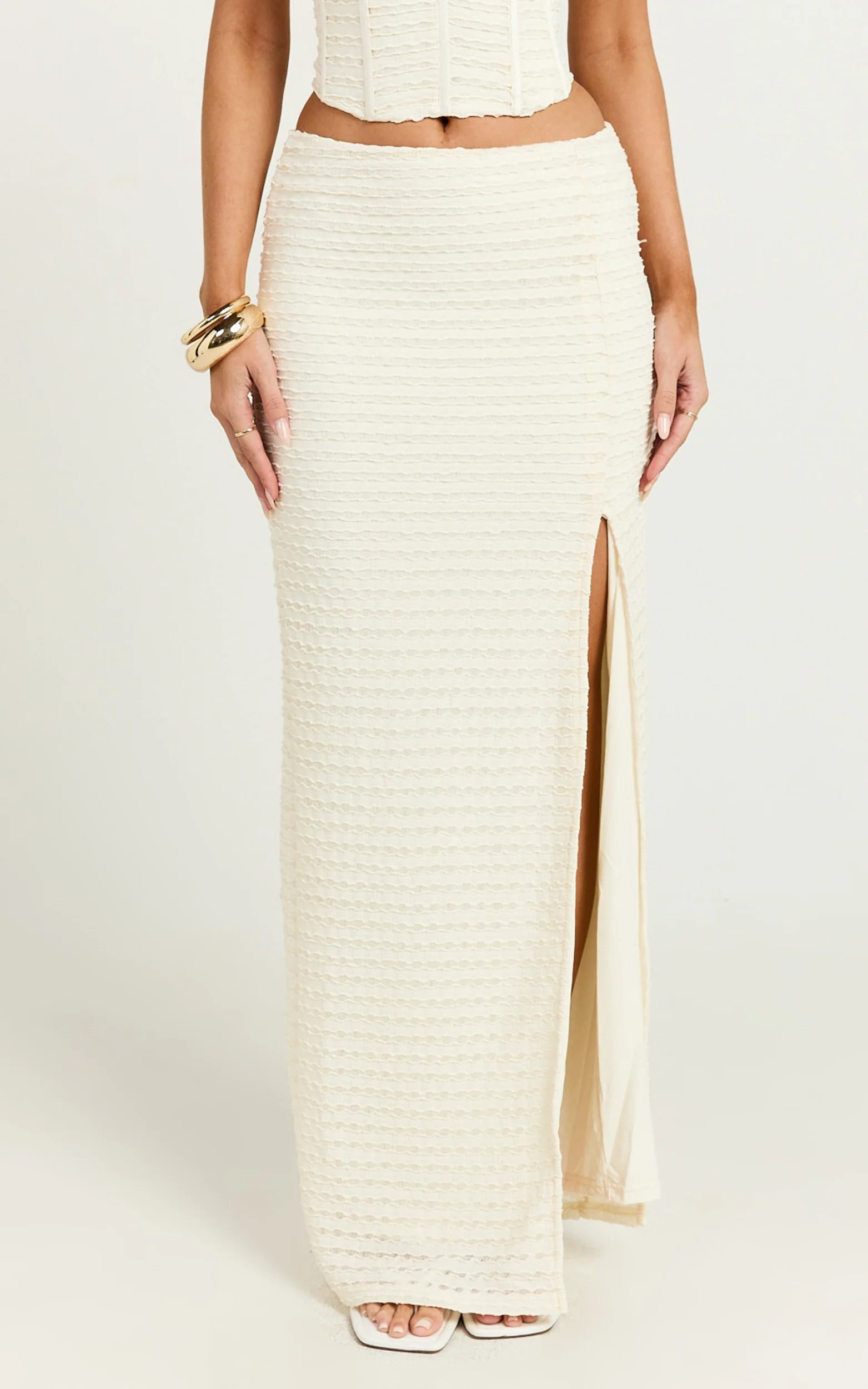 Christina Maxi Skirt - Crochet Maxi Skirt With Front Split in Cream