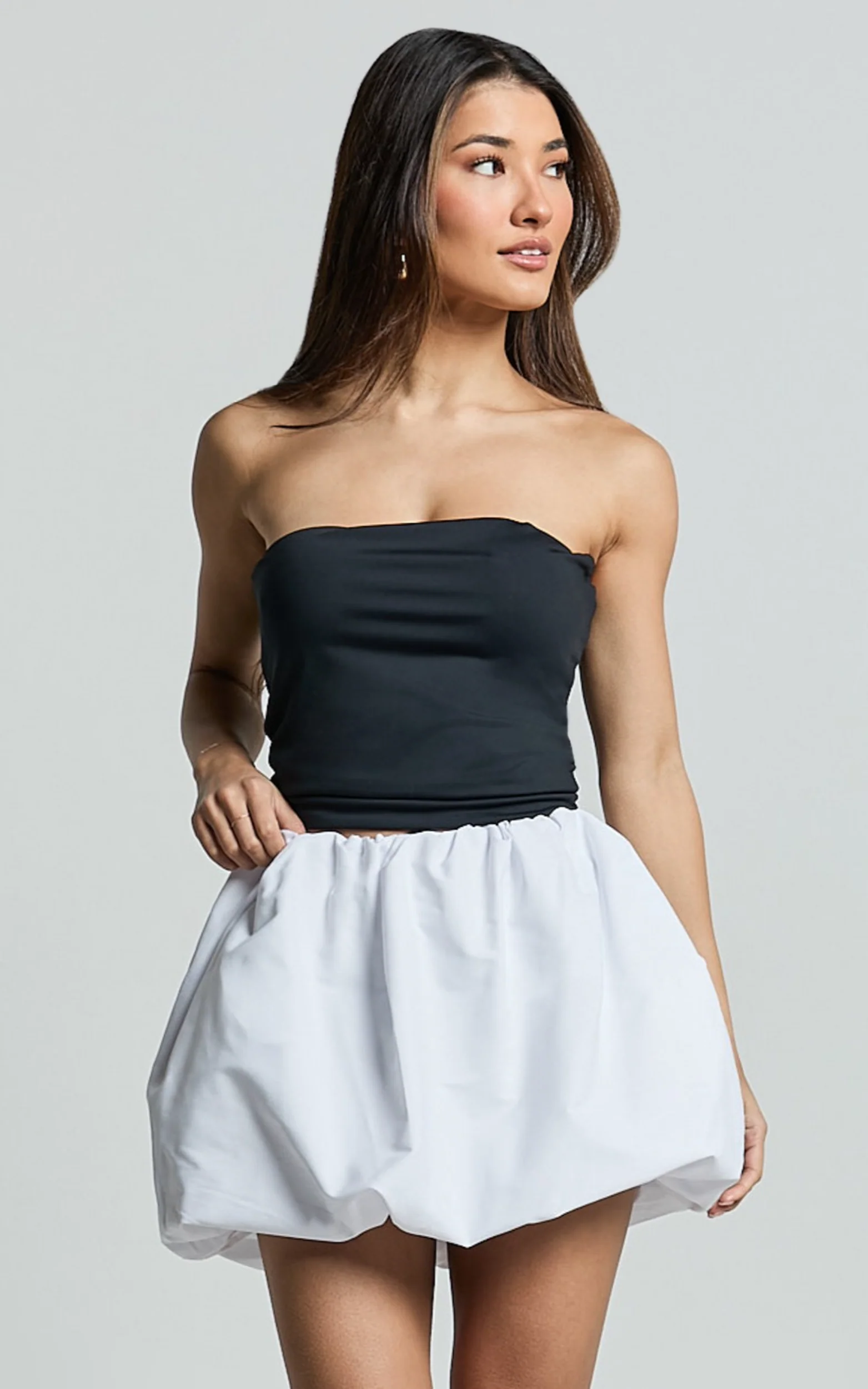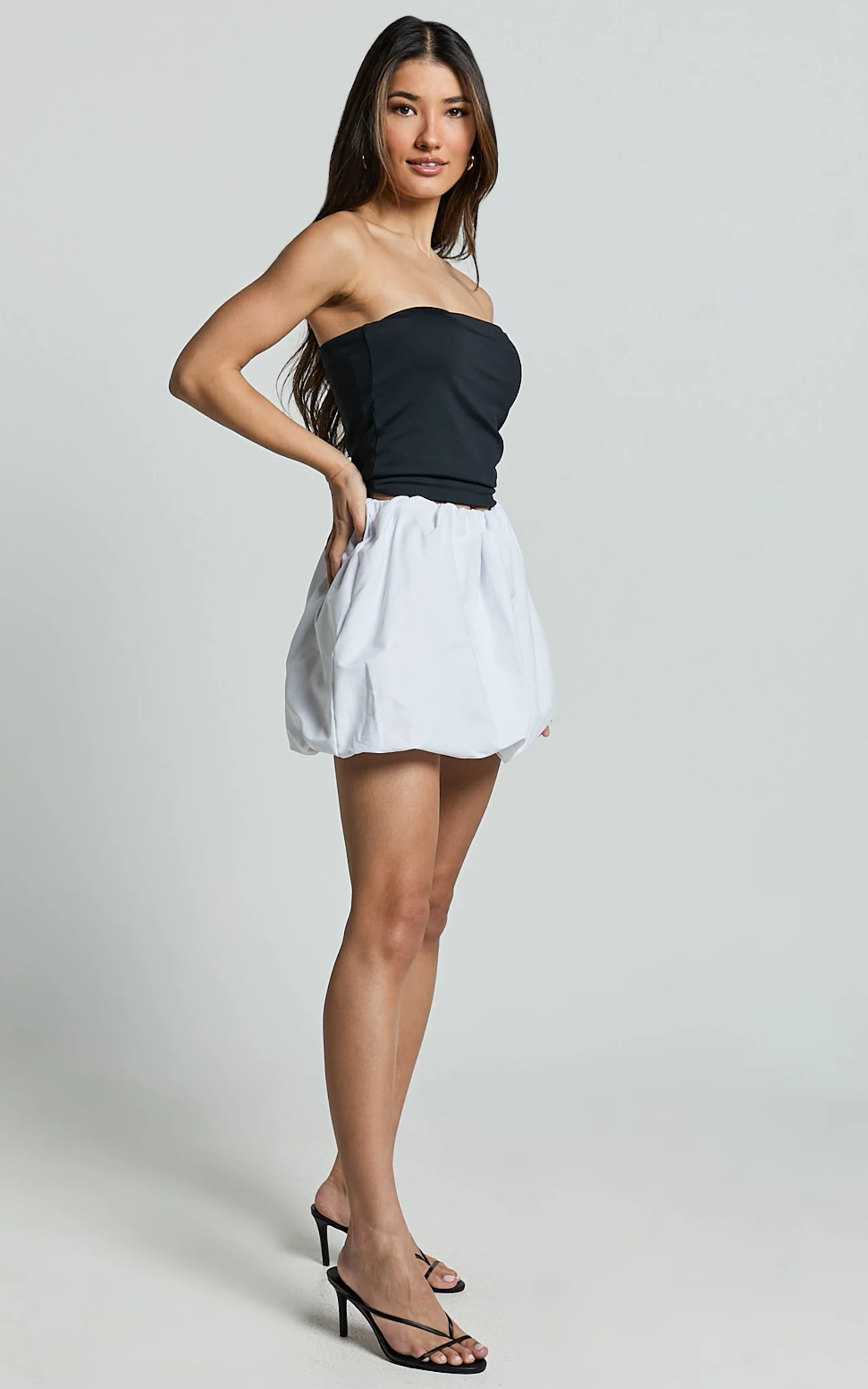 Abbey Mini Skirt - Bubble Hem Skirt in White