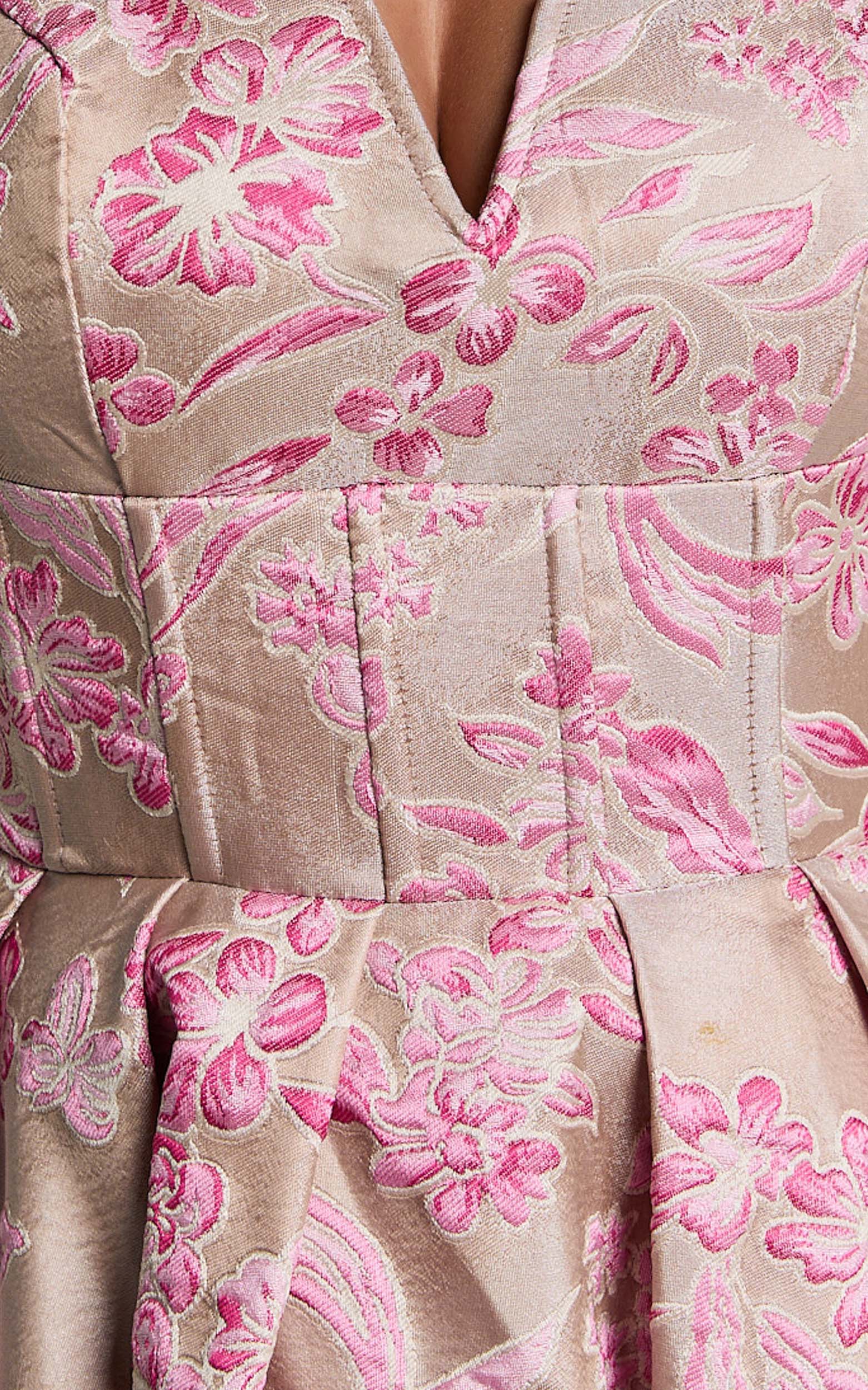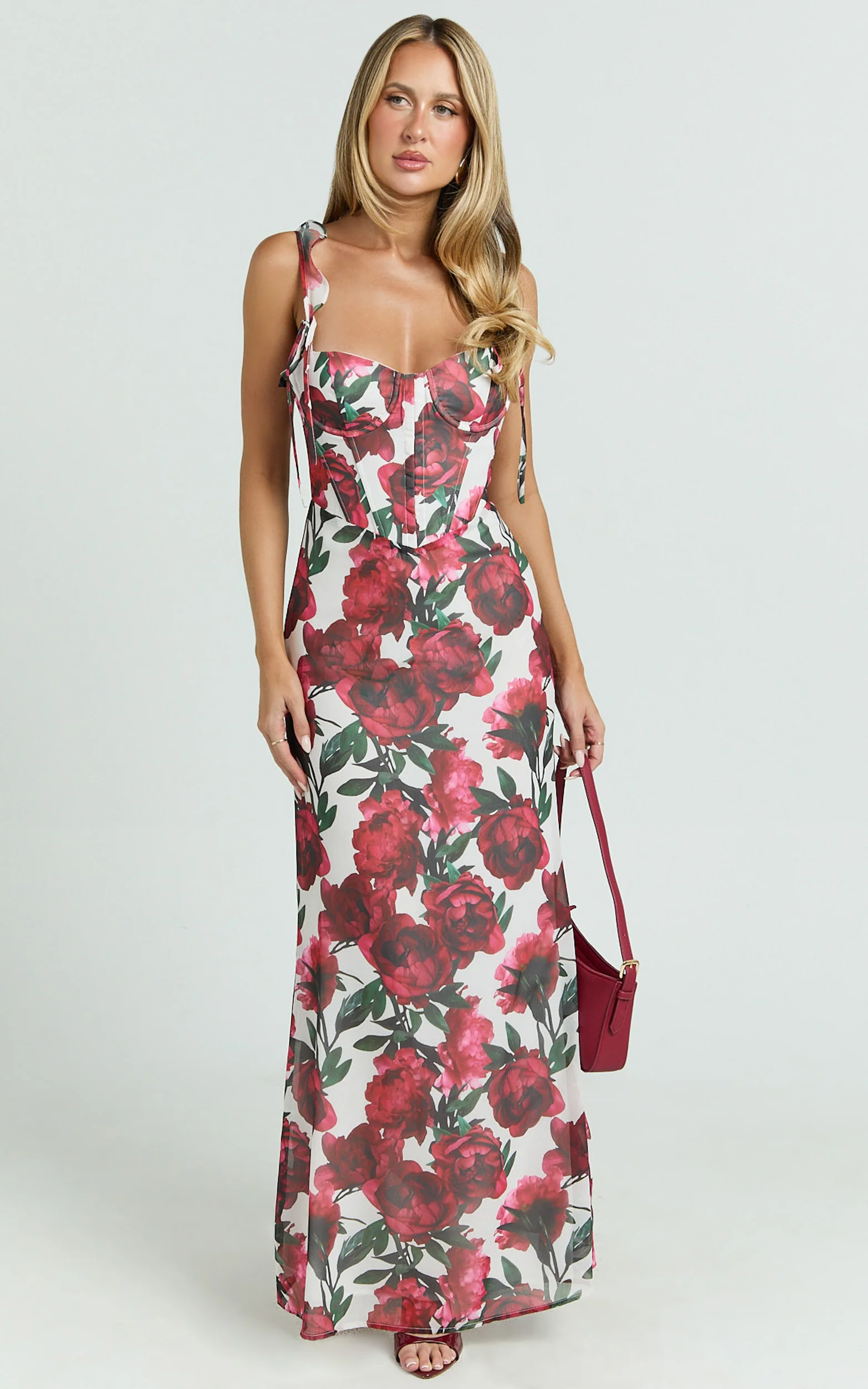 Mabel Maxi Dress - Georgette Frill Sleeve Sweetheart Bias Cut Dress in Rose Blanca