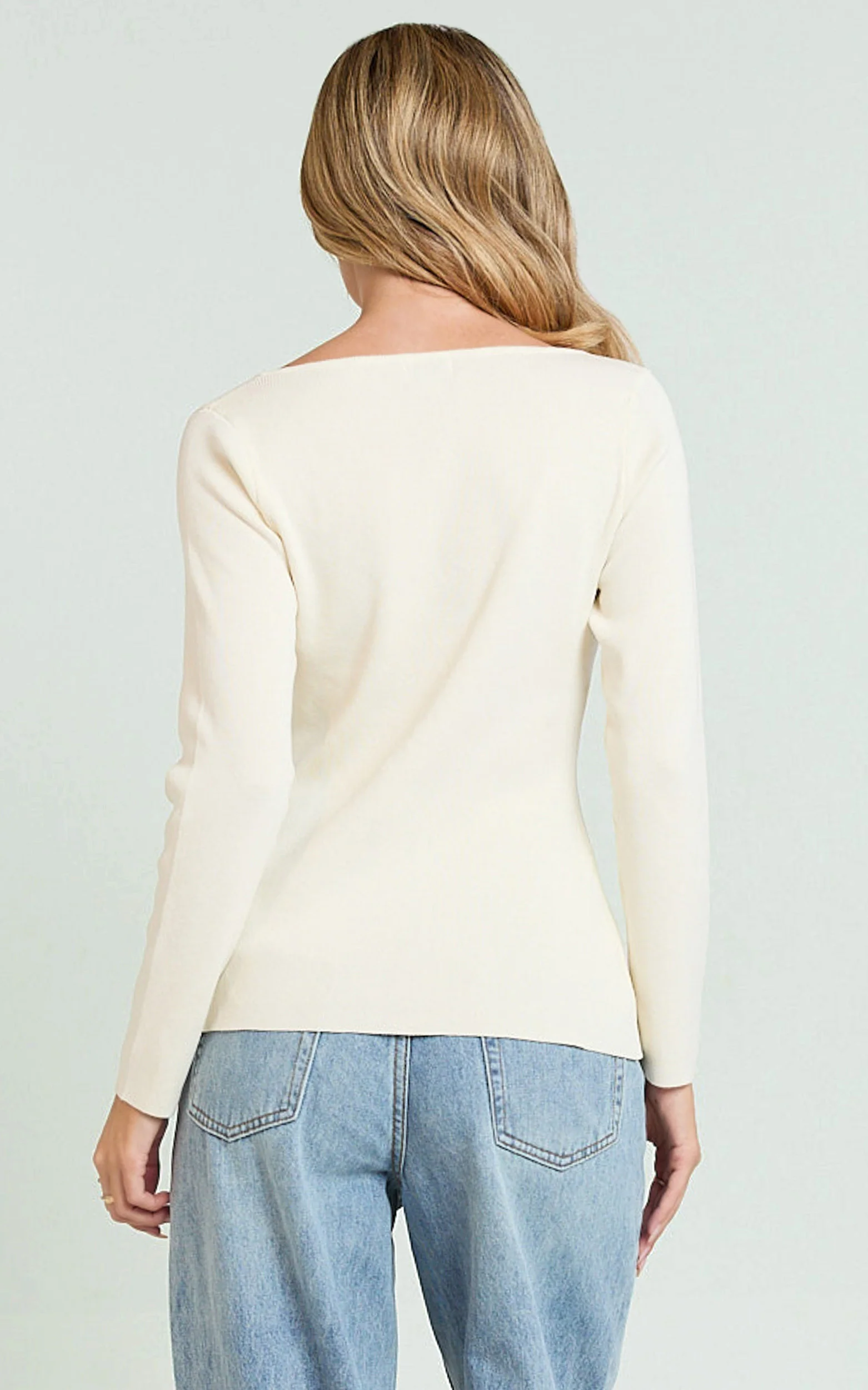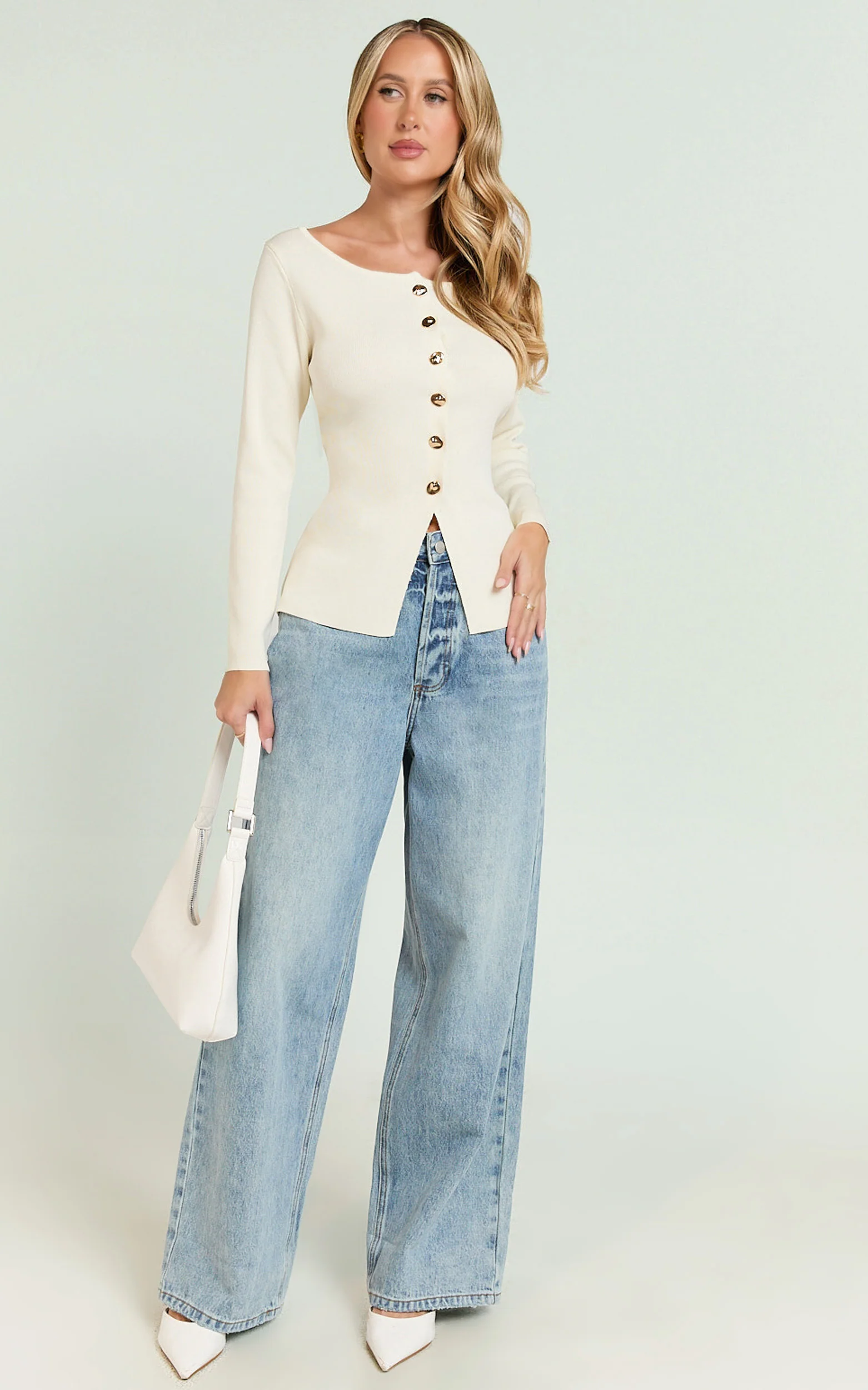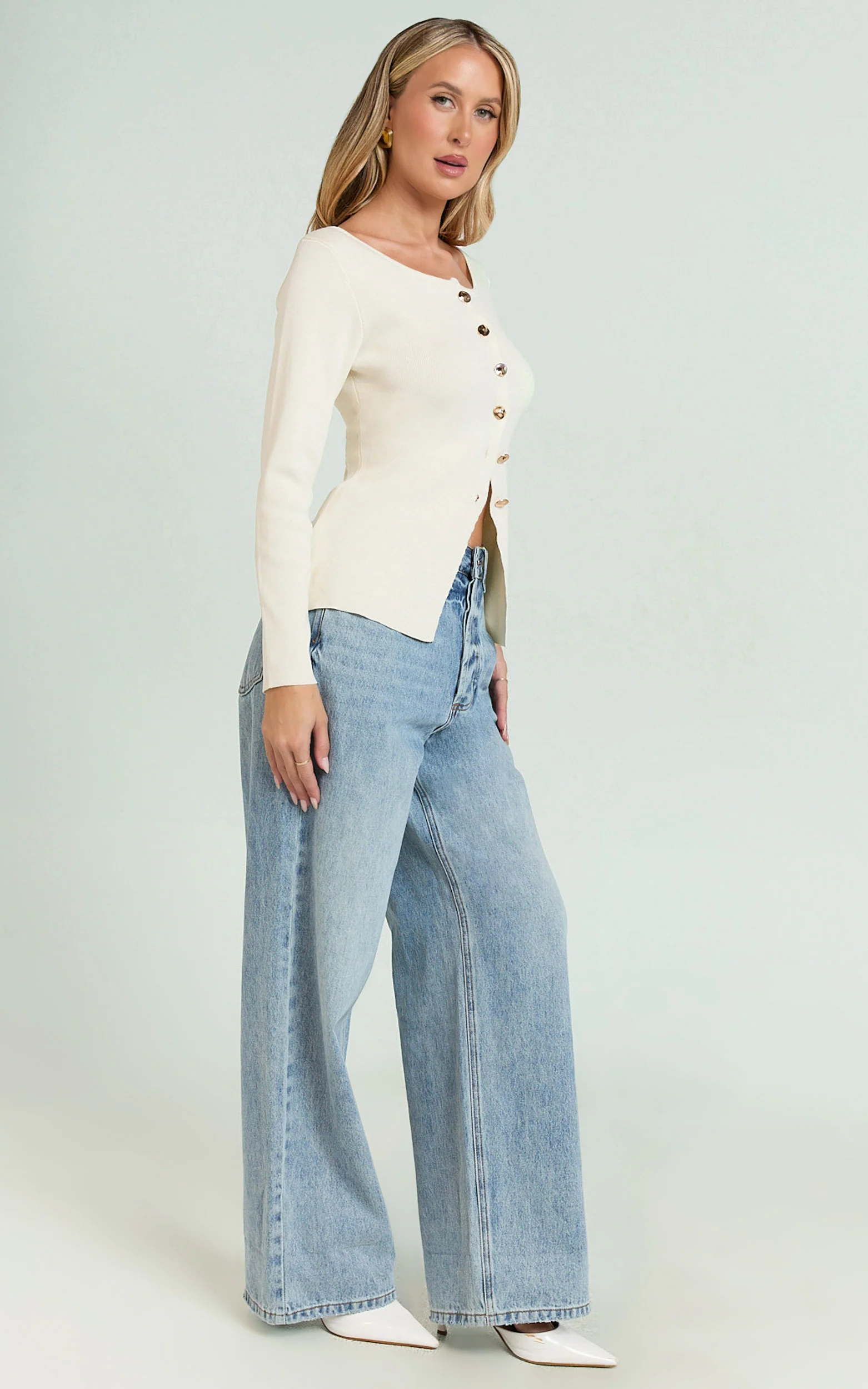 Mildred Top - Long Sleeve Button Down Top with Gold Hardwear in White