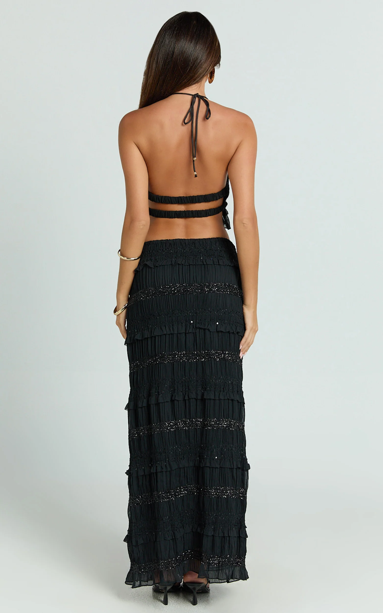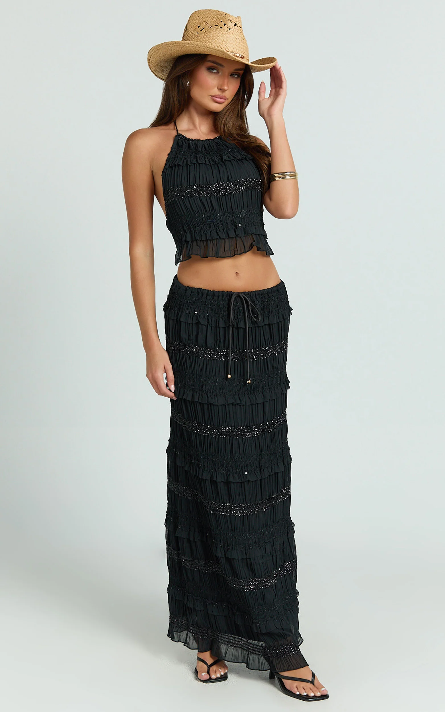 Alice Maxi Skirt - Embellished Ruched Skirt in Black