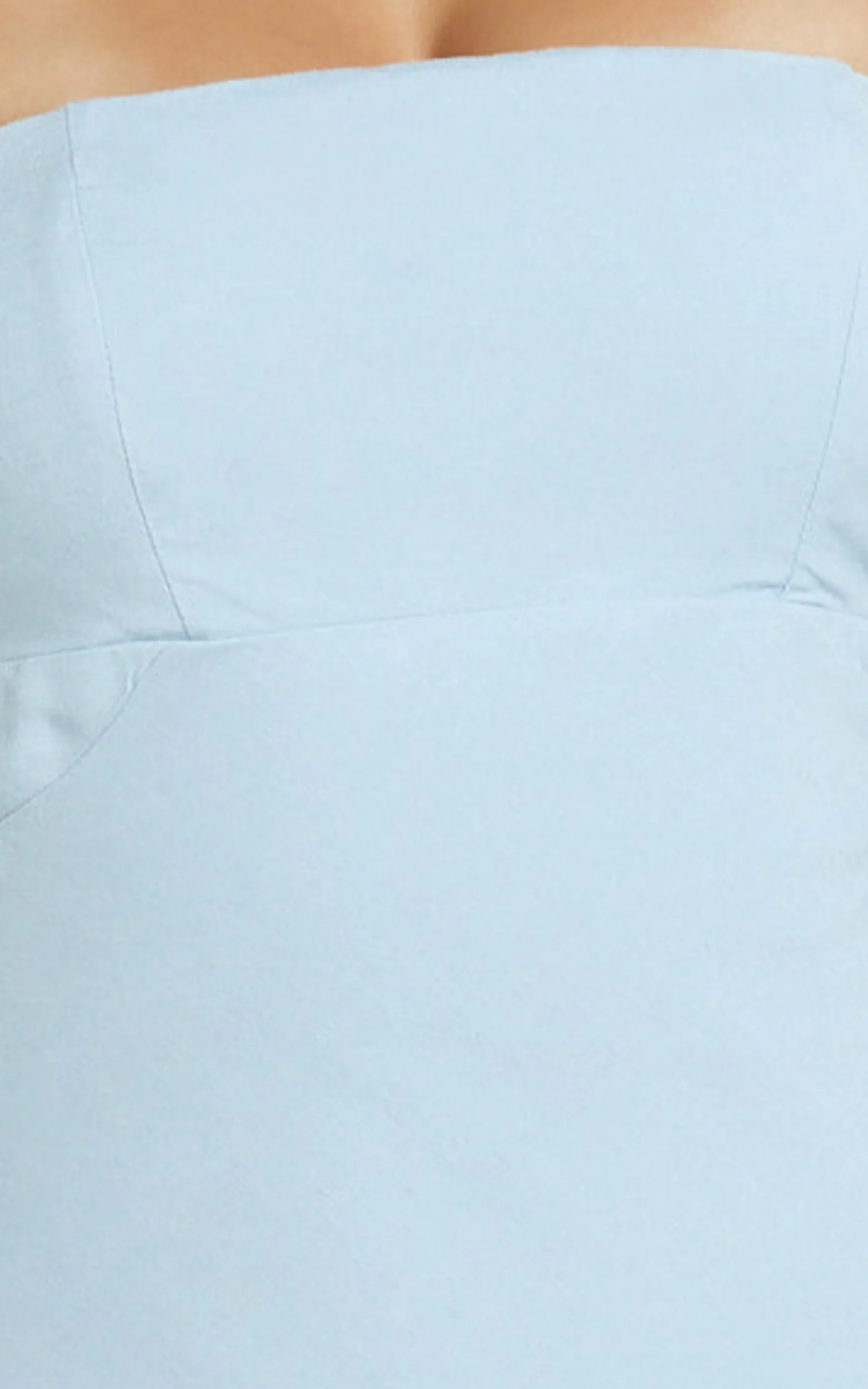 Rissie Mini Dress - Strapless Open Back Dress in Blue