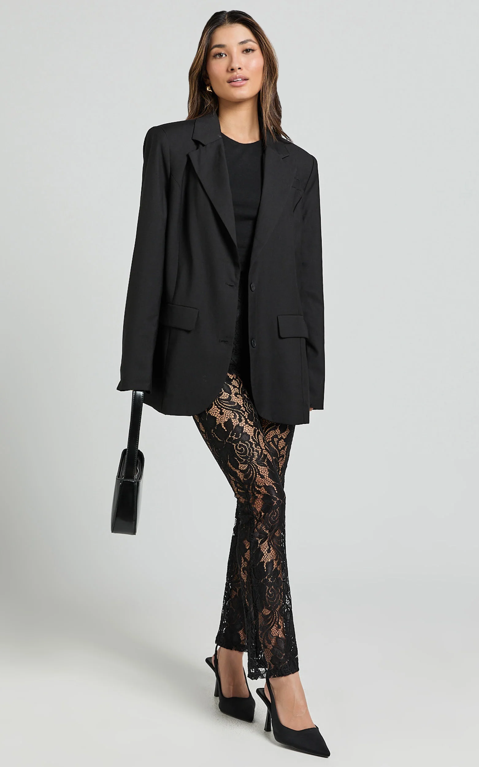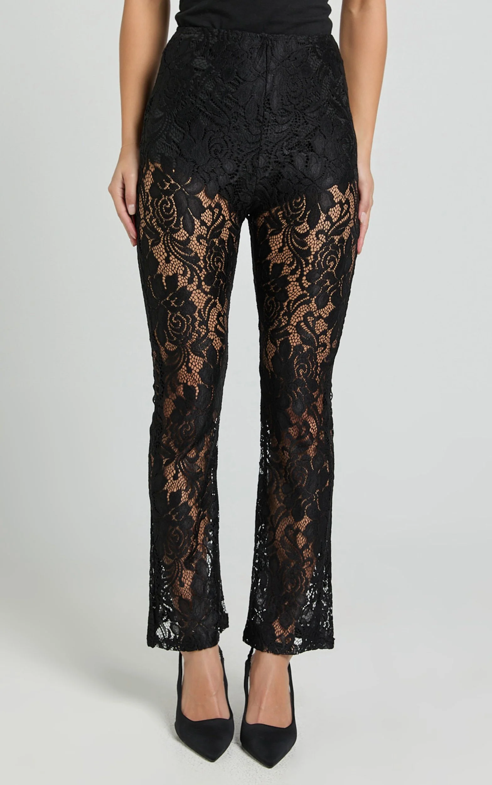Jaclyn Pants - Mid Waist Lace Straight Leg Pants in Black