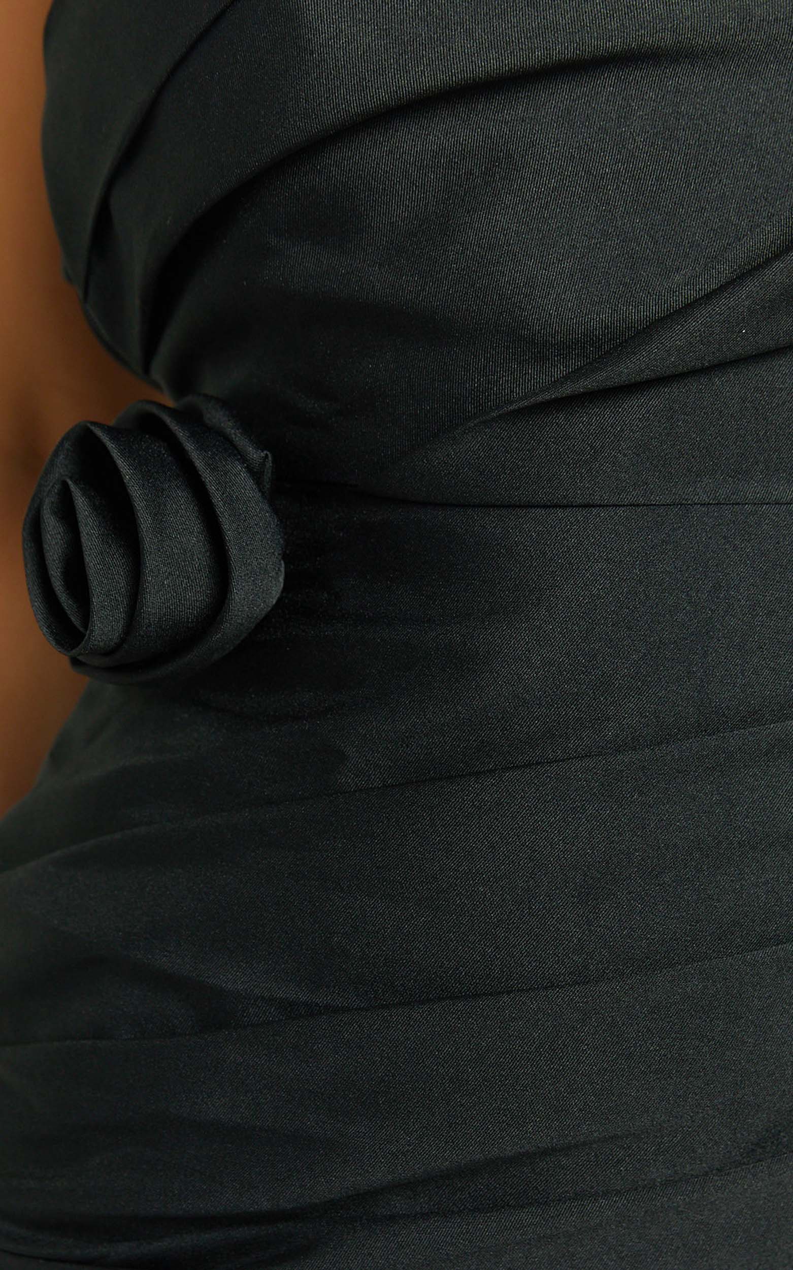 Sheeran Mini Dress - One Shoulder Rose Gathered Dress in Black