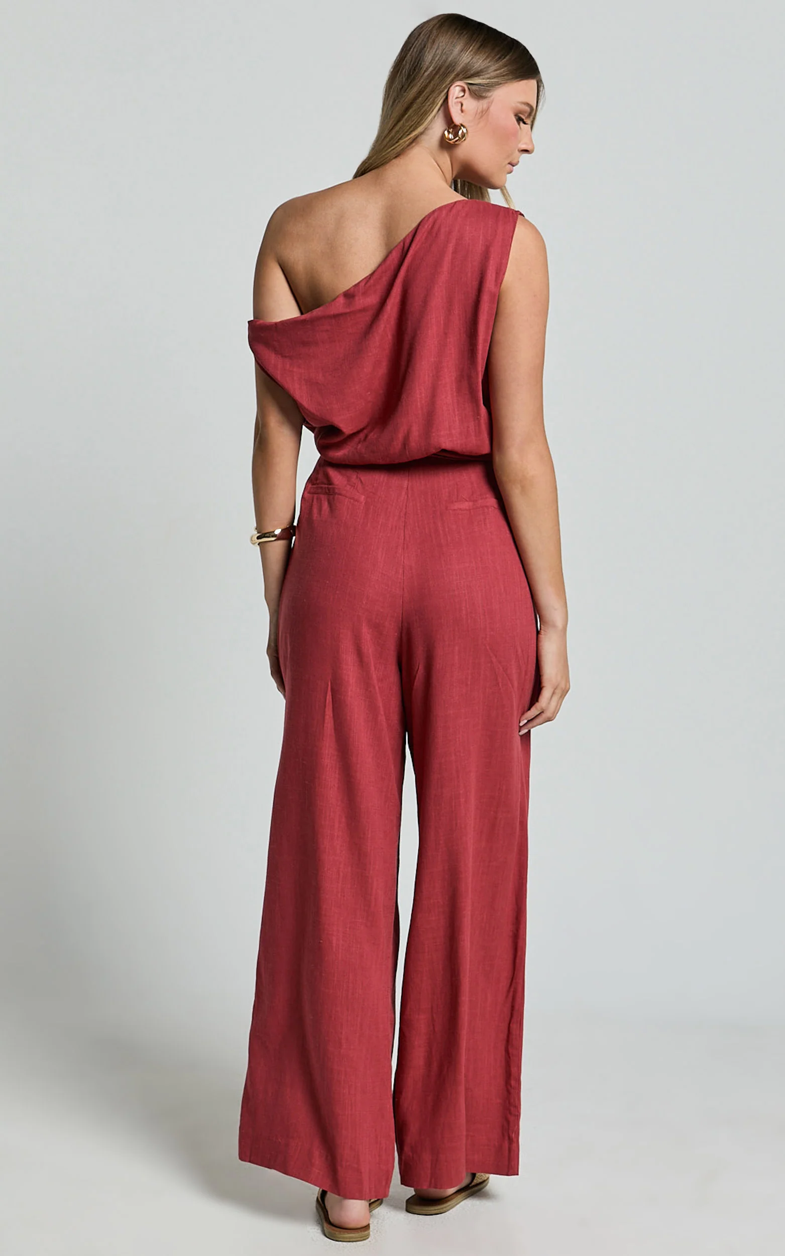 Adria Jumpsuit - Asymmetrical Short Sleeve Linen Jumpsuit in Clay