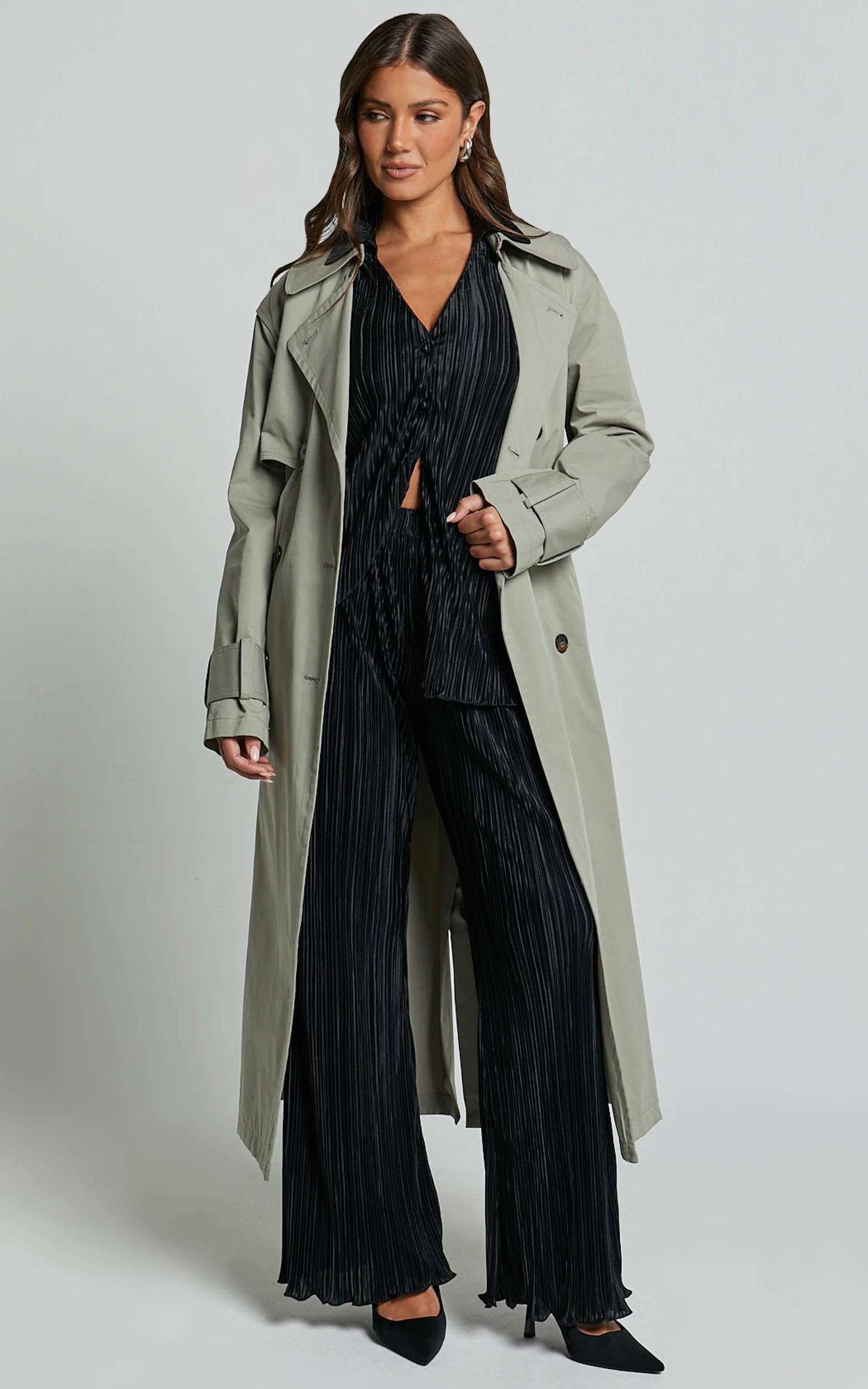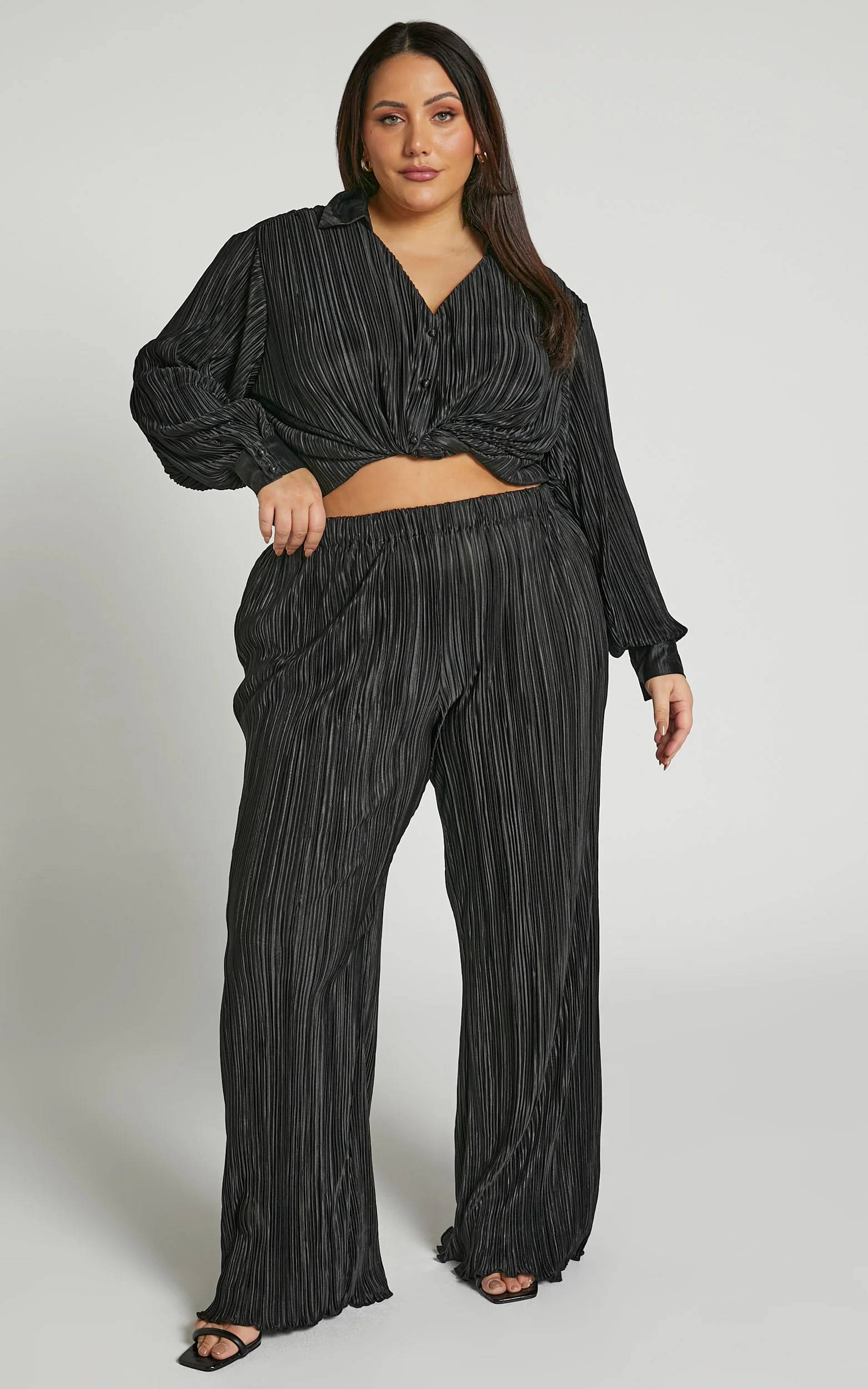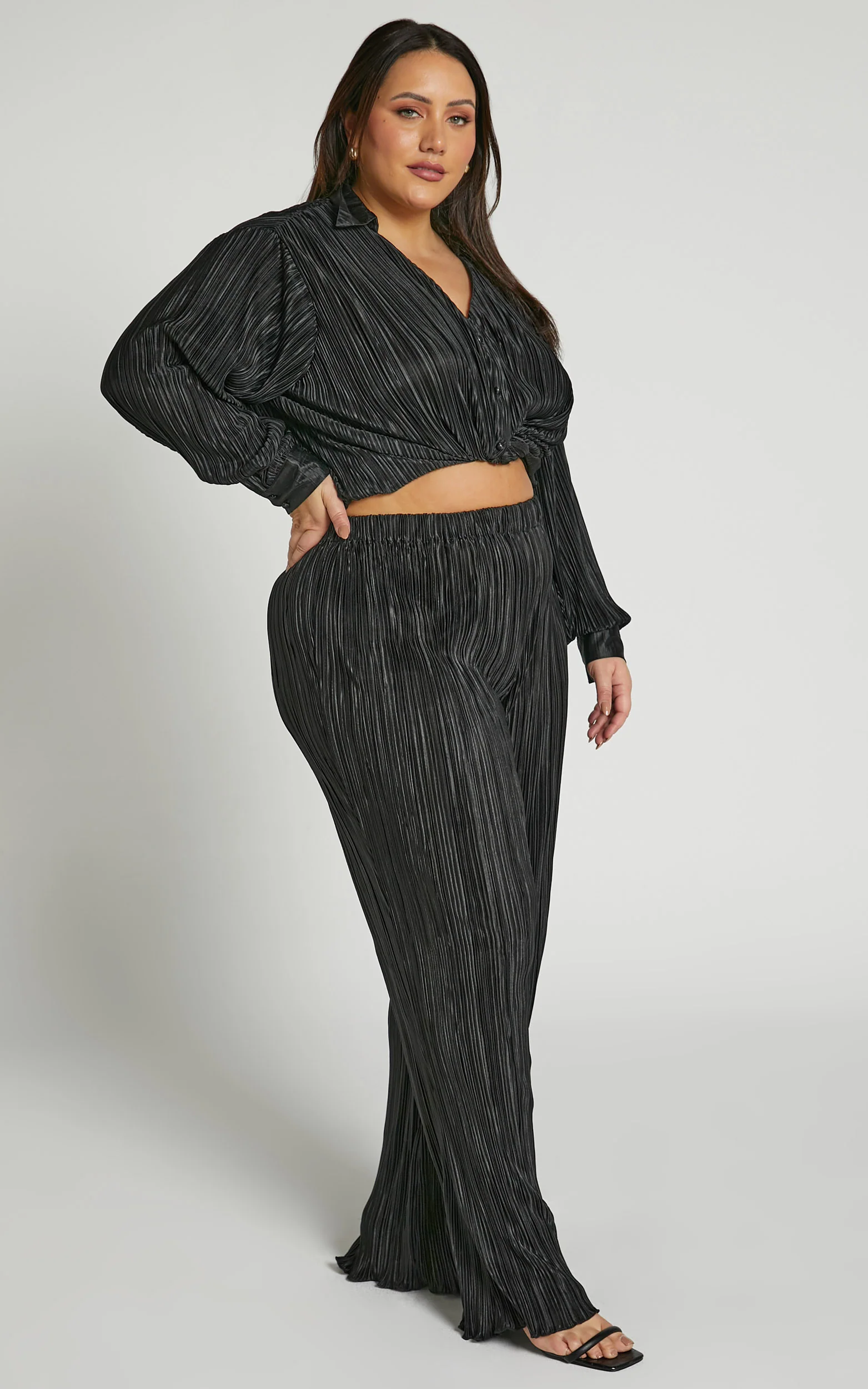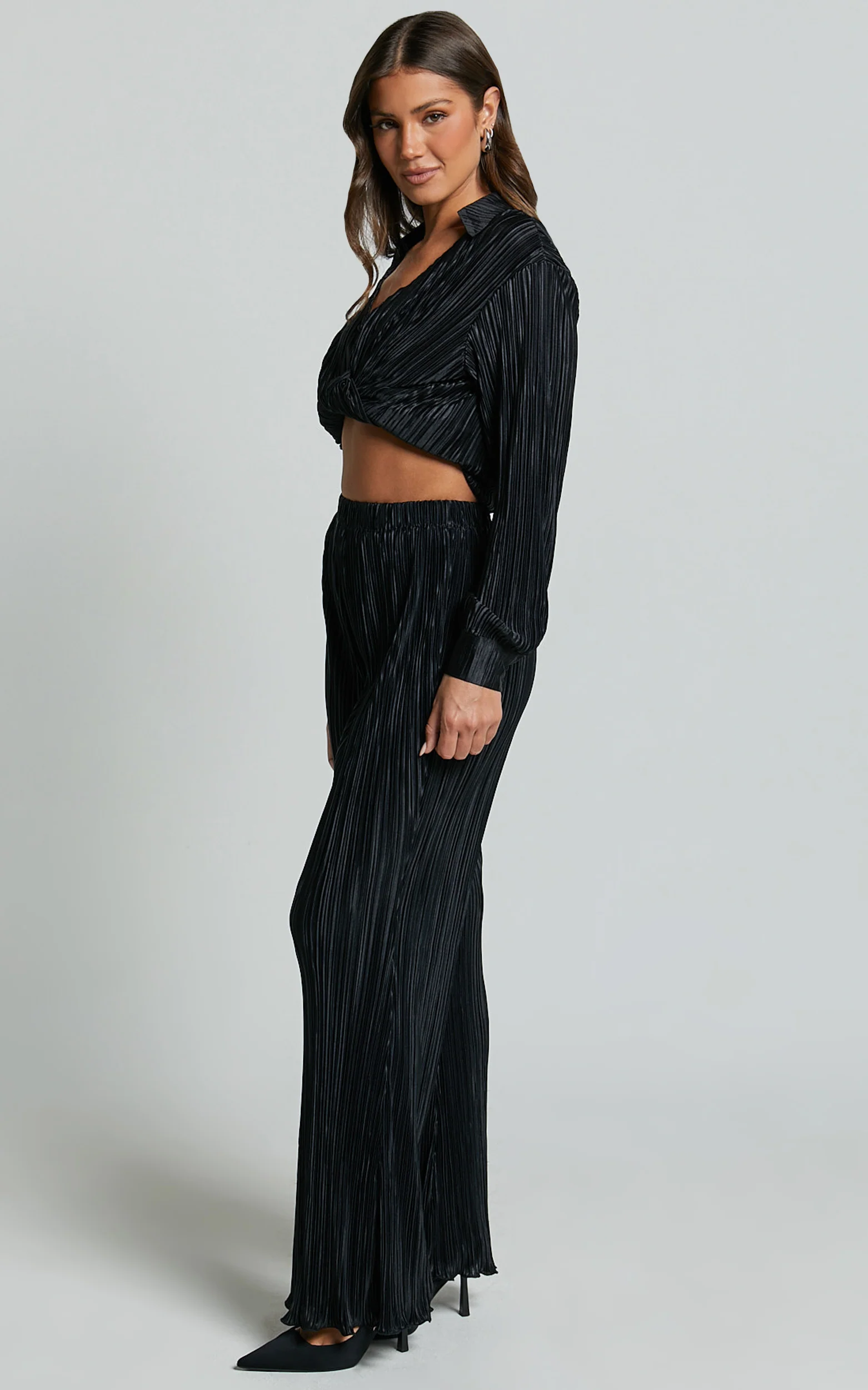 Beca Pants - High Waisted Plisse Flared Pants in Black