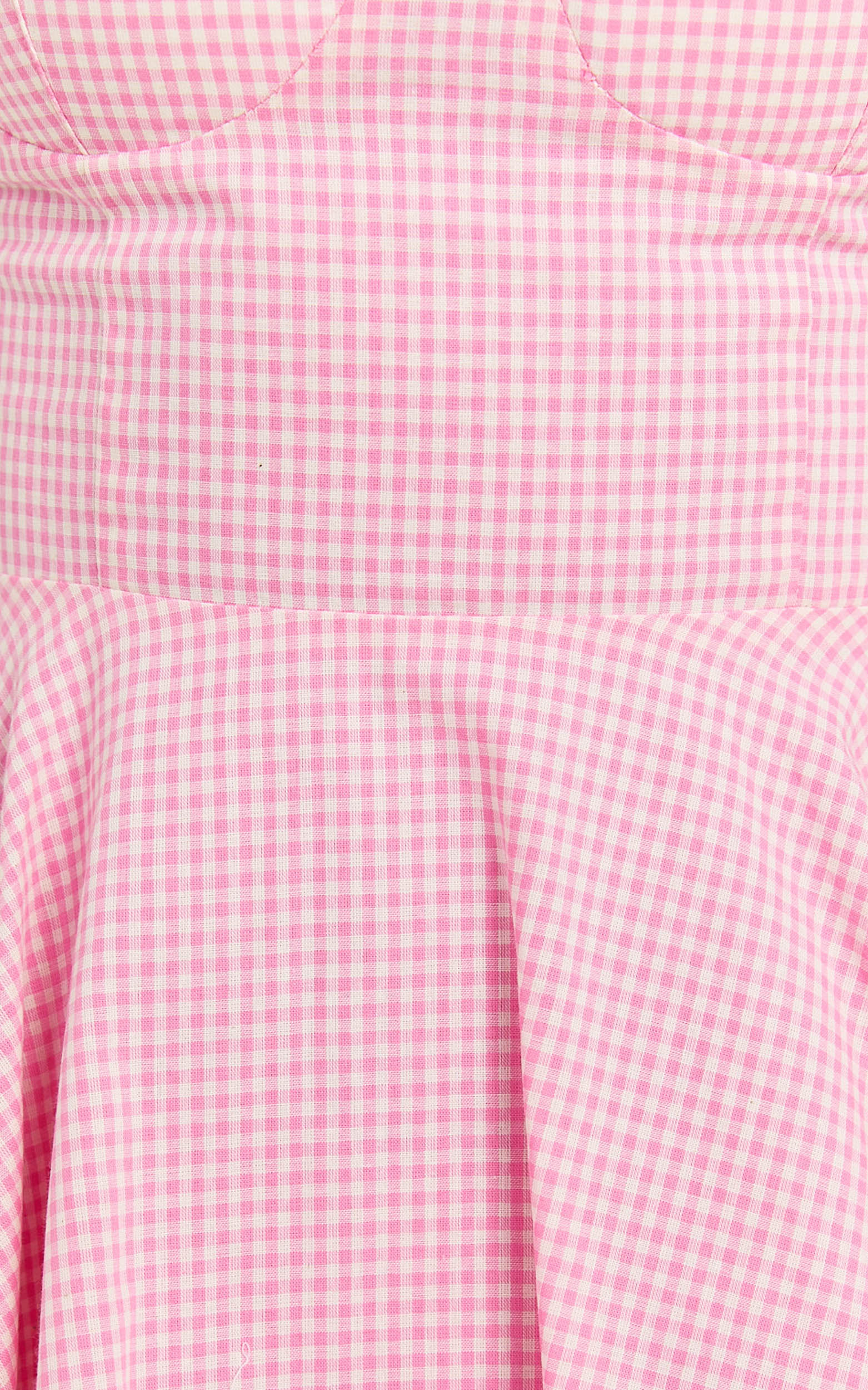 Girley Mini Dress - Bow Strap Dress in Pink Gingham