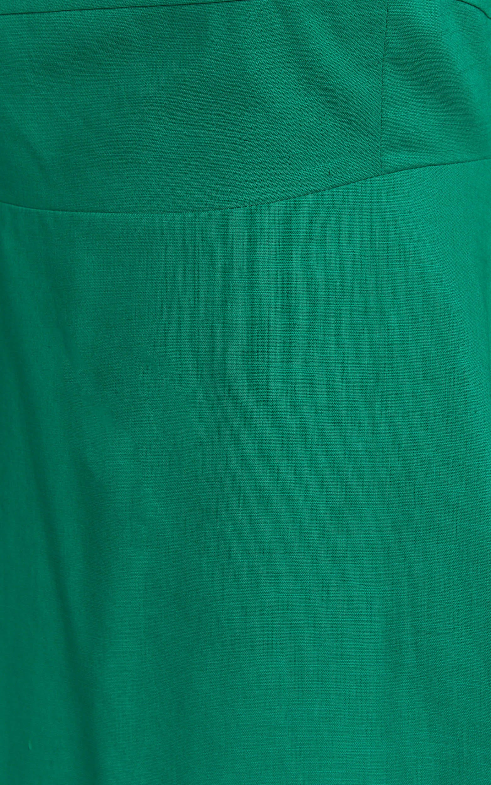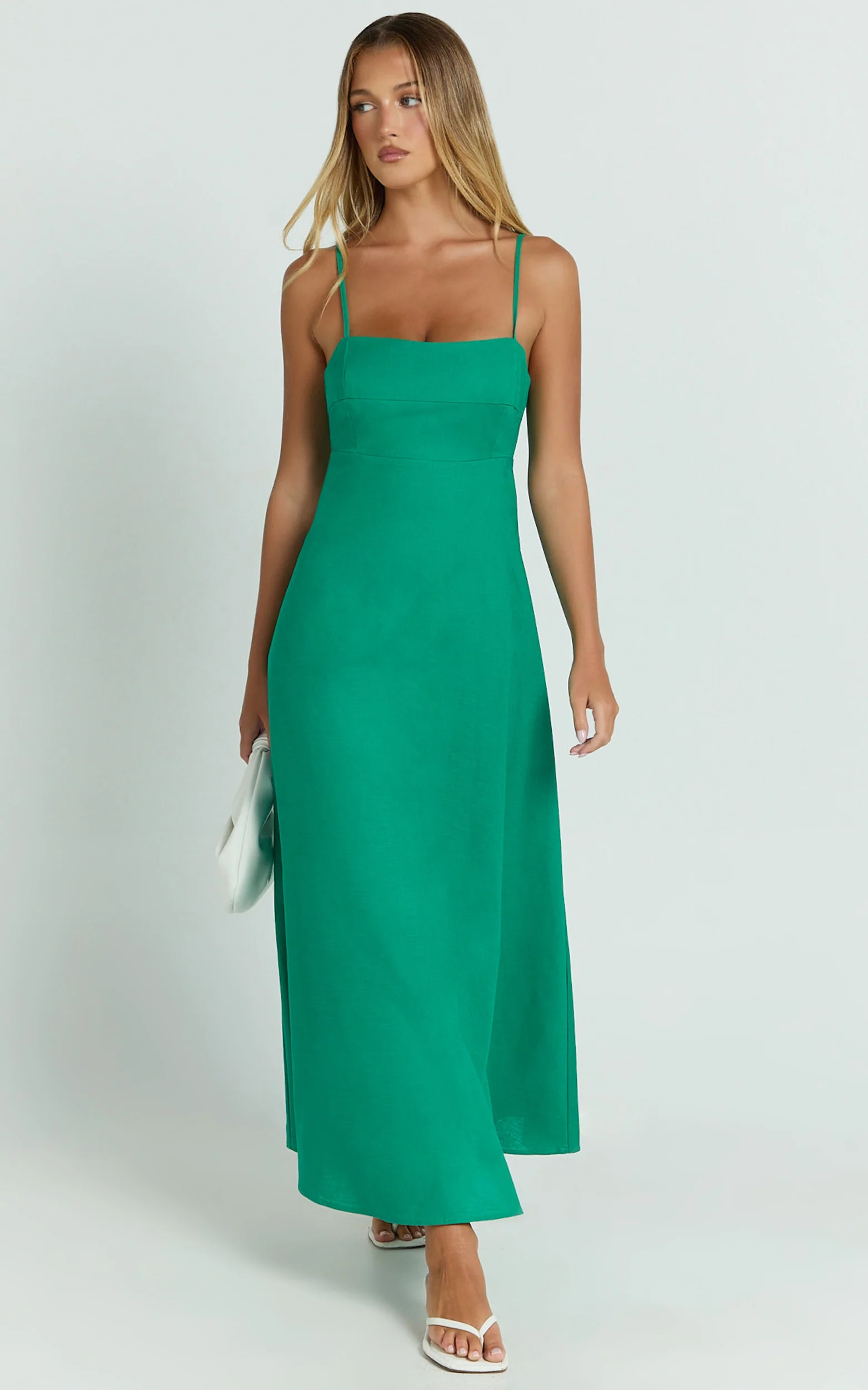 Brette Midi Dress - Linen Straight Neck Strappy Fit And Flare Dress in Olive