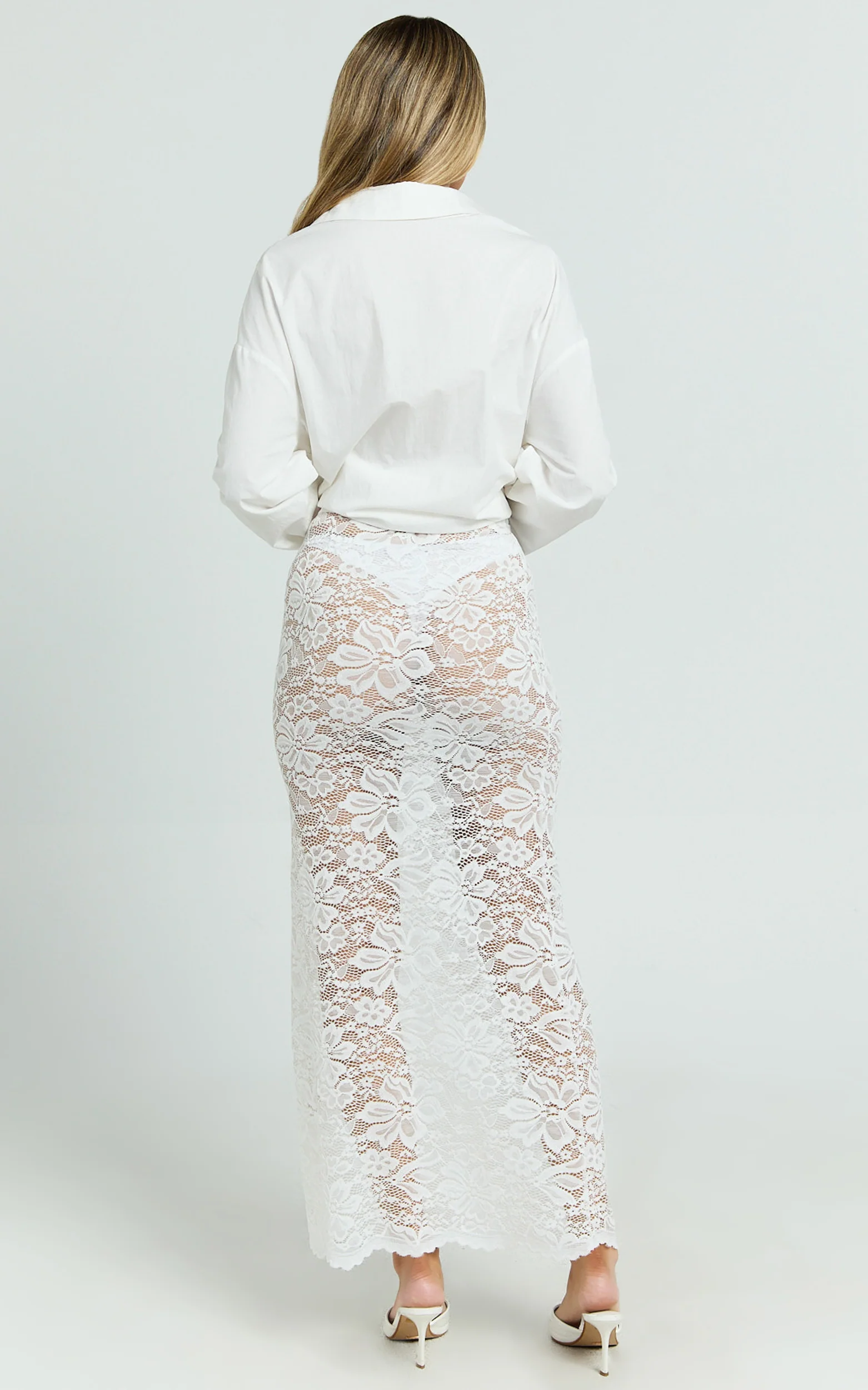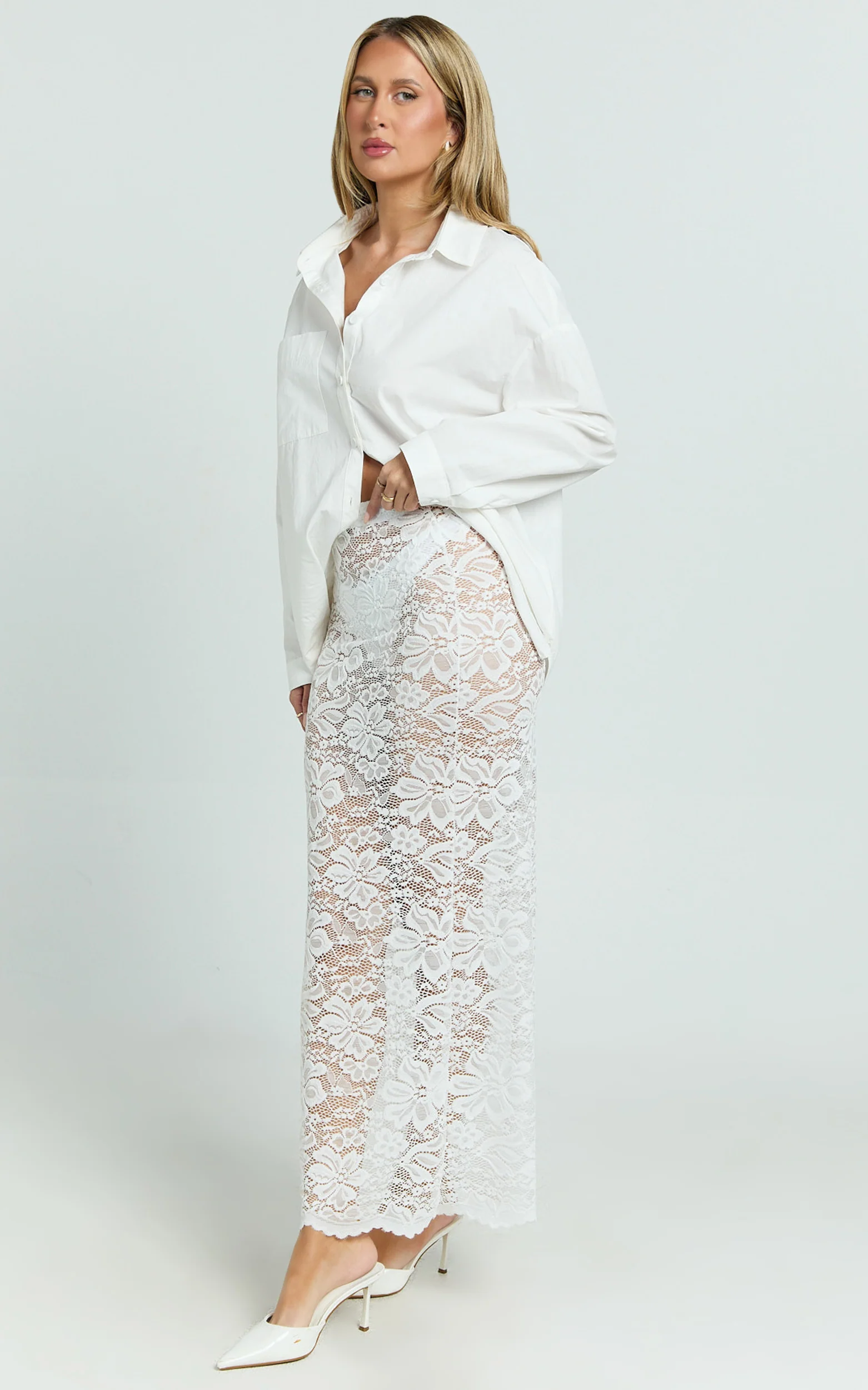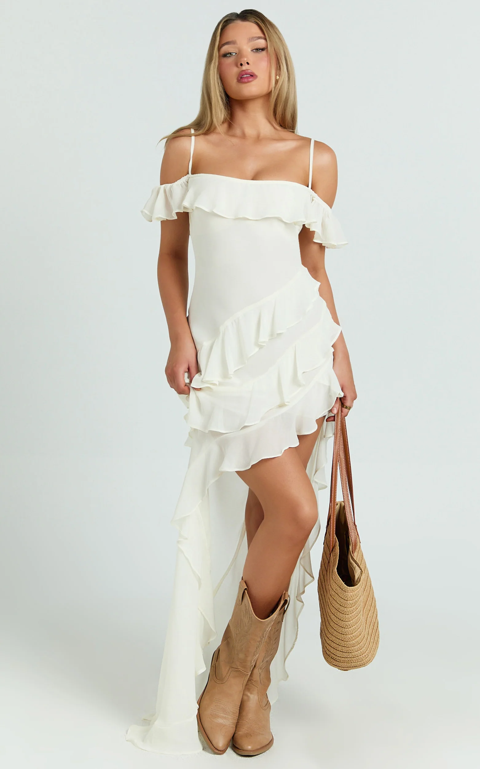 Brigitte Maxi Dress - Halter Off Shoulder Georgette Ruffle Tiered Dress in Cream
