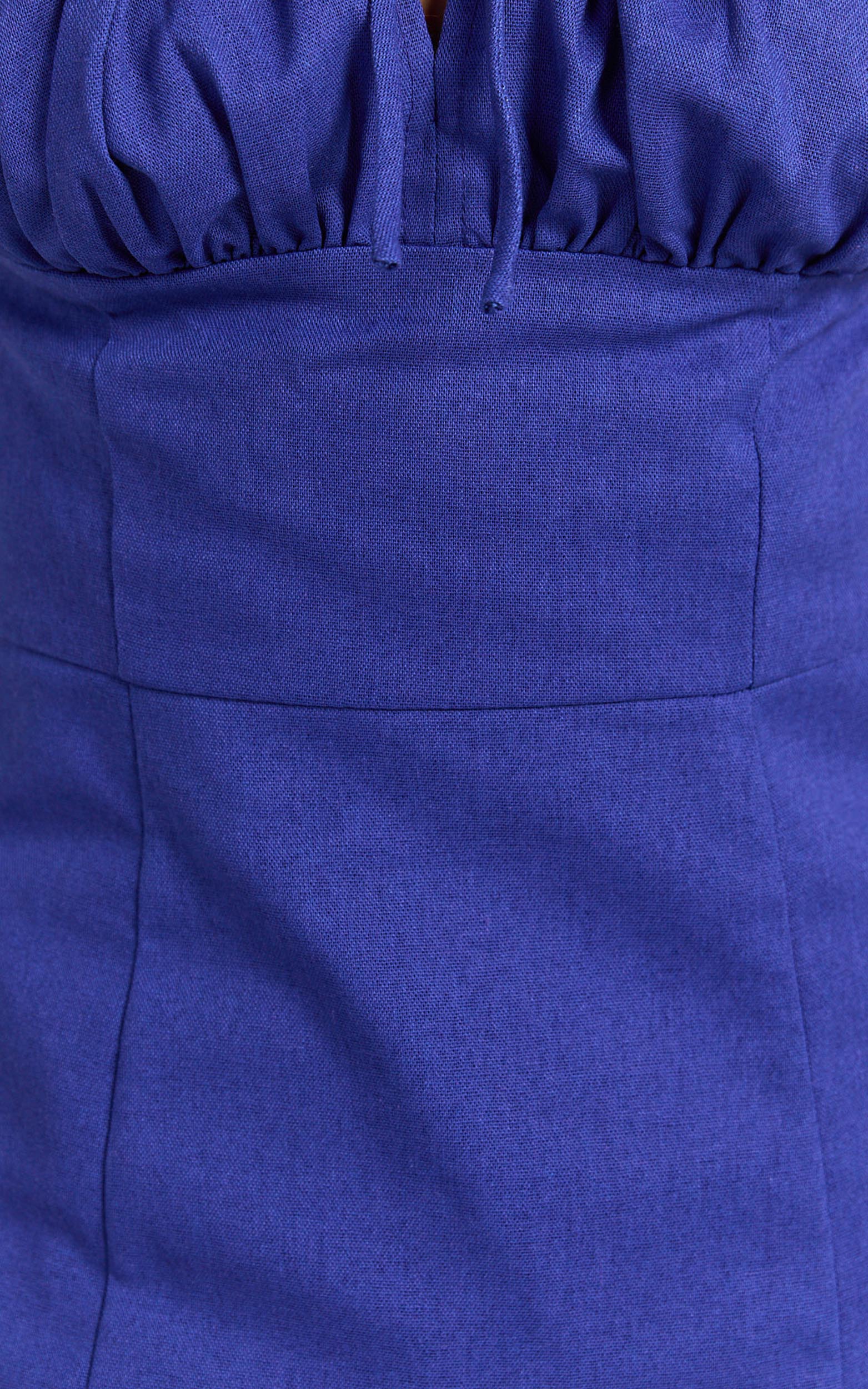 Robin Midi Linen Blend Dress - Puff Sleeve High Split Dress in Navy