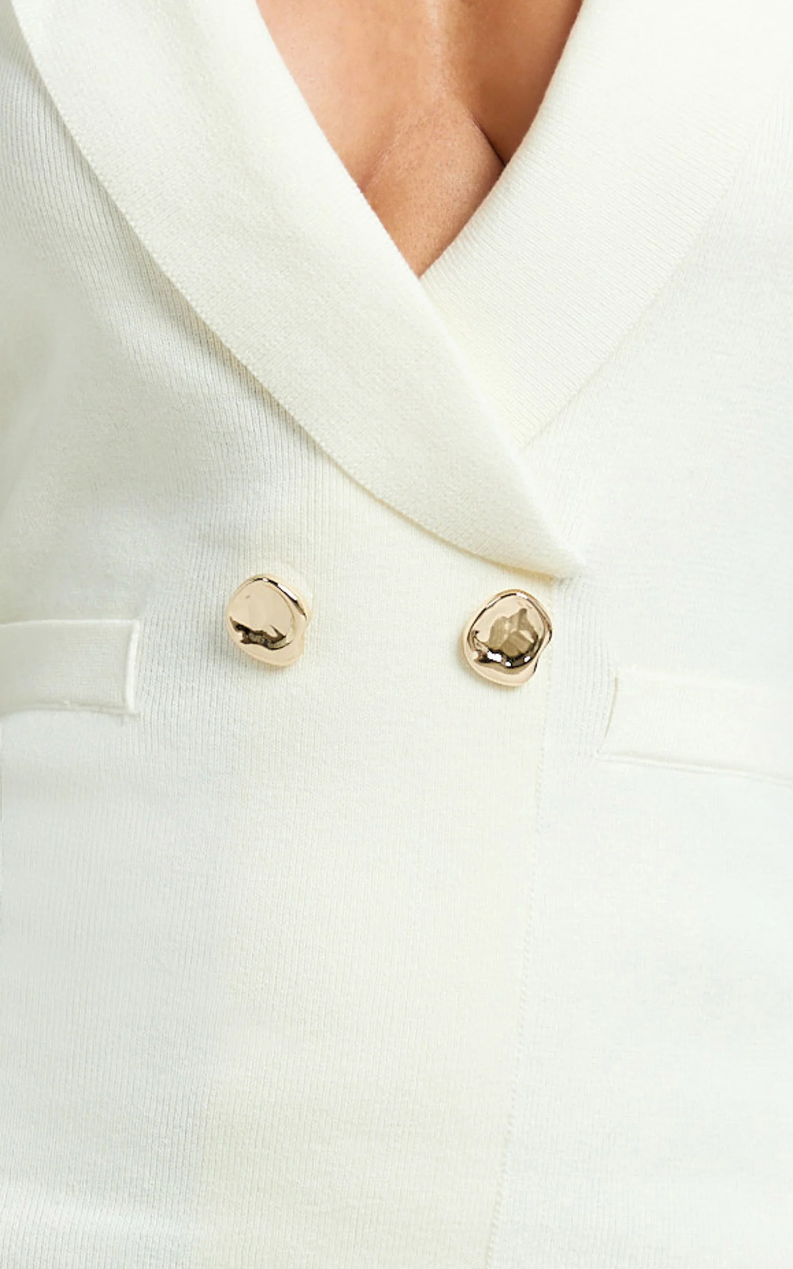 Melanie Mini Dress - Collared Halter Double Breasted Fitted Dress in Off White