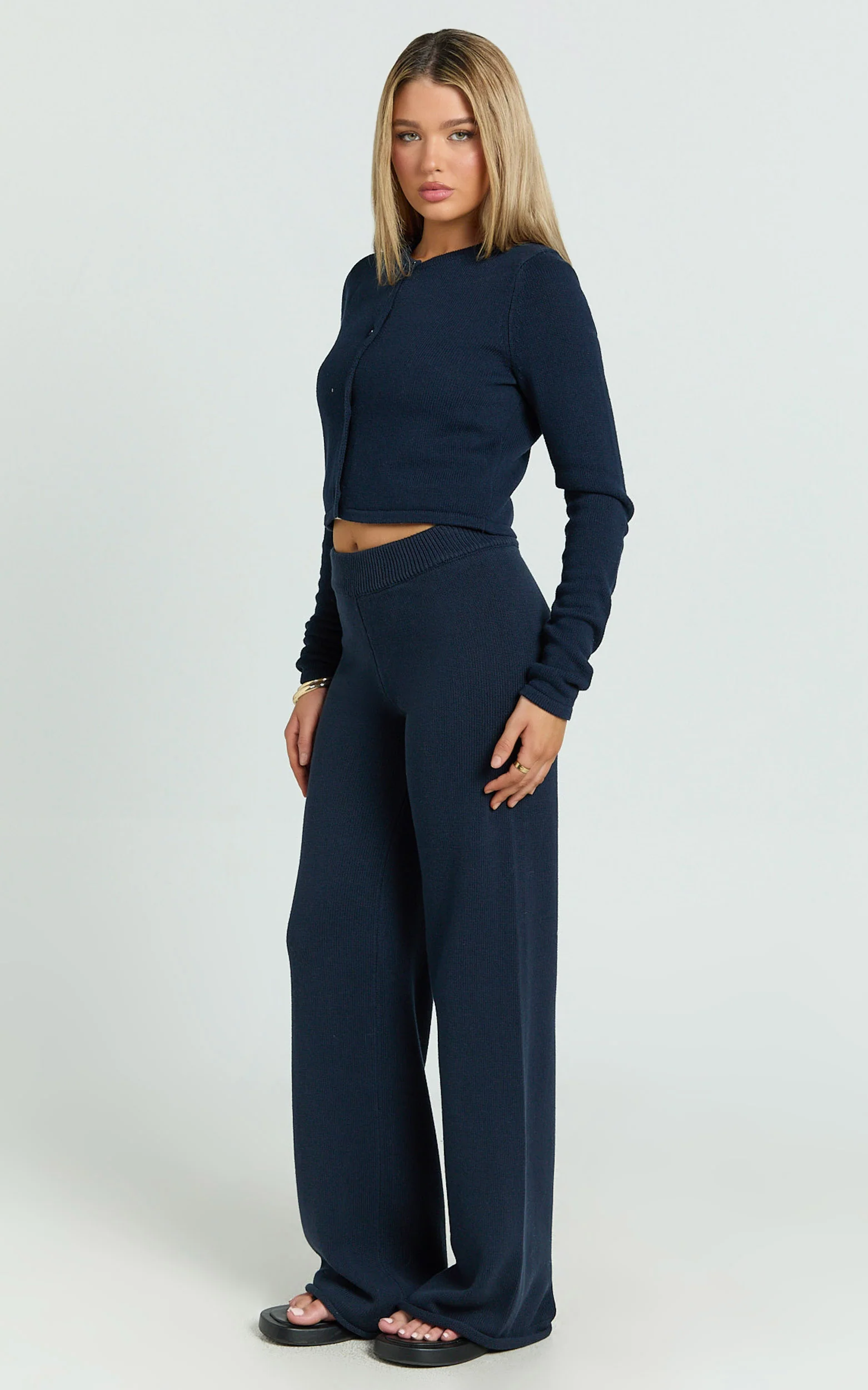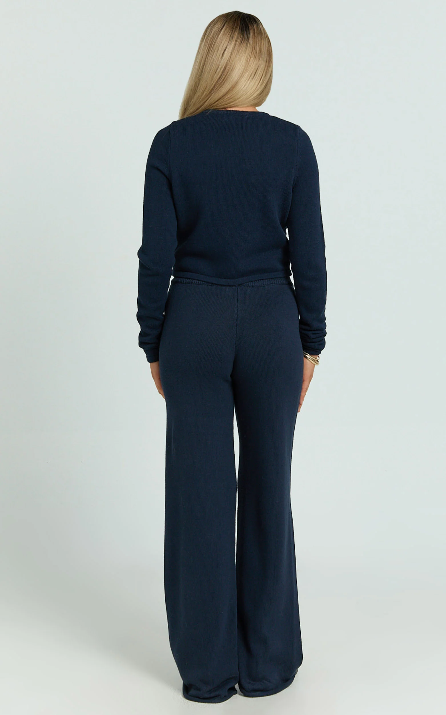 Ottie Pants - Mid Rise Straight Leg Knit Pants in Navy
