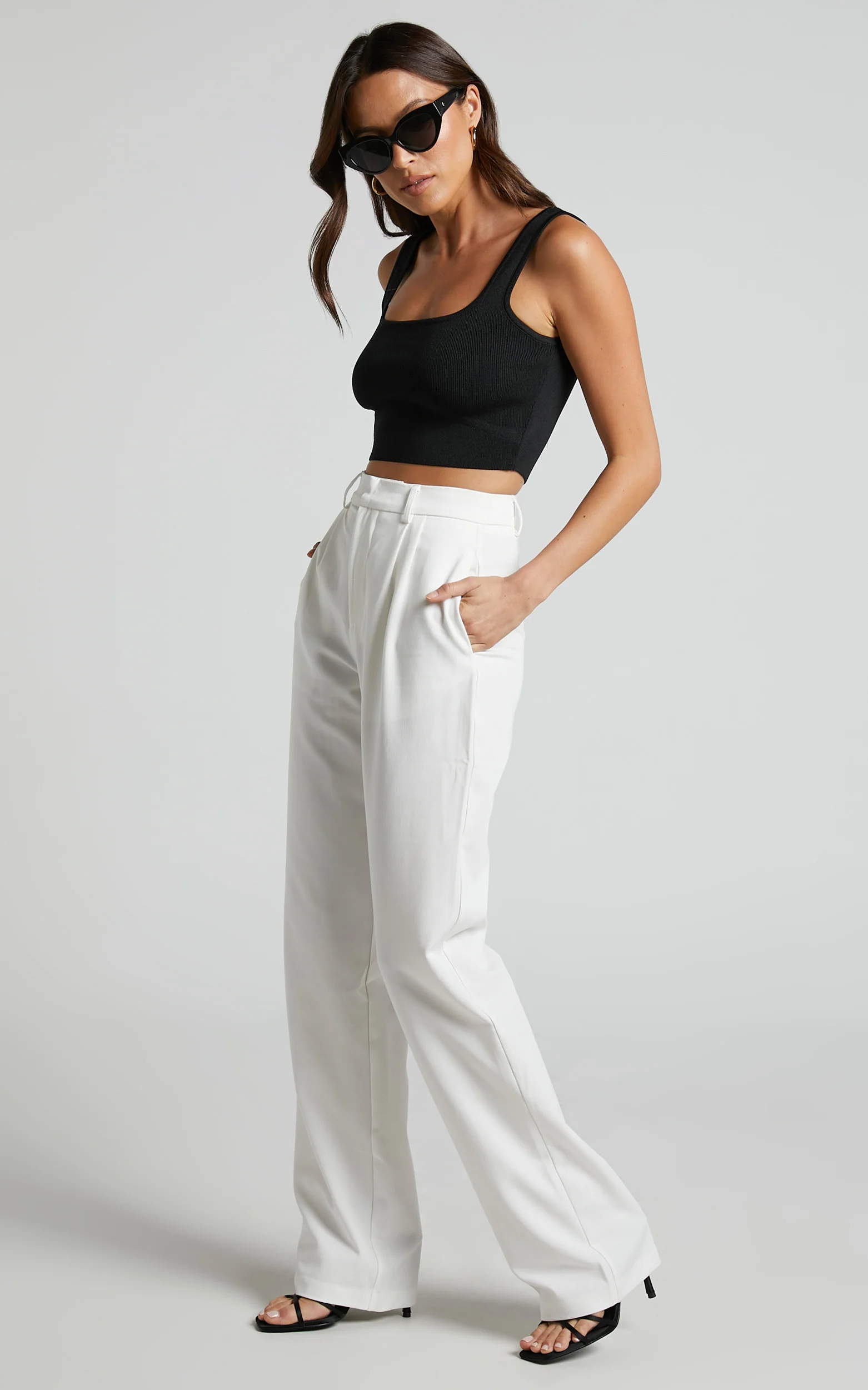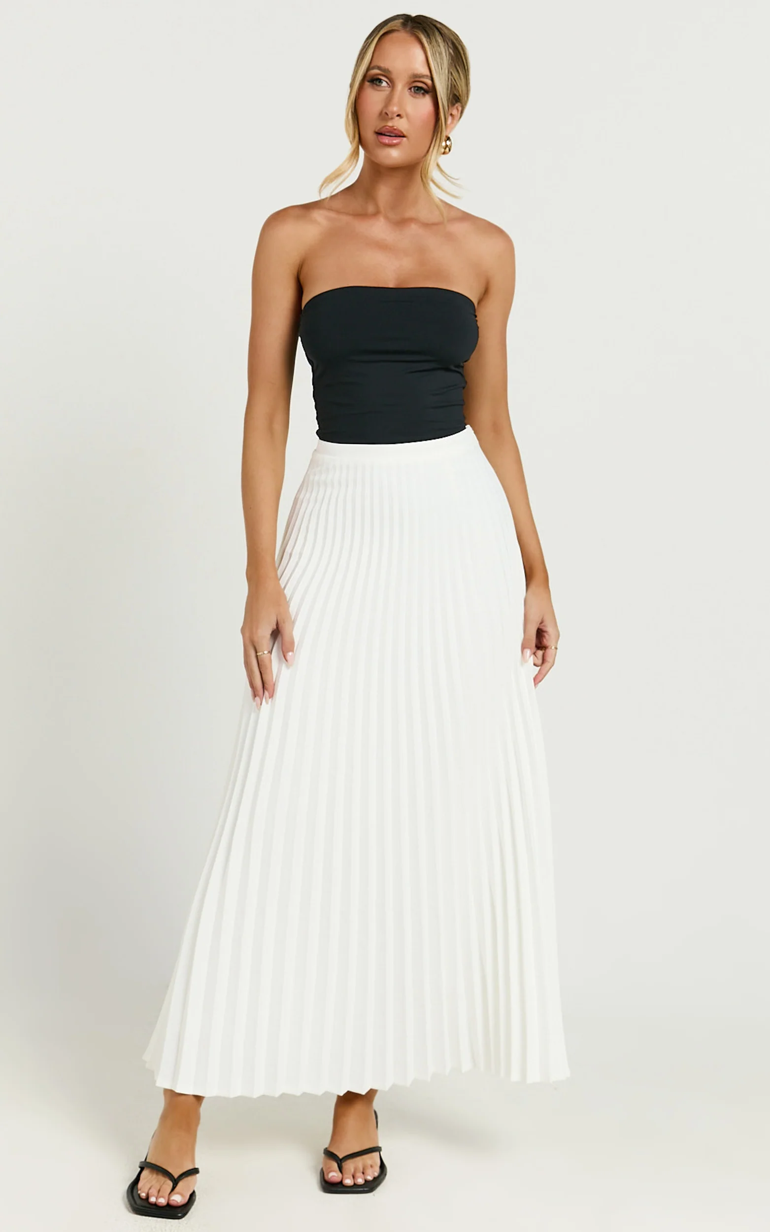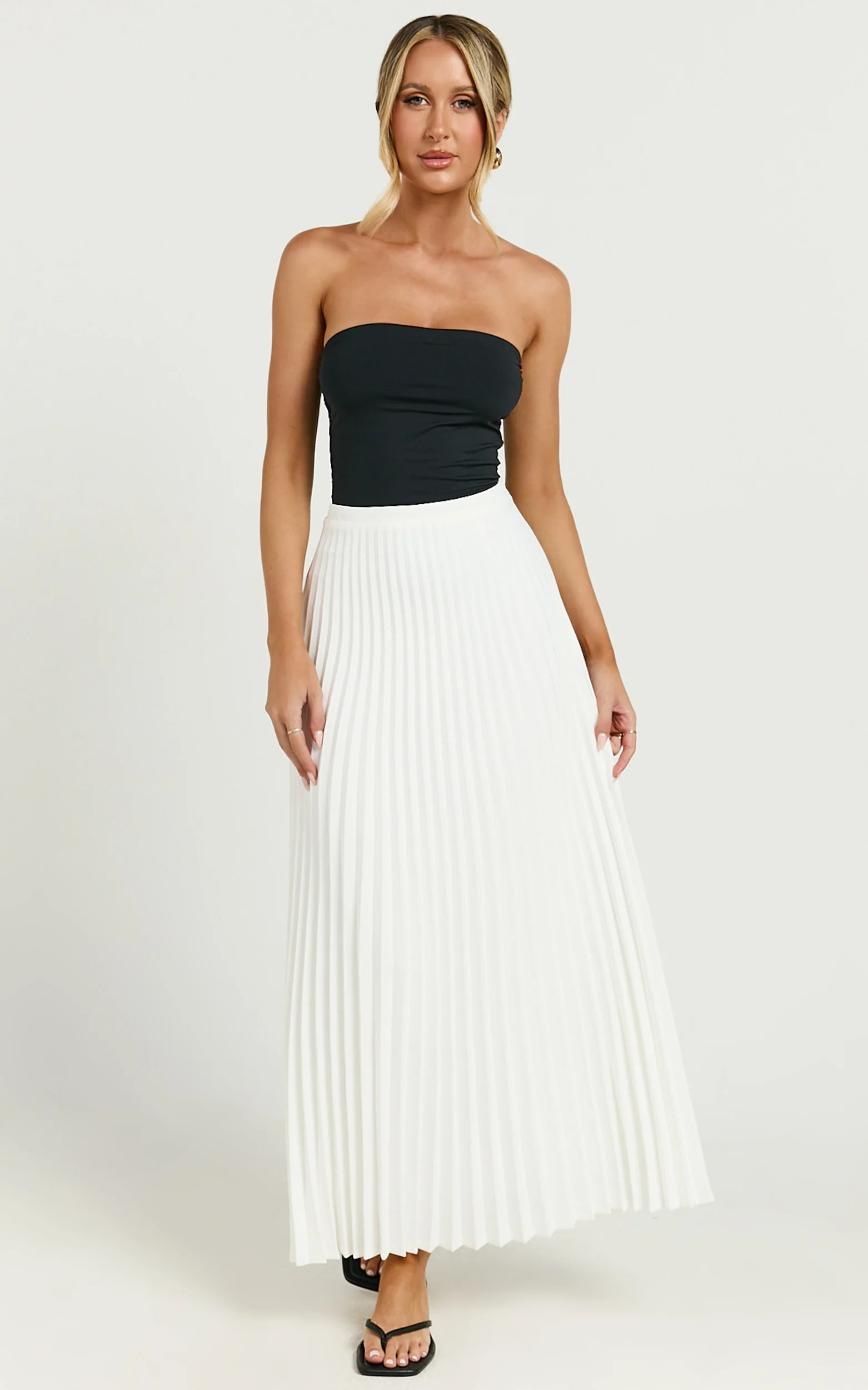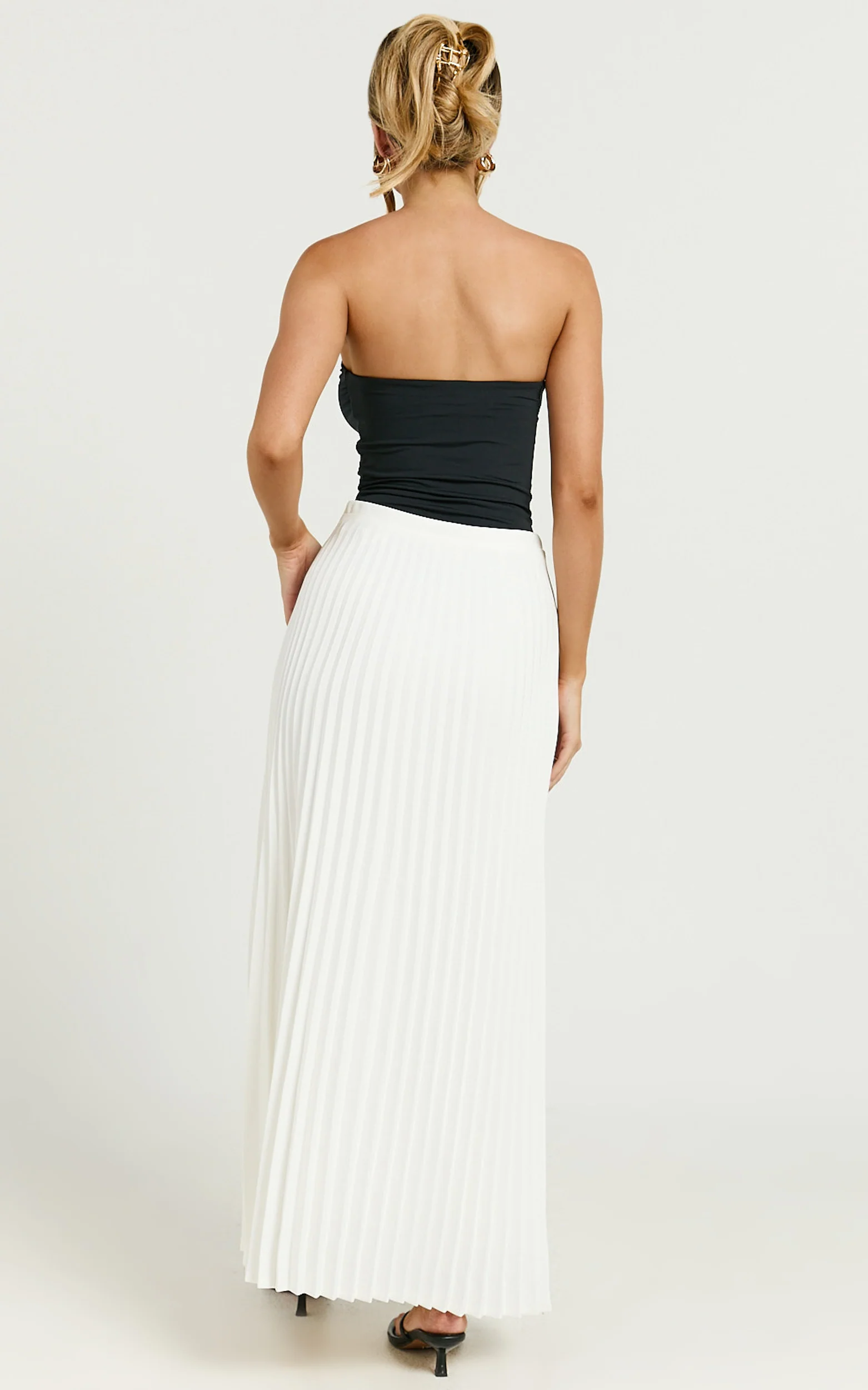 Harlee Midi Skirt - Pleated High Waist A Line Skirt in White