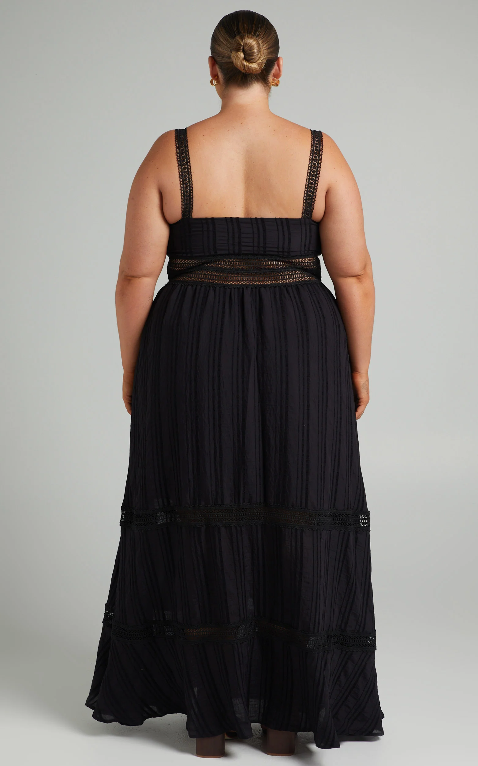 Angelique Maxi Dress - Lace Trim Dress in Black