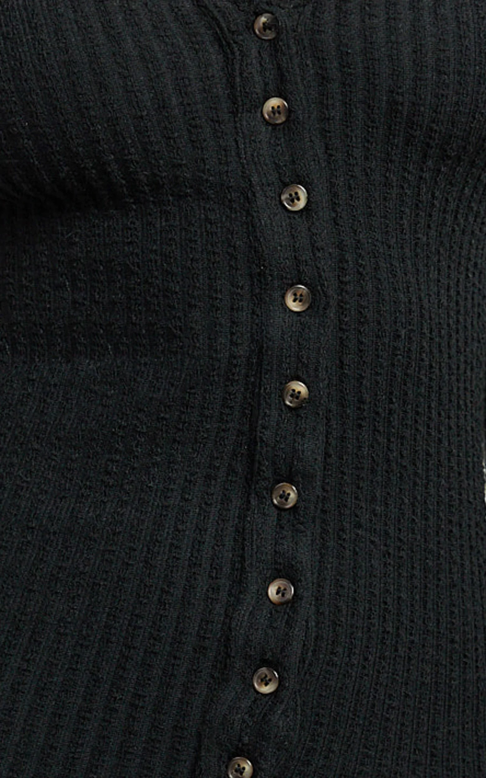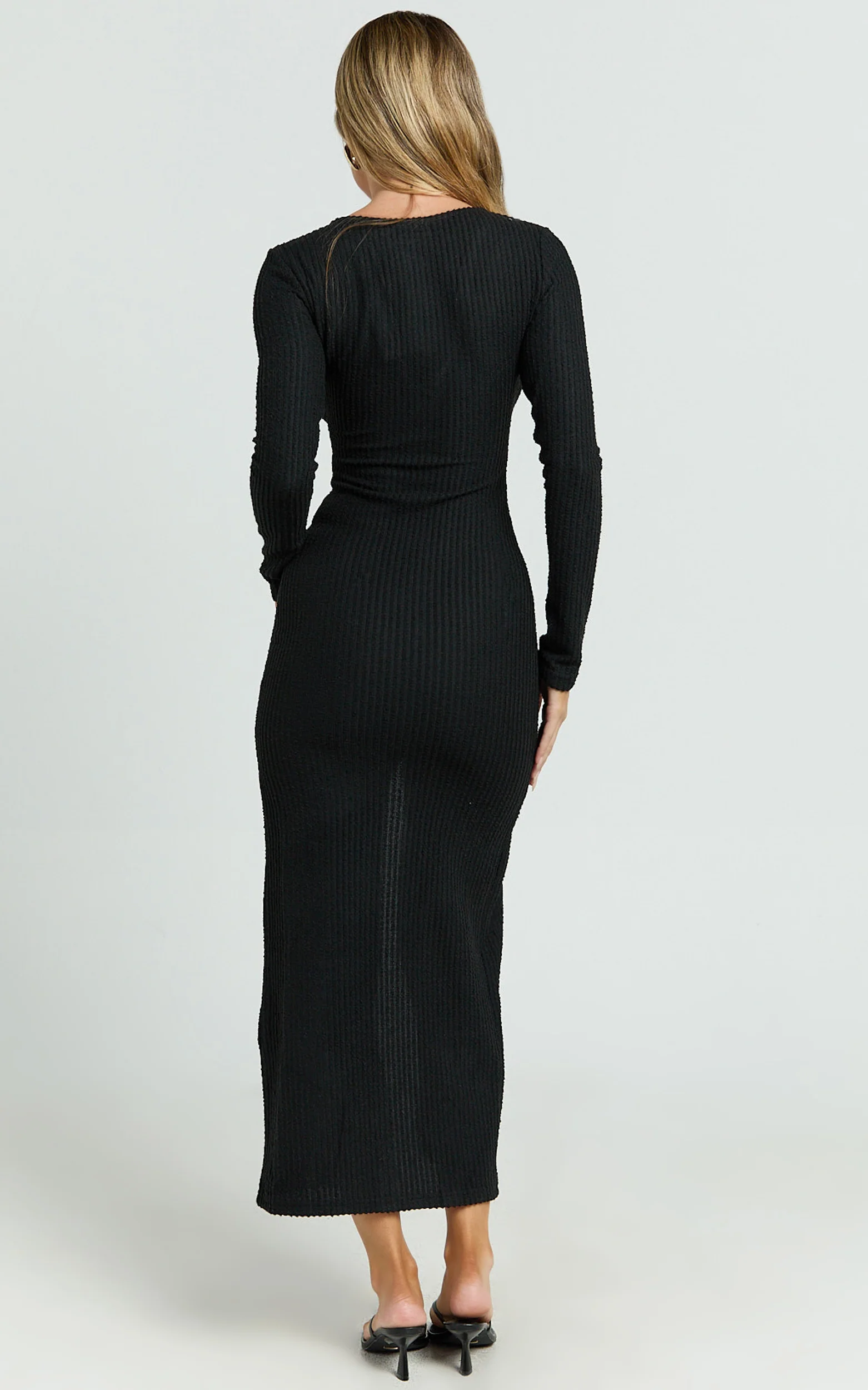 Zayla Midi Dress - Long Sleeve Button Front Bodycon Dress in Black