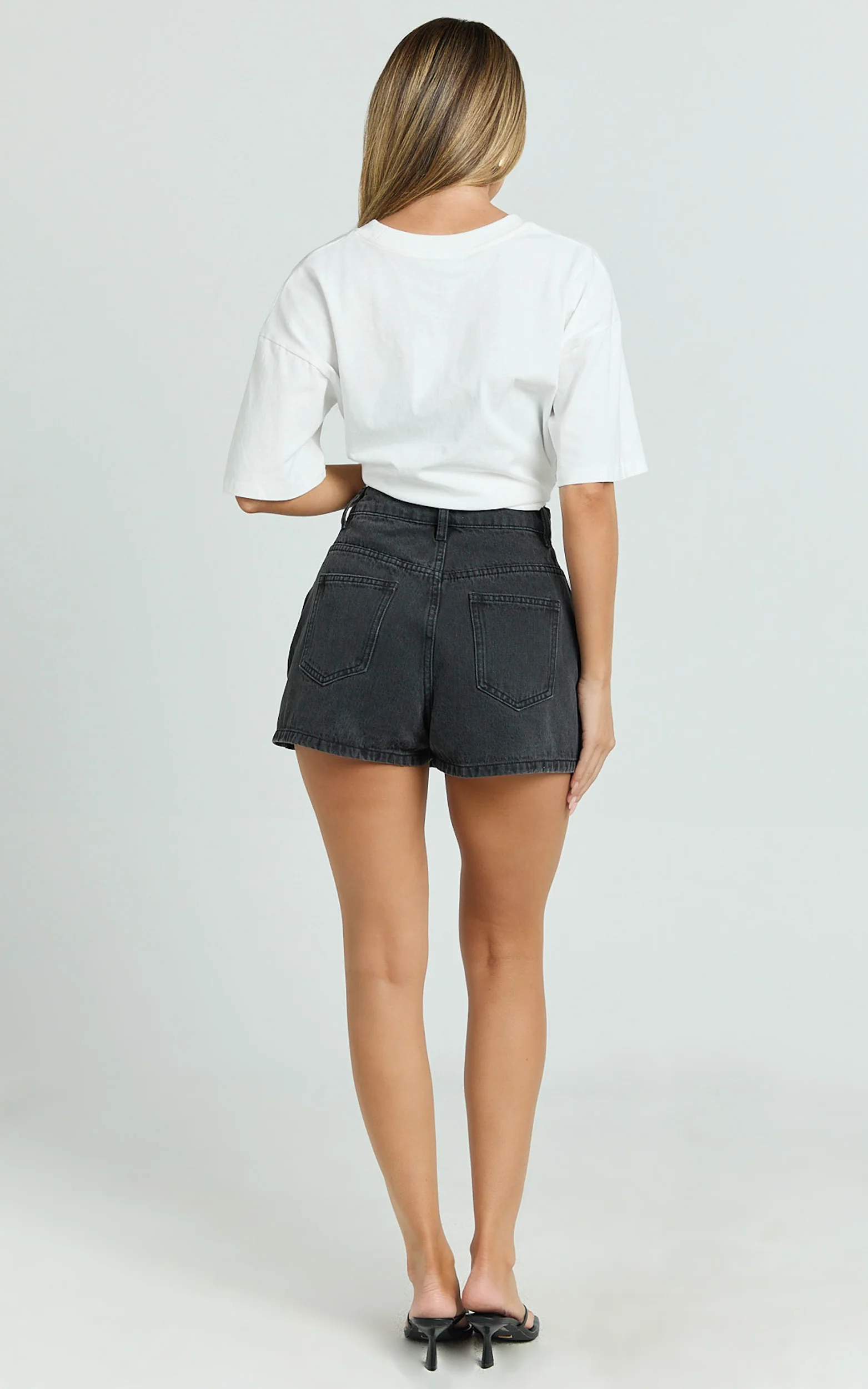 Harriet Skort - Mid Waisted Recycled Denim Skort in Black
