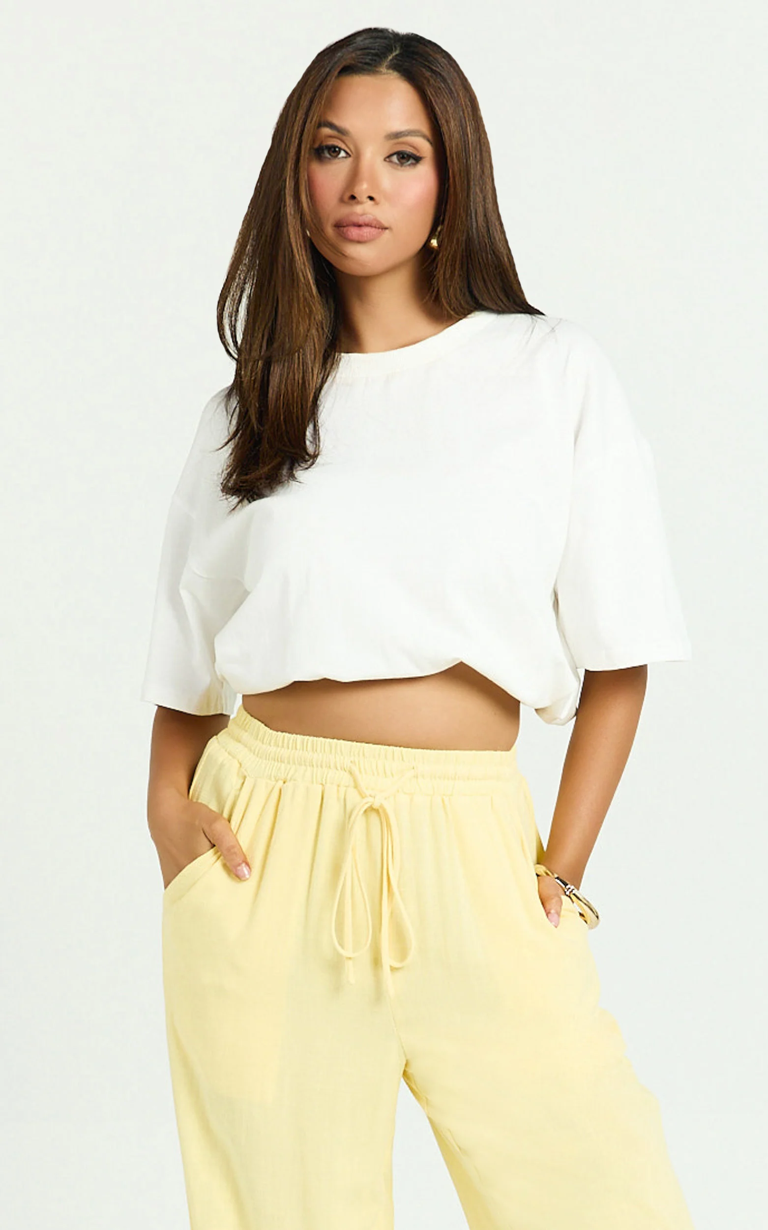 Kala Pants - Mid Waisted Relaxed Elastic Waist Pants in Lemon