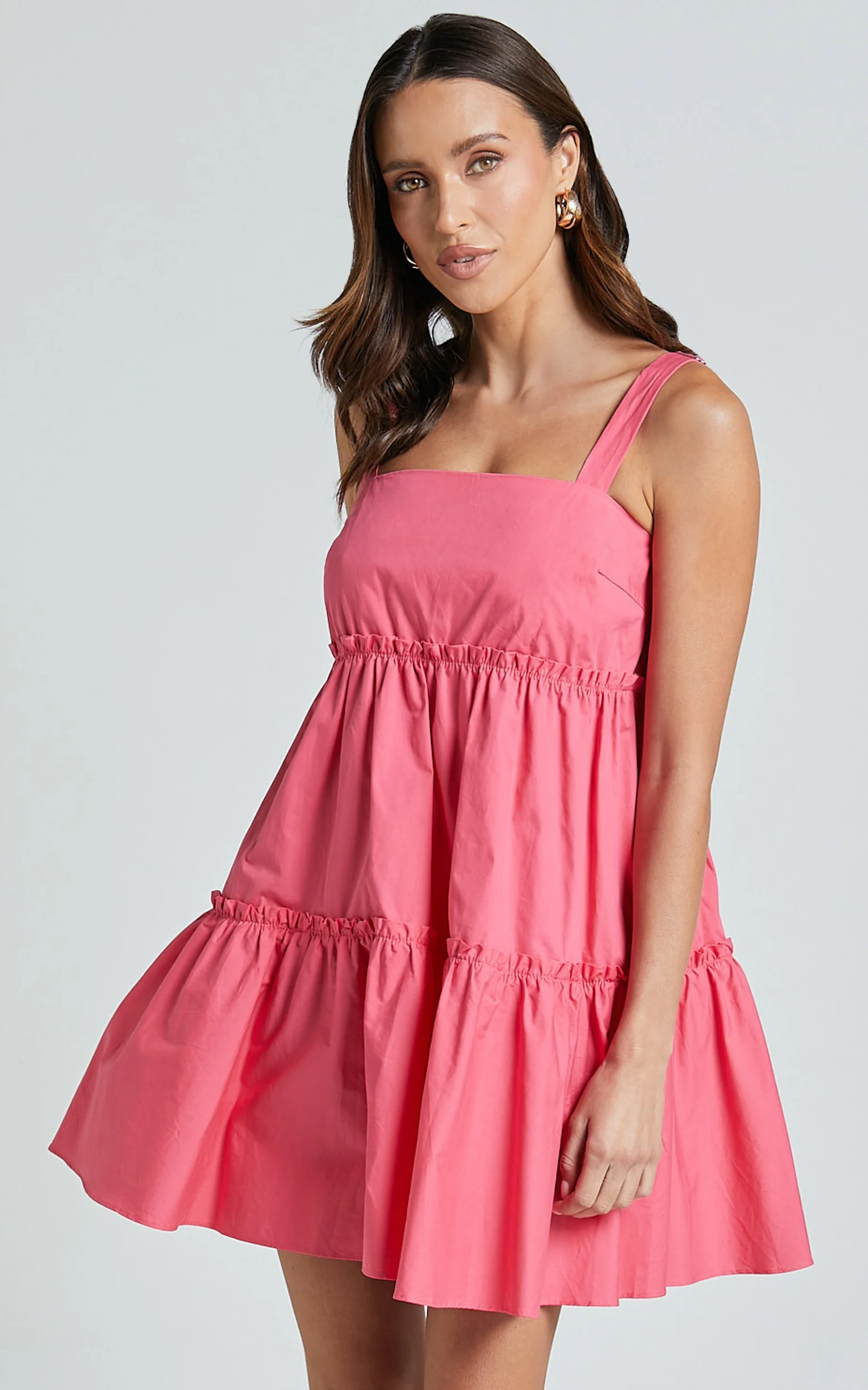 Eliana Mini Dress - Square Neck Tiered Smock Dress in Berry