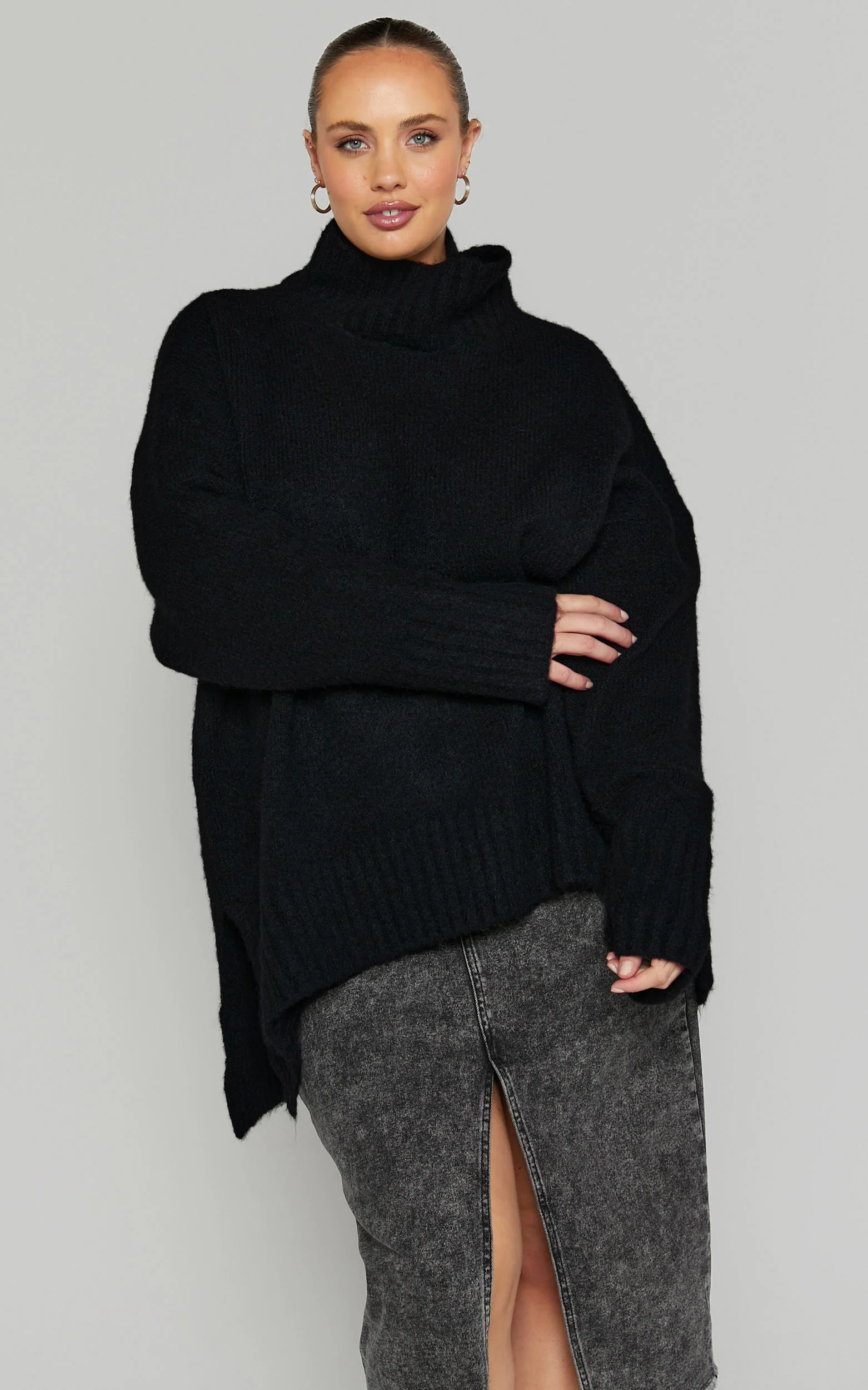 Luella Jumper - Oversized Turtle Neck Jumper in Black