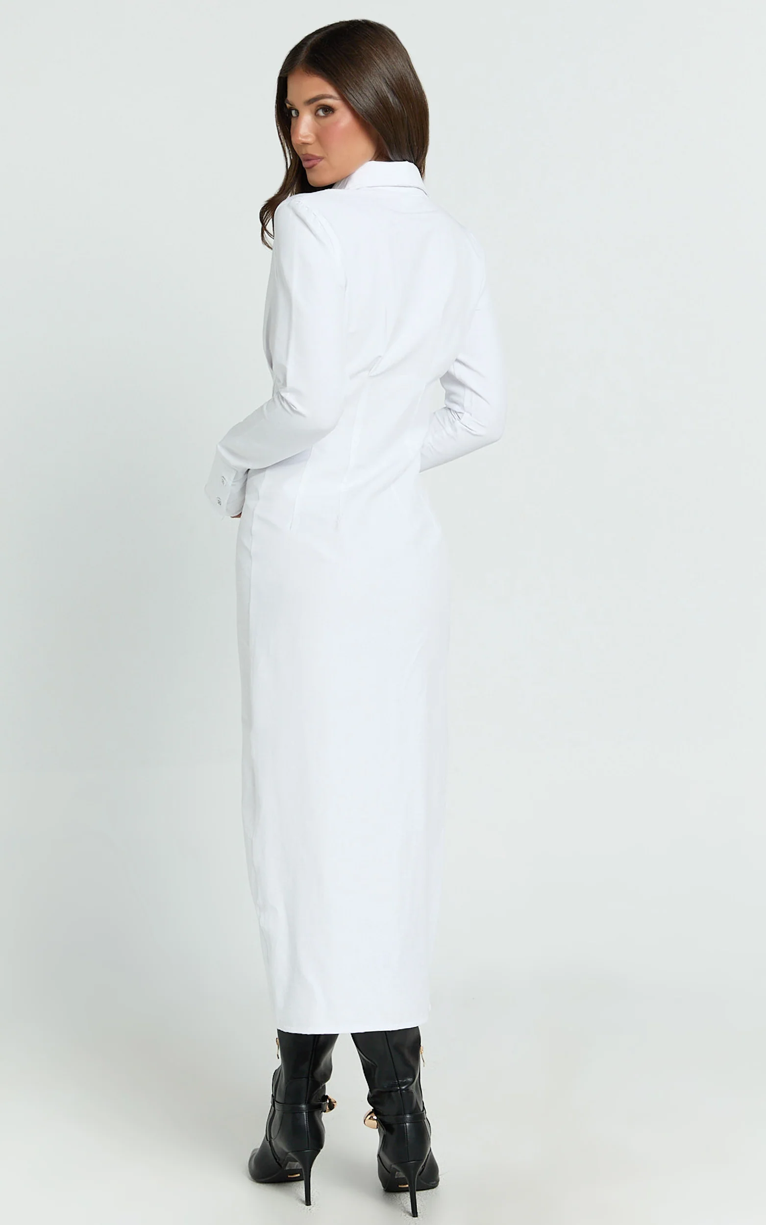 Genevieve Midi Dress - Slim Shirt Dress in White