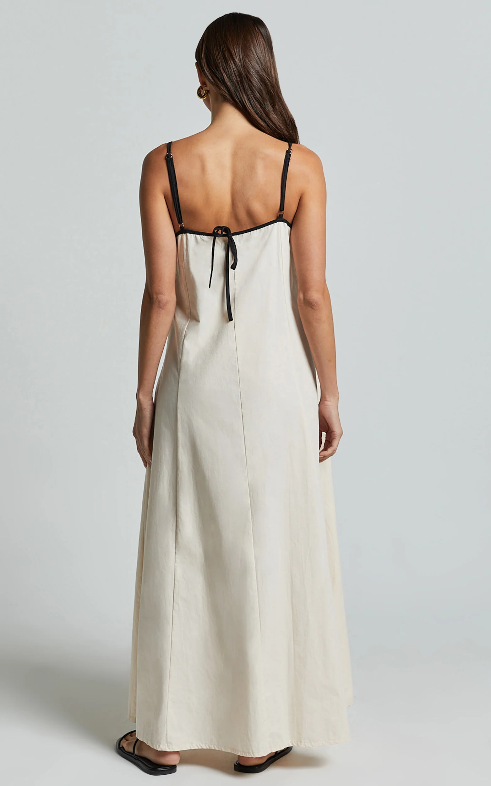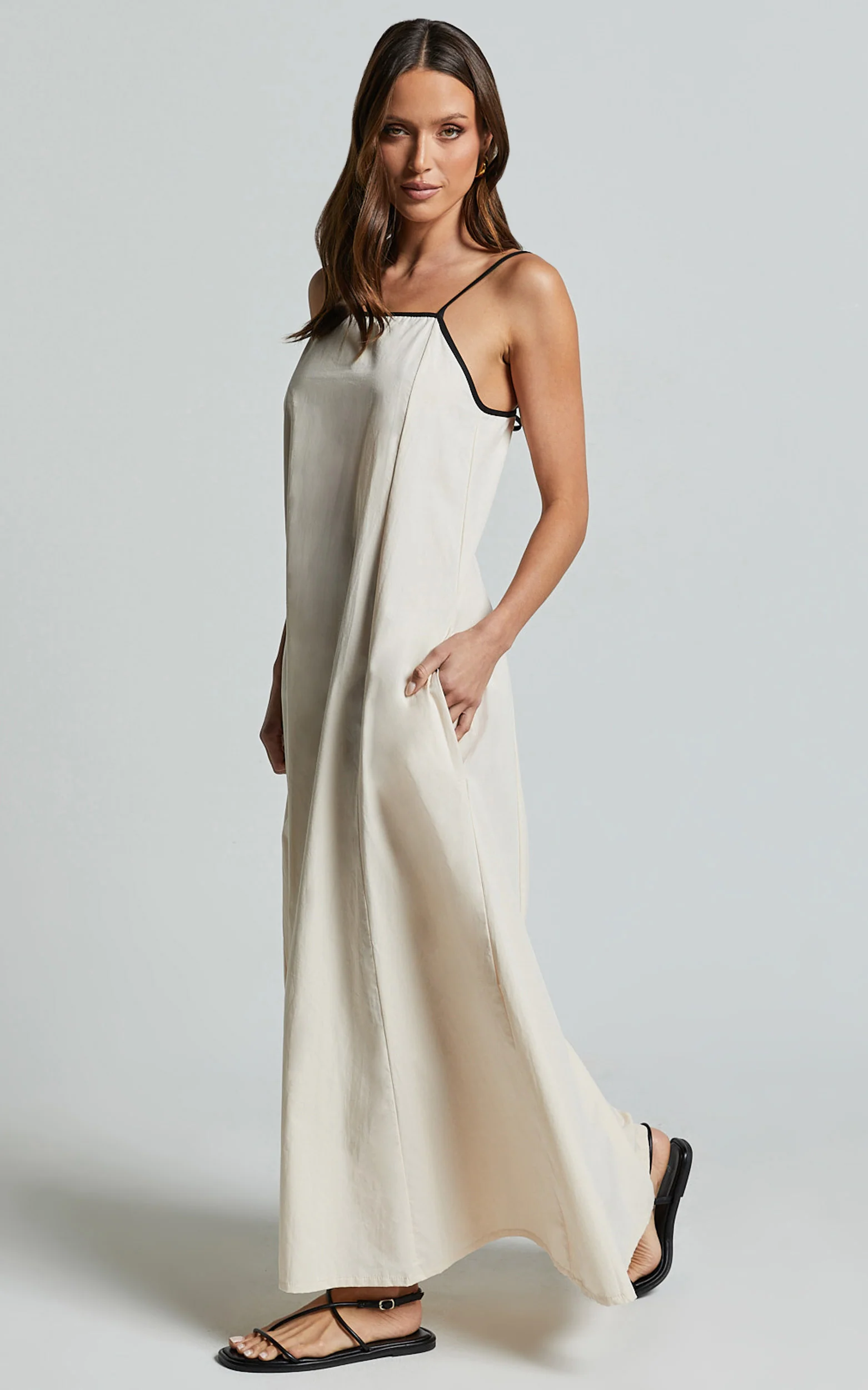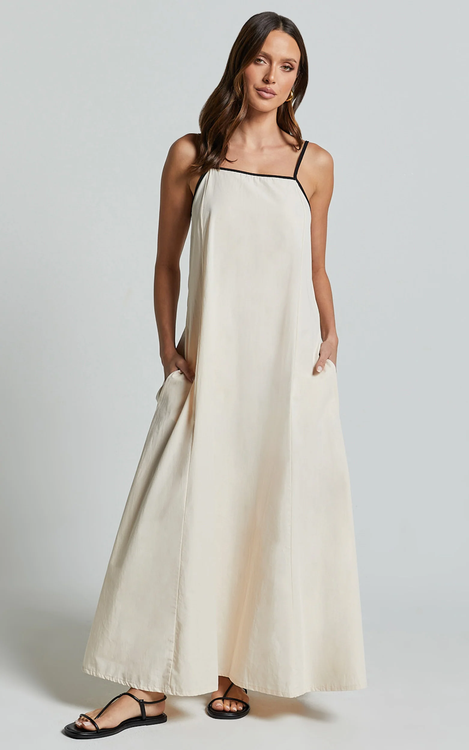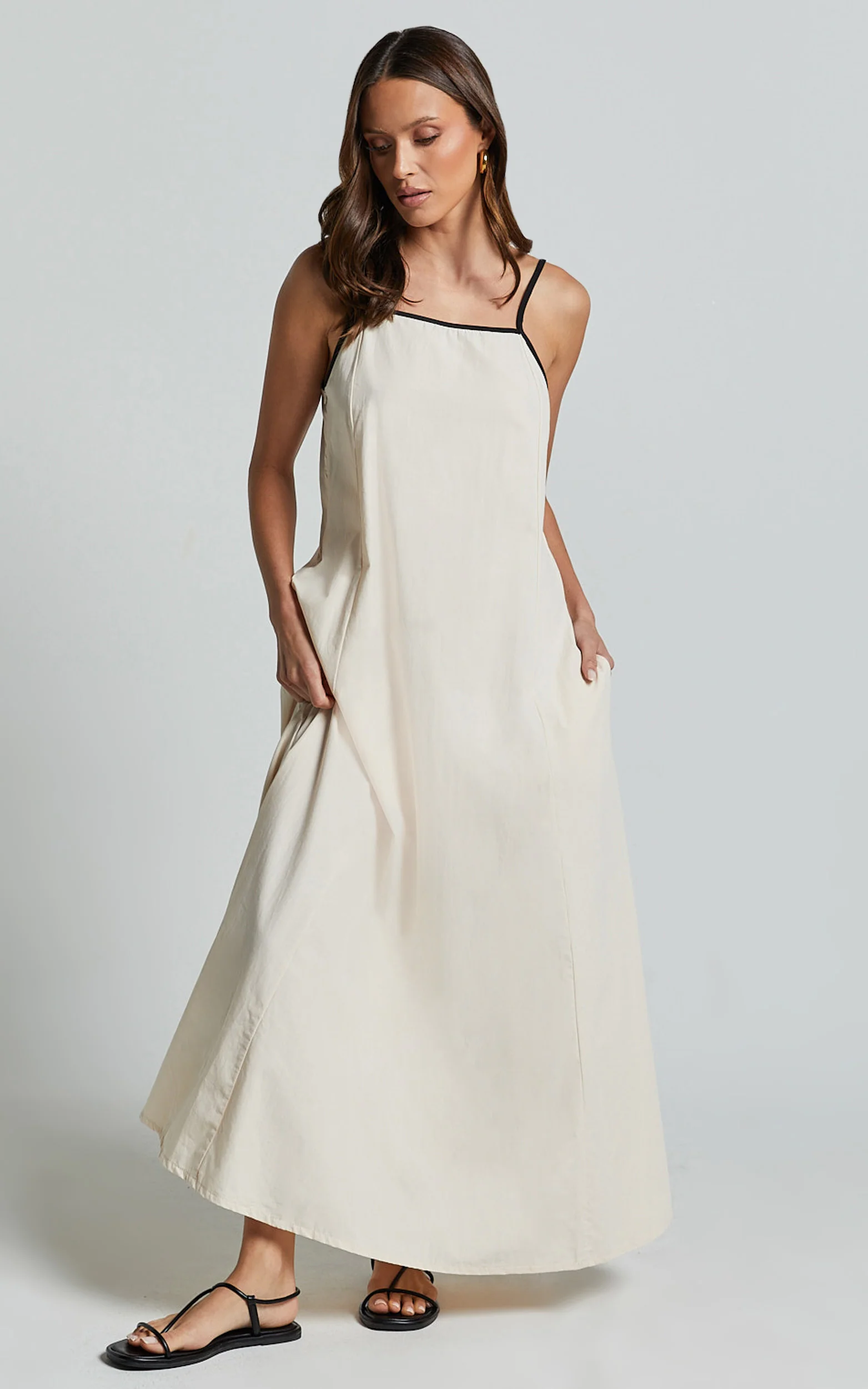 Angelina Midi Dress - Straight Neck Sleeveless A Line Dress in Natural