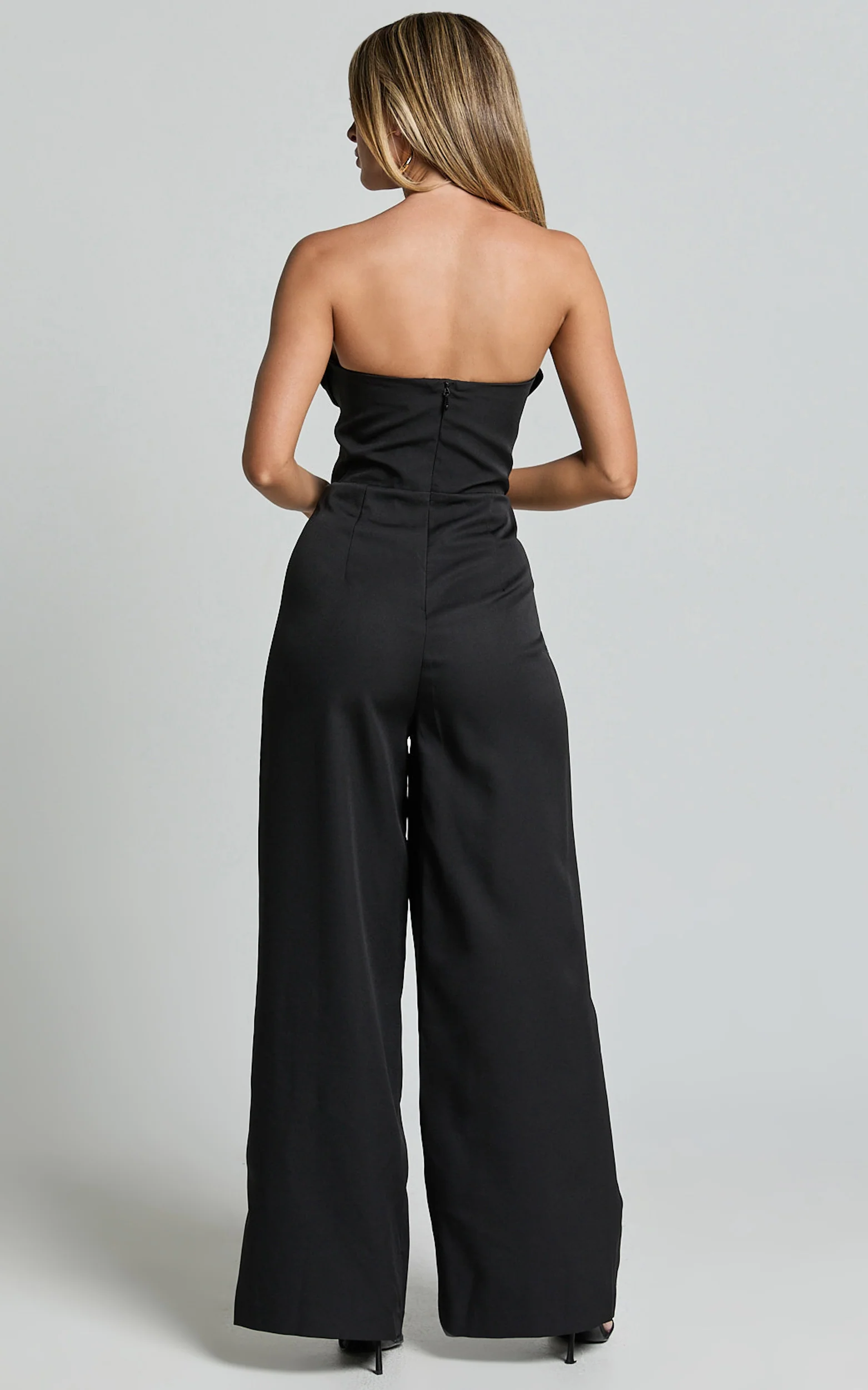 Stacey Jumpsuit - Strapless Cowl Wide Leg Jumpsuit in Black