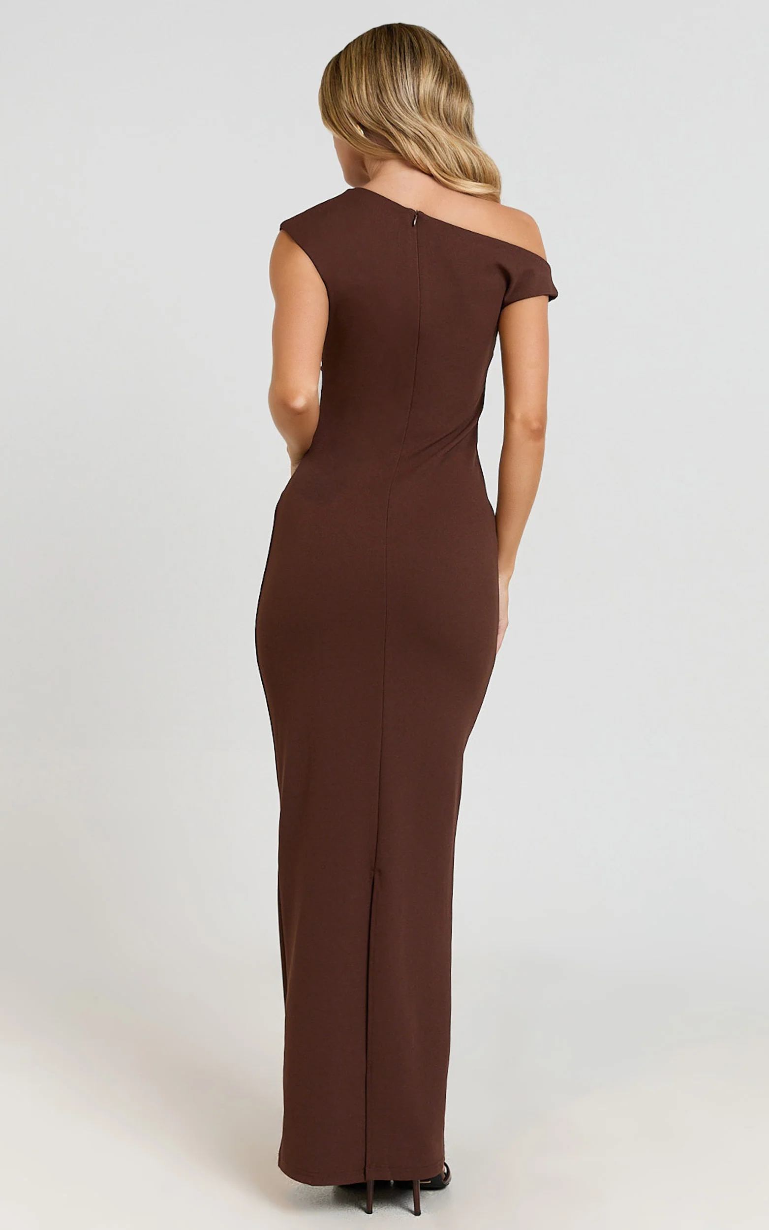 Genie Maxi Dress - Off The Shoulder Dress in Chocolate