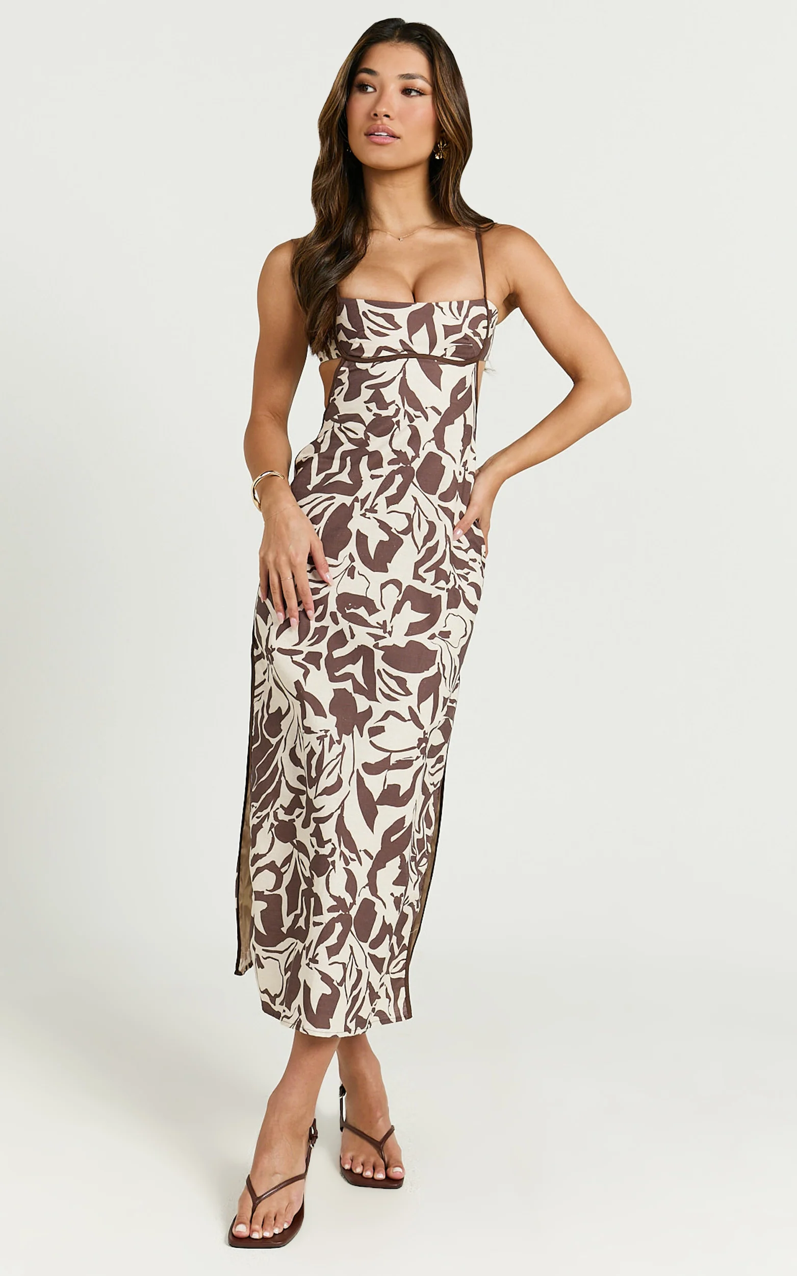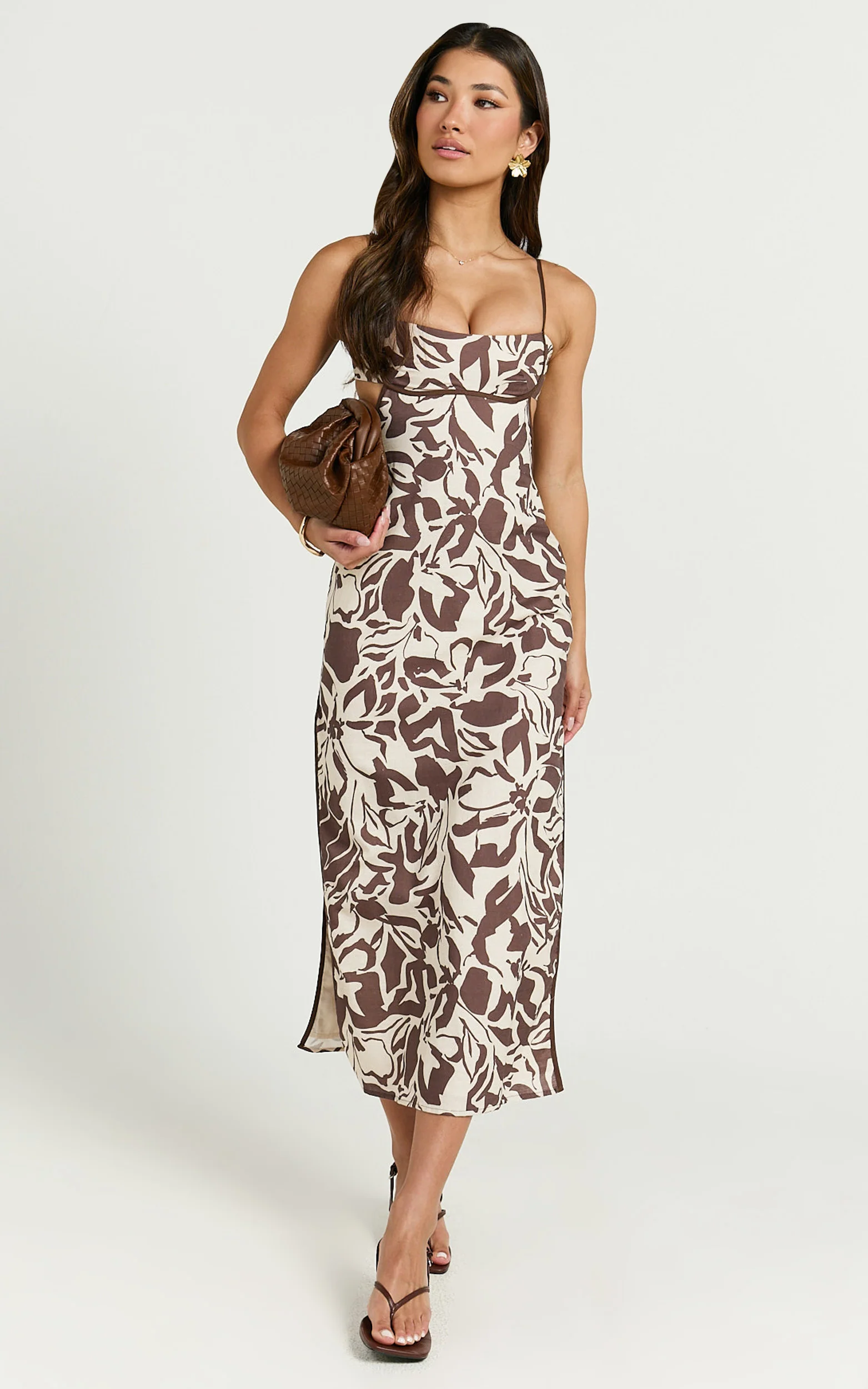 Henny Midi Dress - Long Sleeve Split Dress in Dusk Floral