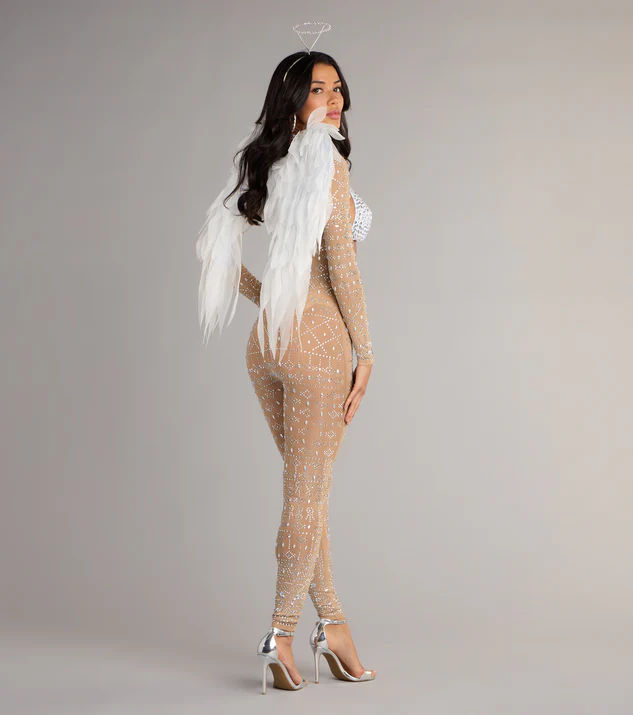 Iridescent Sparkle Rhinestone-Embellished Sheer Catsuit