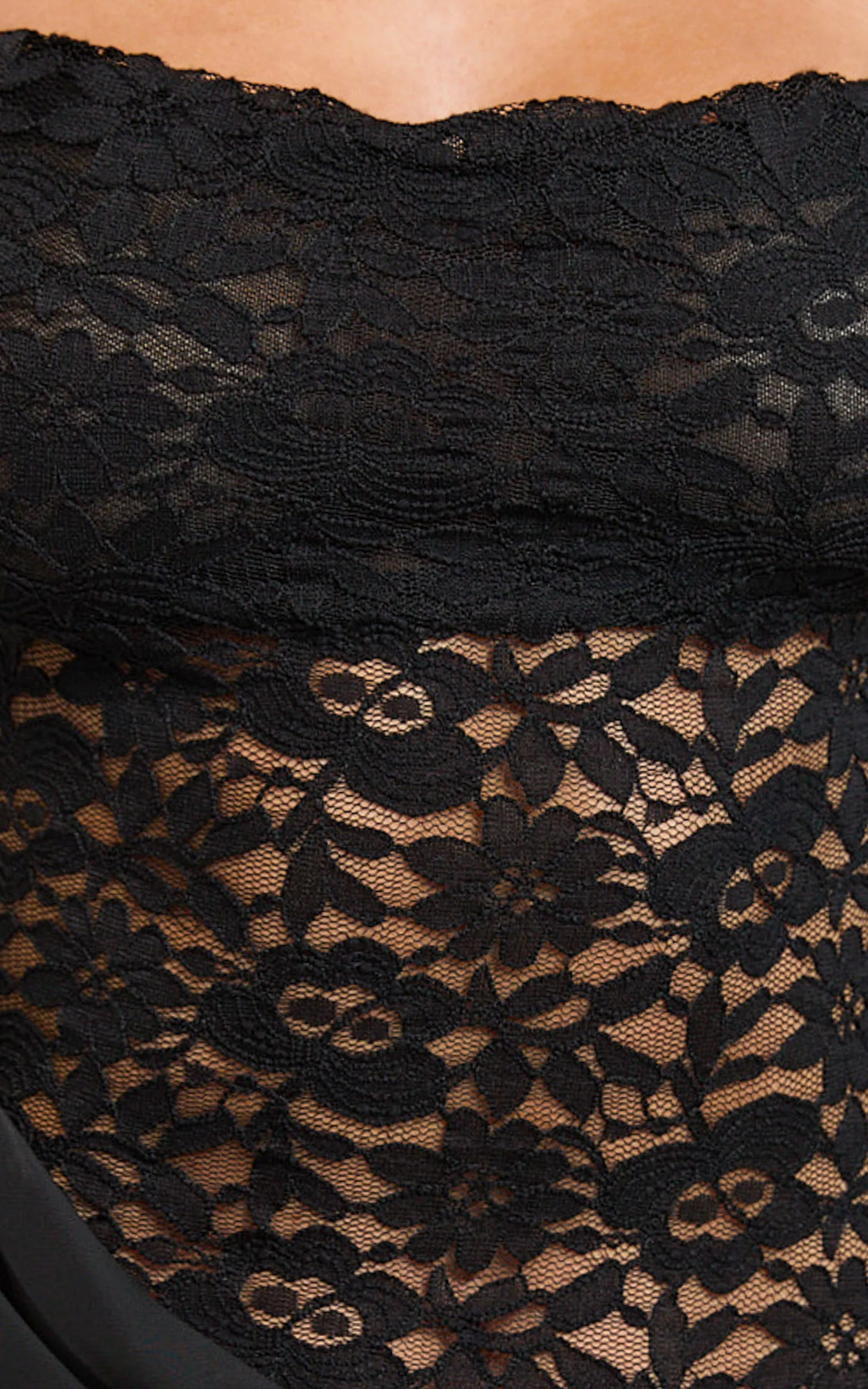 Frances Midi Dress - Cowl Neck Contrast Lace Slip Dress in Black