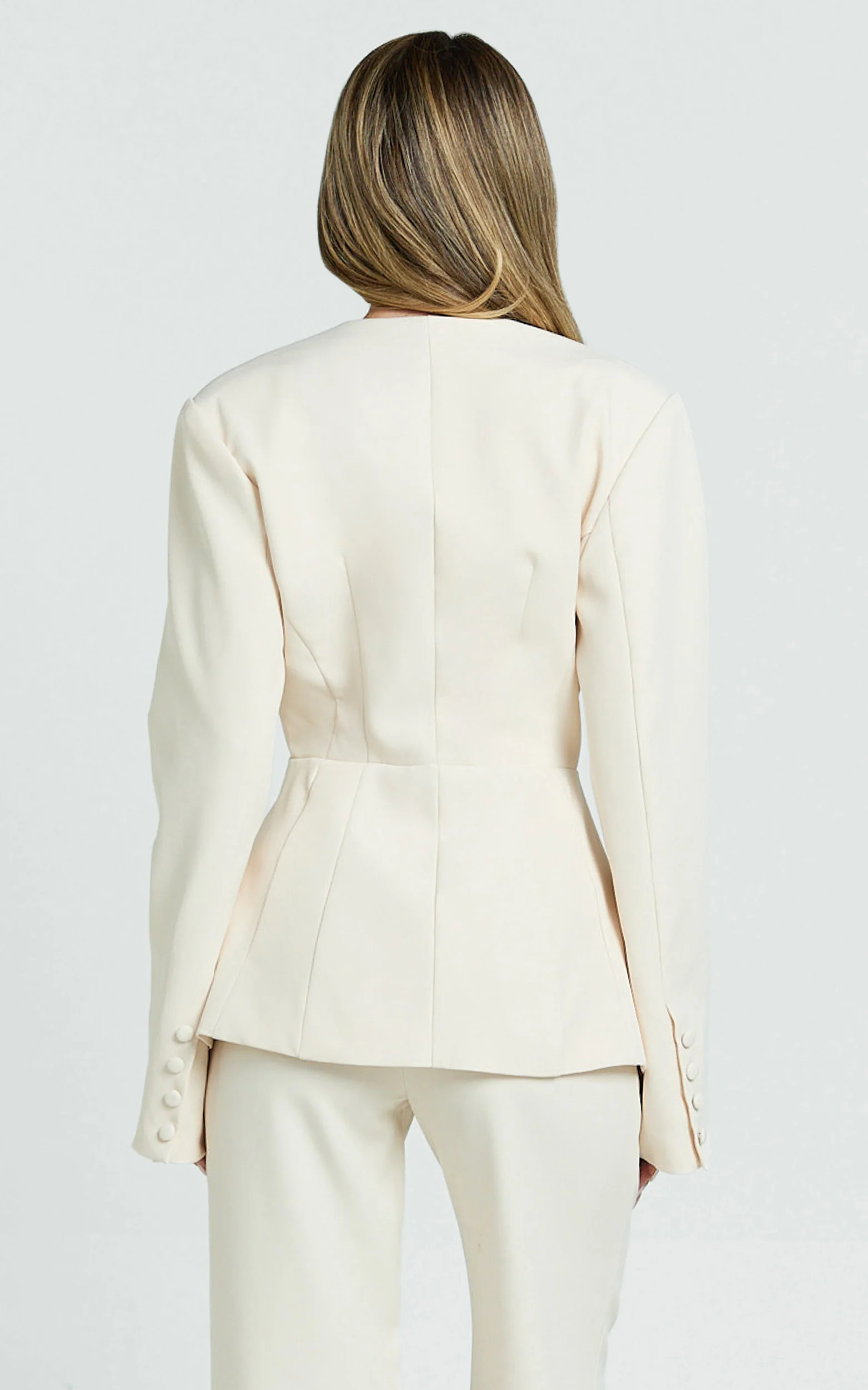 Melissa Blazer - V Neck Tulip Hem Blazer in Cream