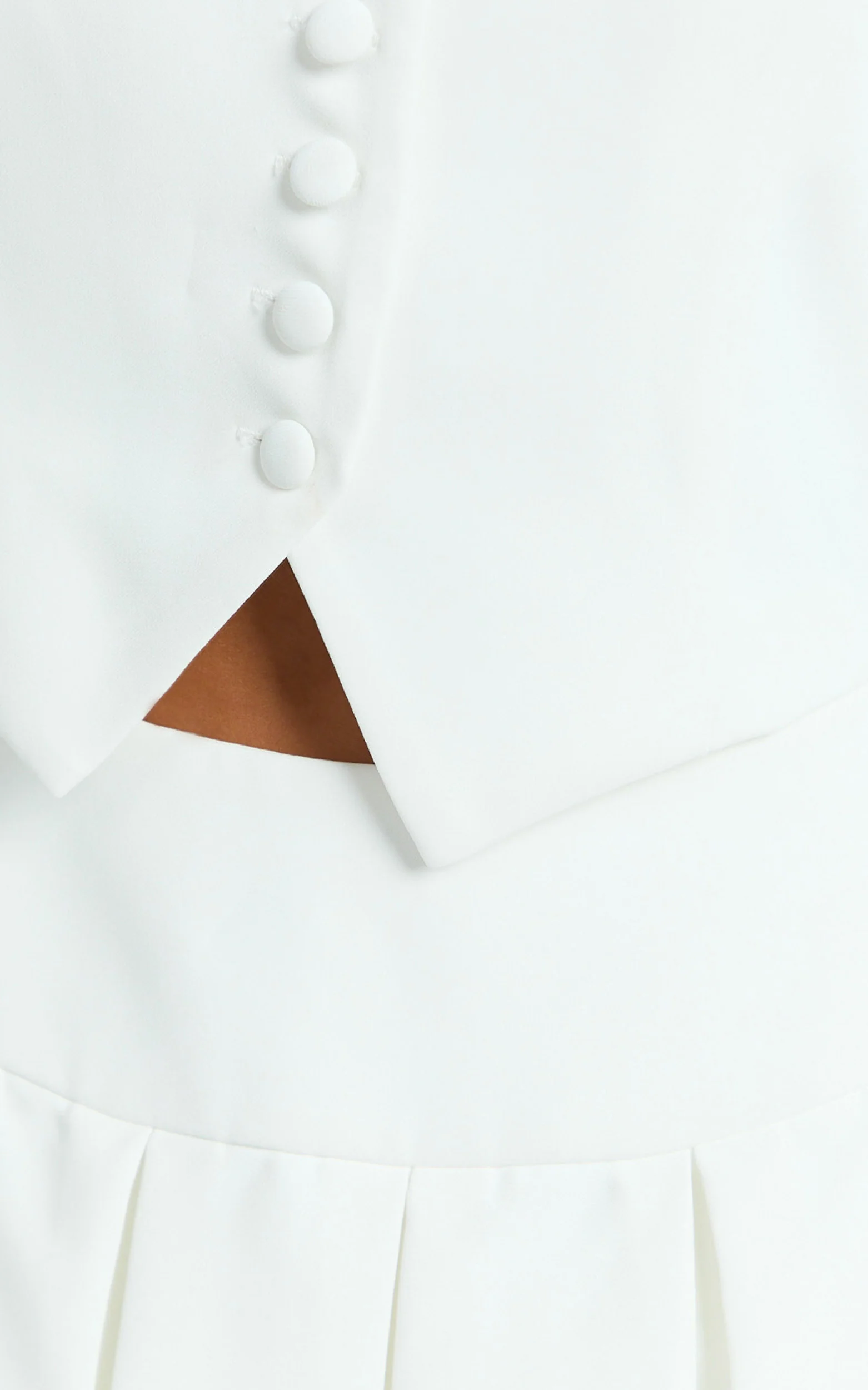 Kady Playsuit - Halter Button Down Vest Pleated Skirt Playsuit in White