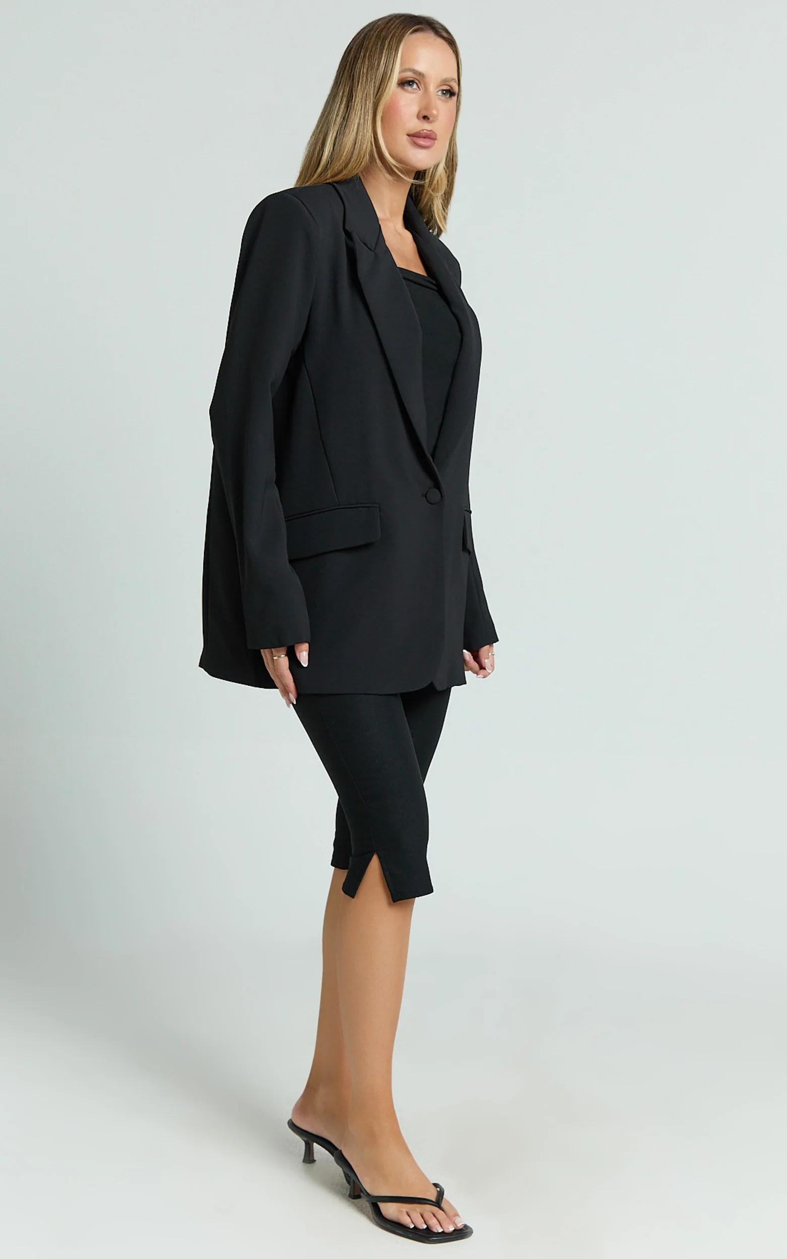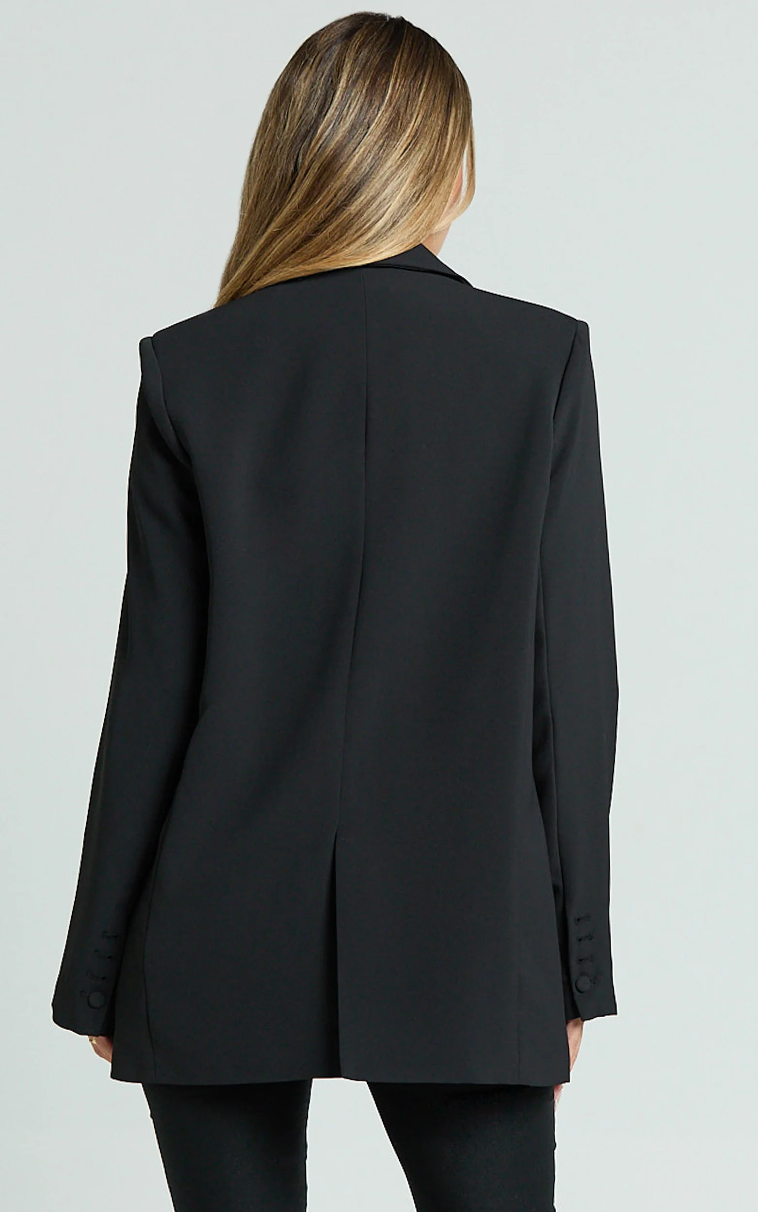 Michelle Blazer - Oversized Plunge Neck Button Up Blazer in Black