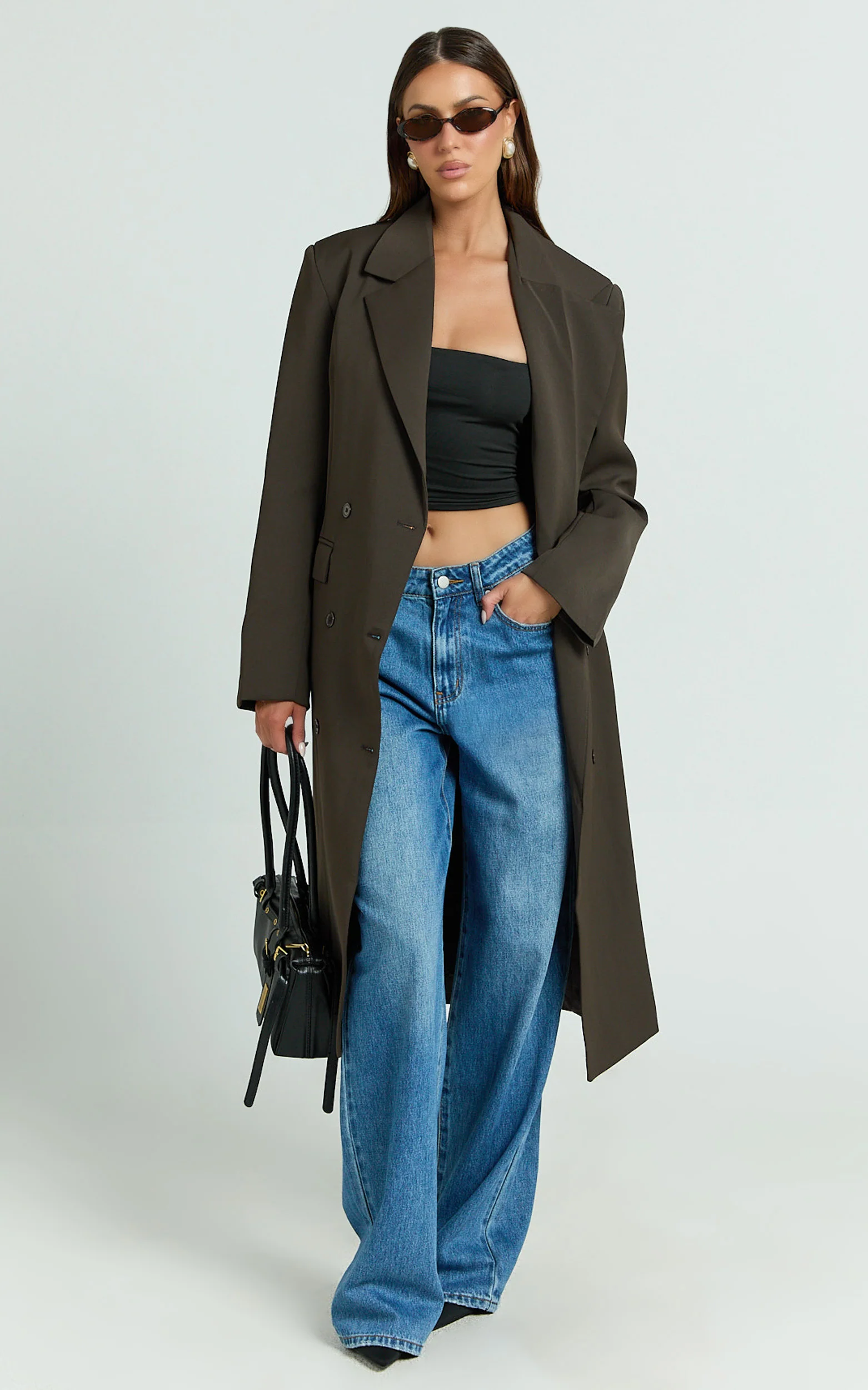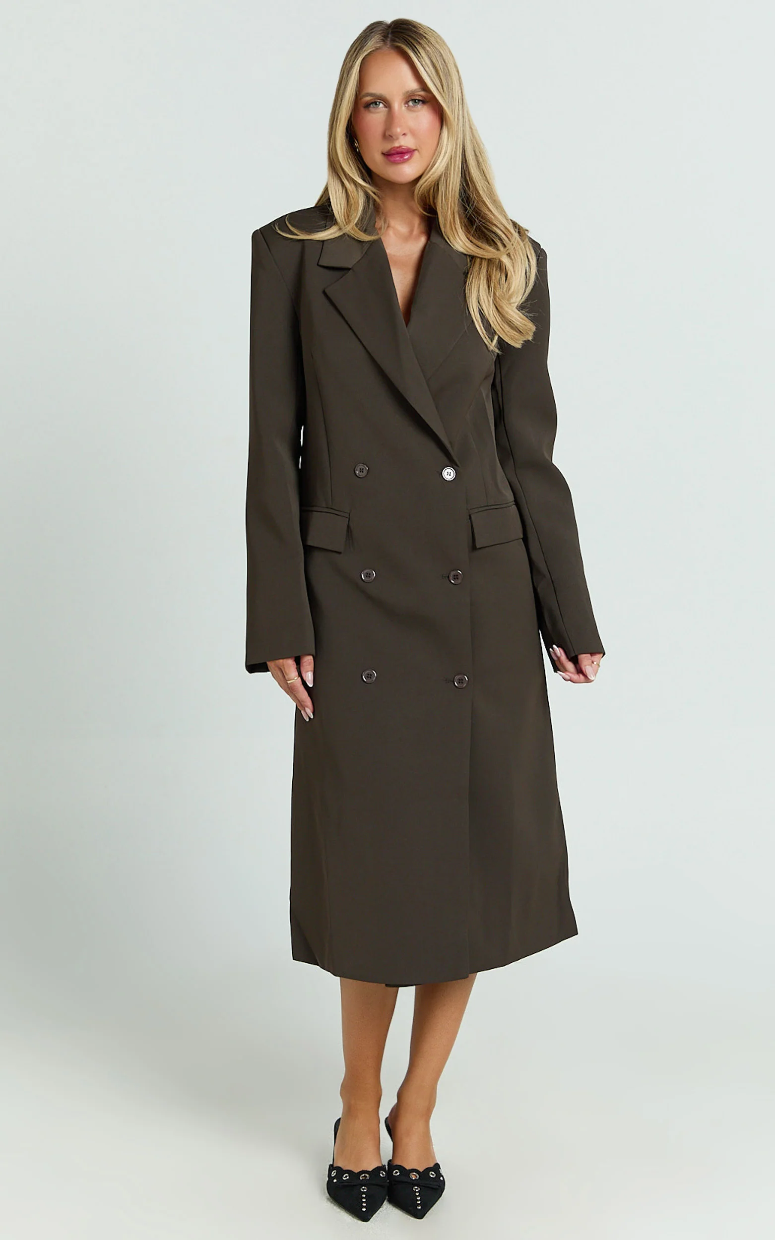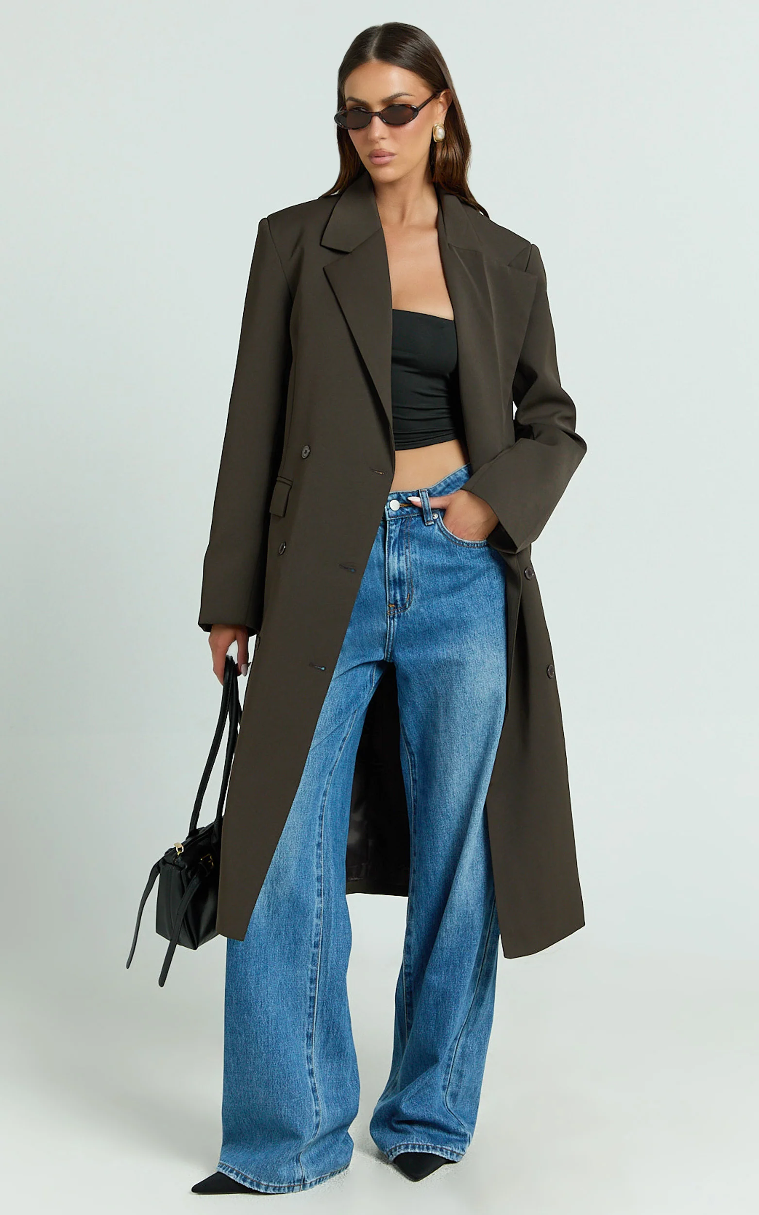 Lorena Coat - Double Breasted Longline Jacket in Dark Brown