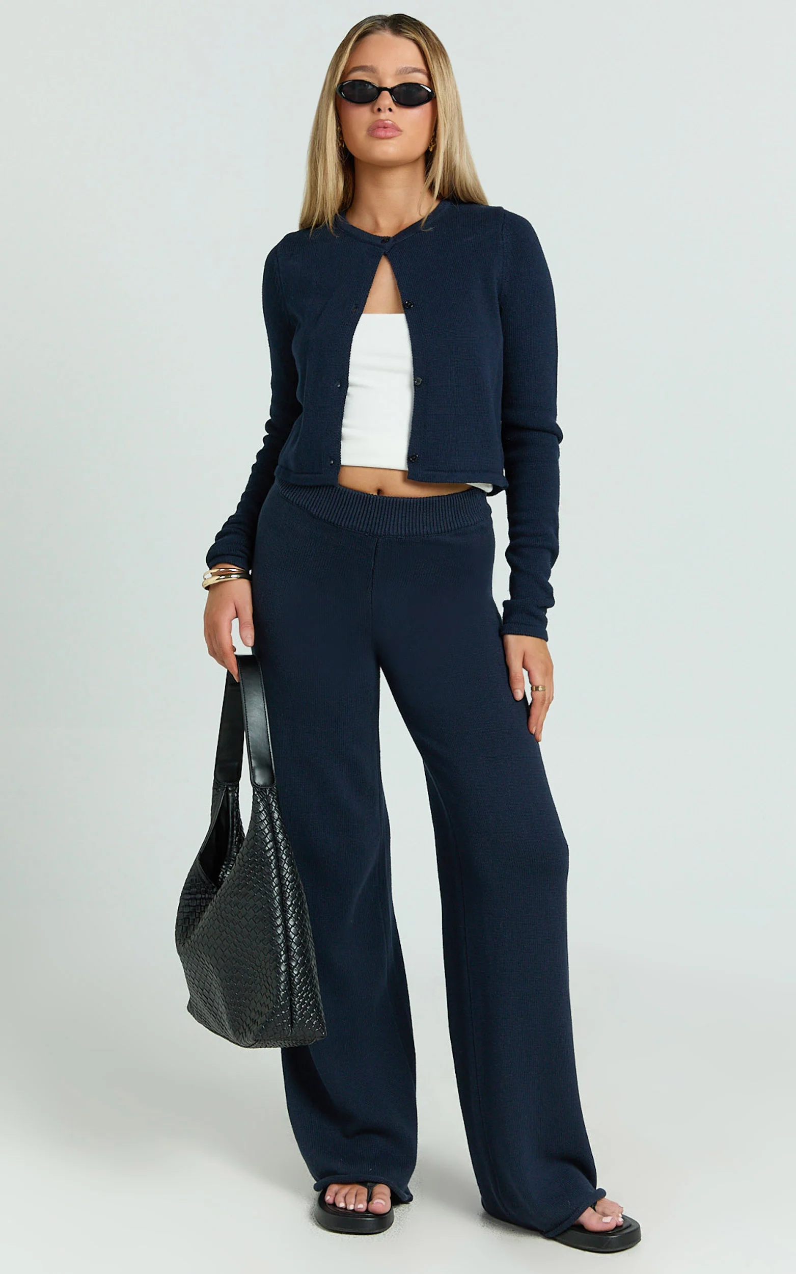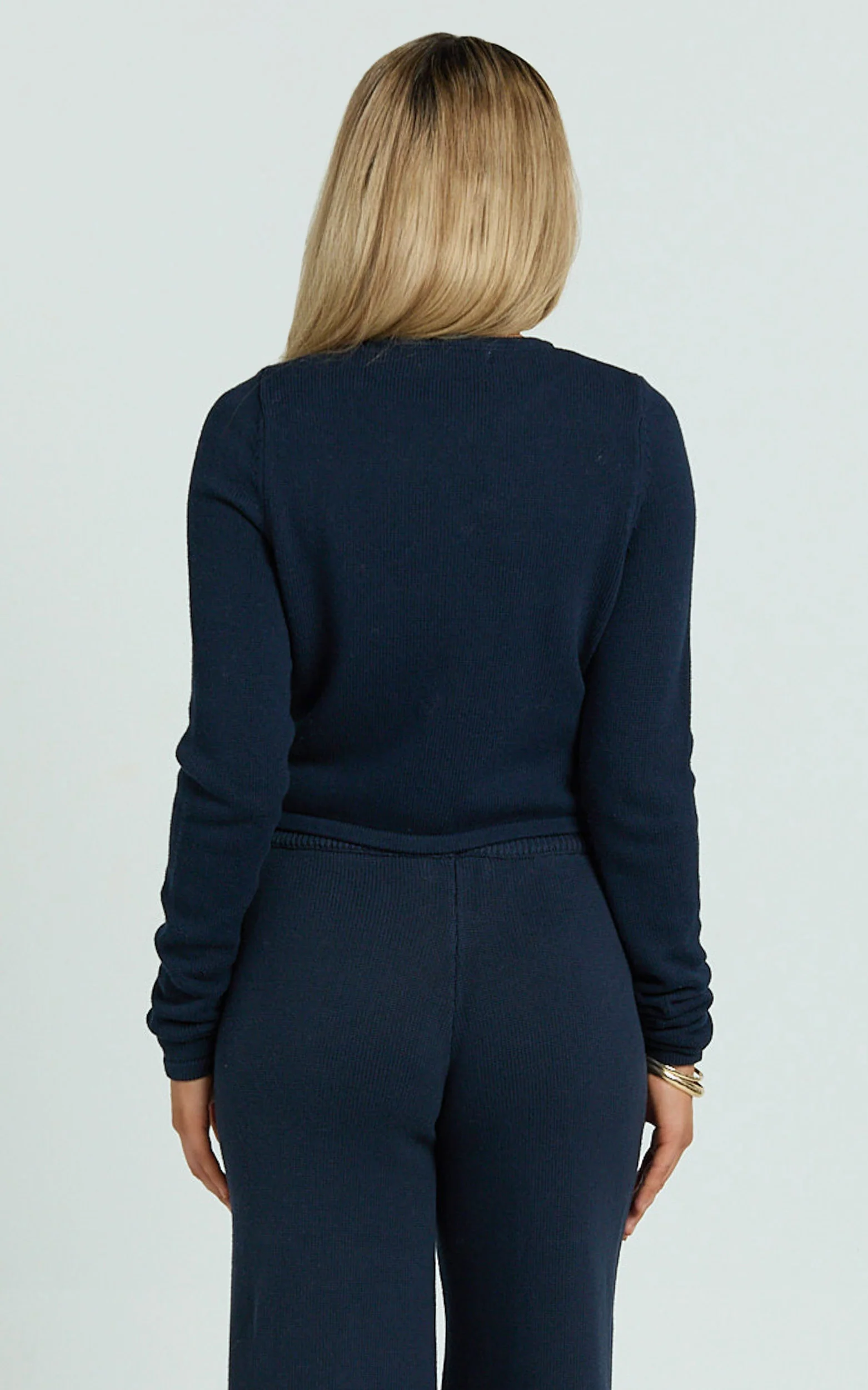 Ottie Cardigan - Long Sleeve Button Down Crop Knit Cardigan in Navy
