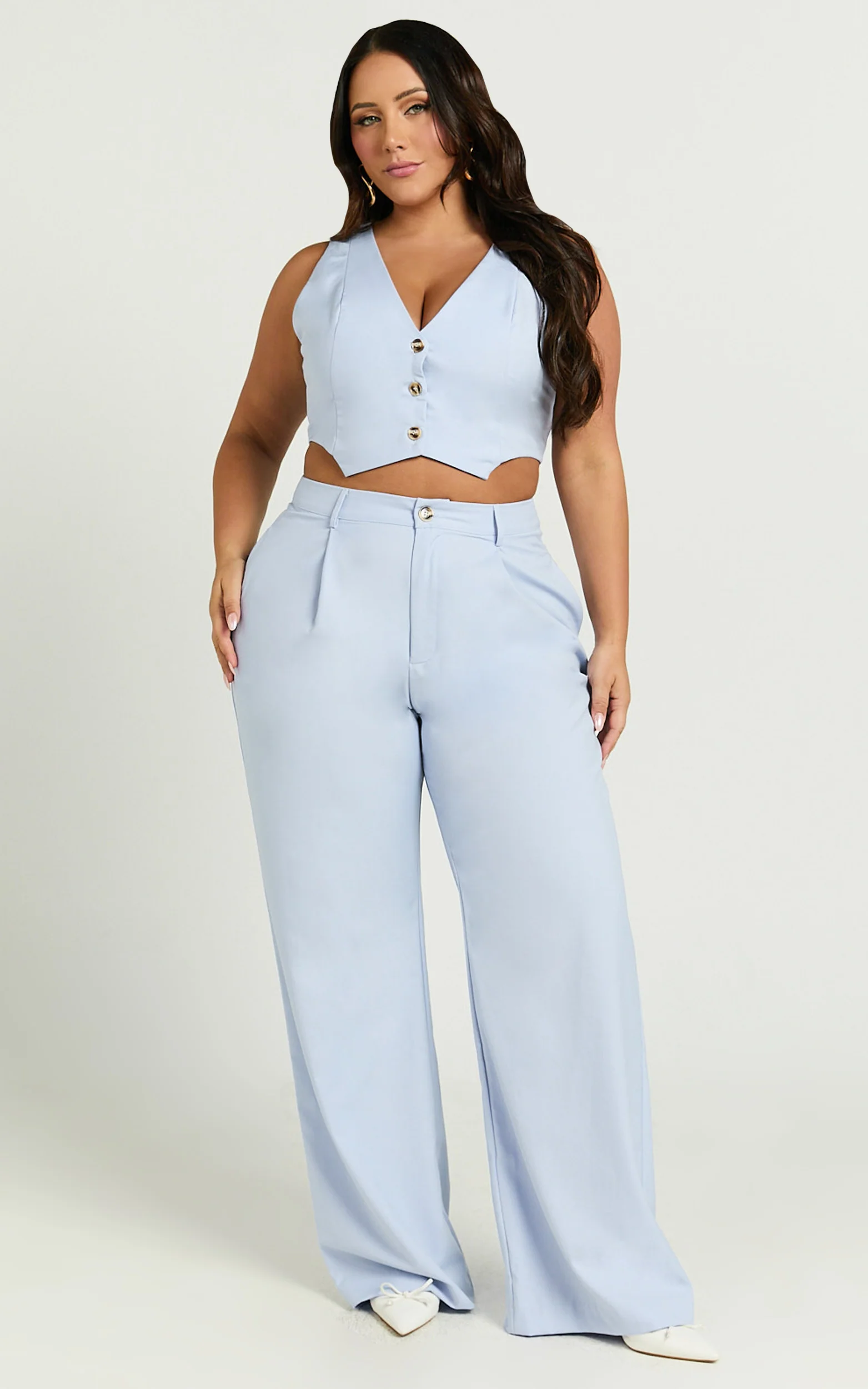Izara Vest - V Neck Button Up Cropped Vest in Light Blue