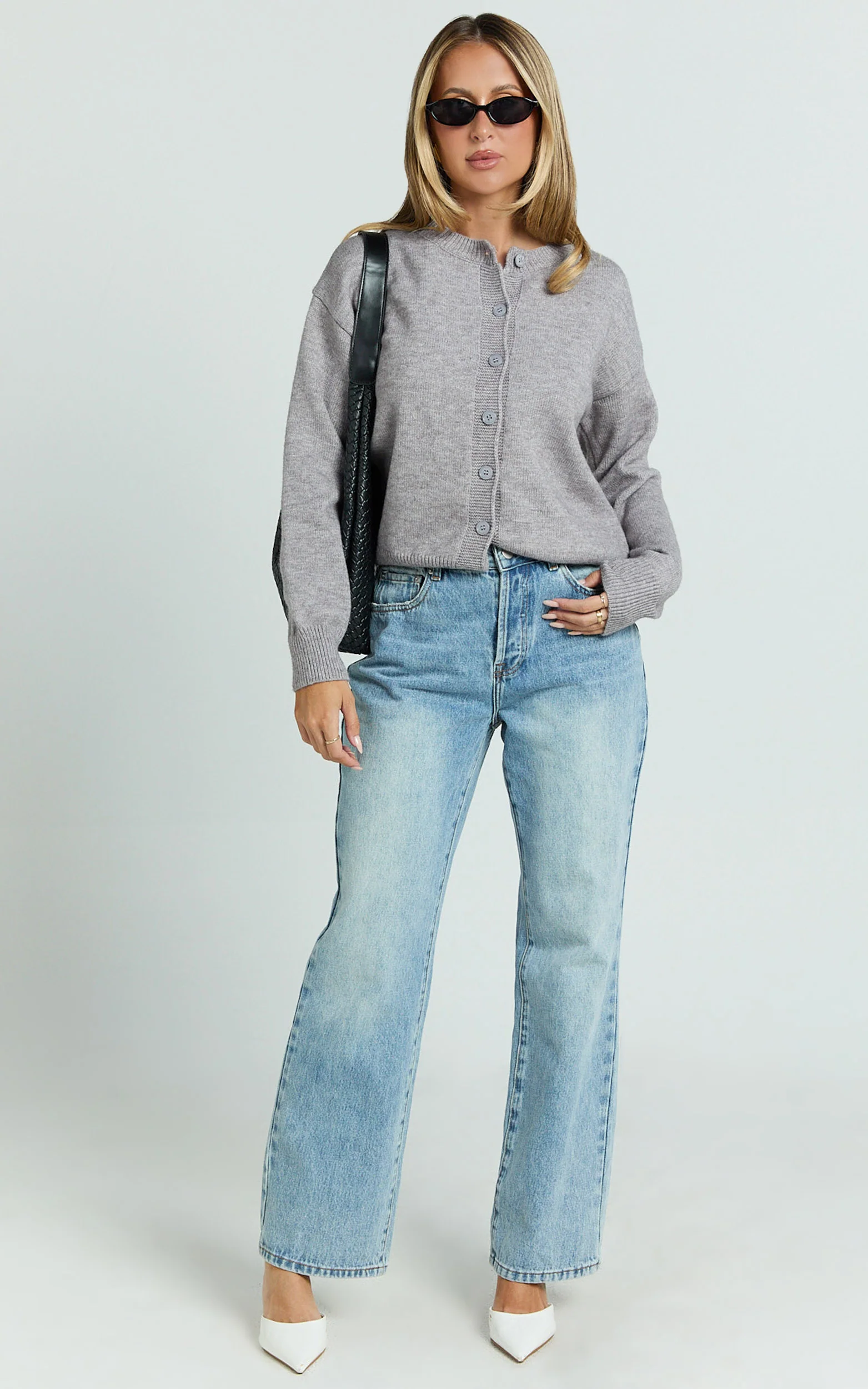 Lucille Cardigan - Button Through Scoop Neck Knit Cardigan in Grey