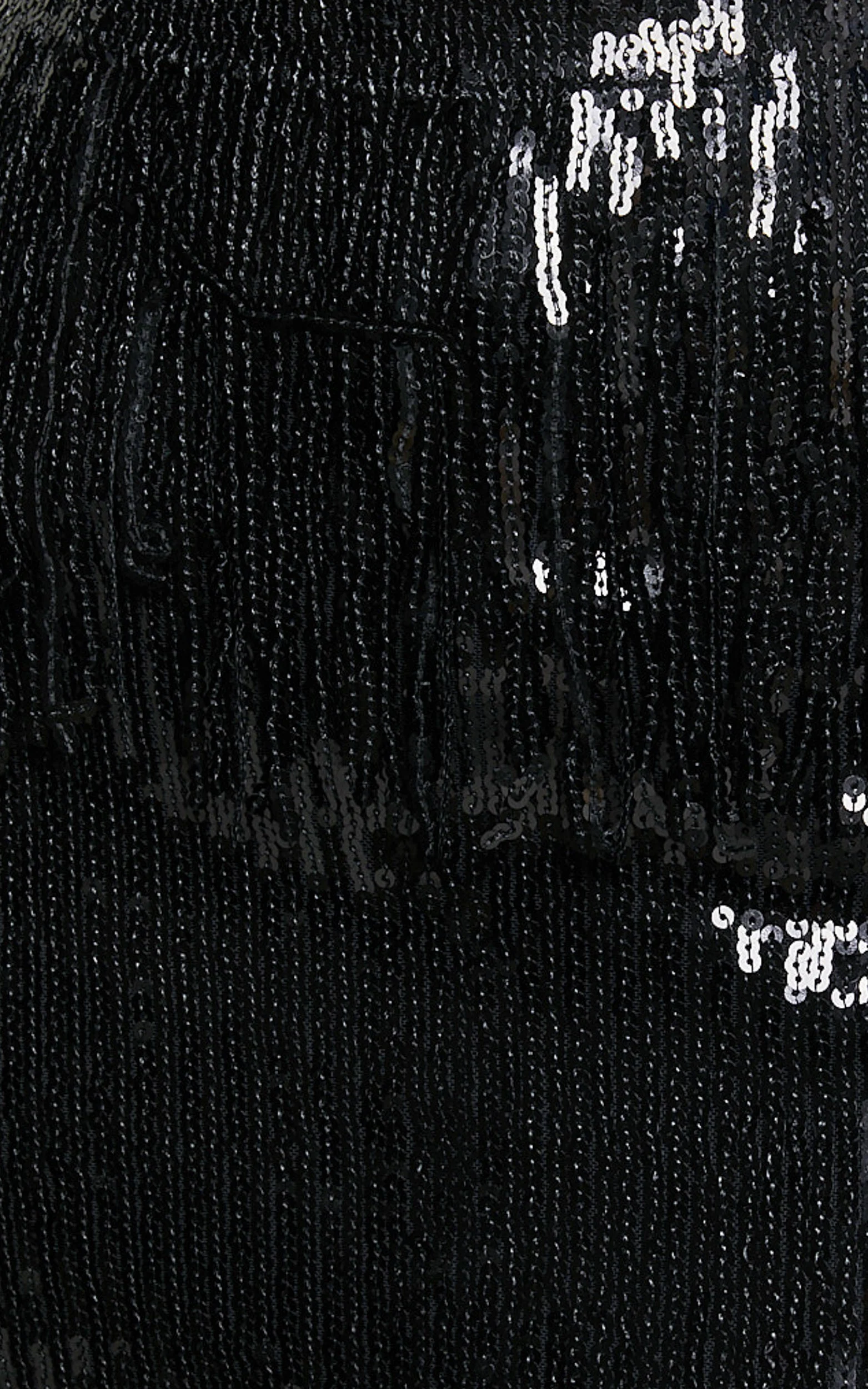 Paris Mini Skirt - Sequin Fringe High Waisted Skirt in Black