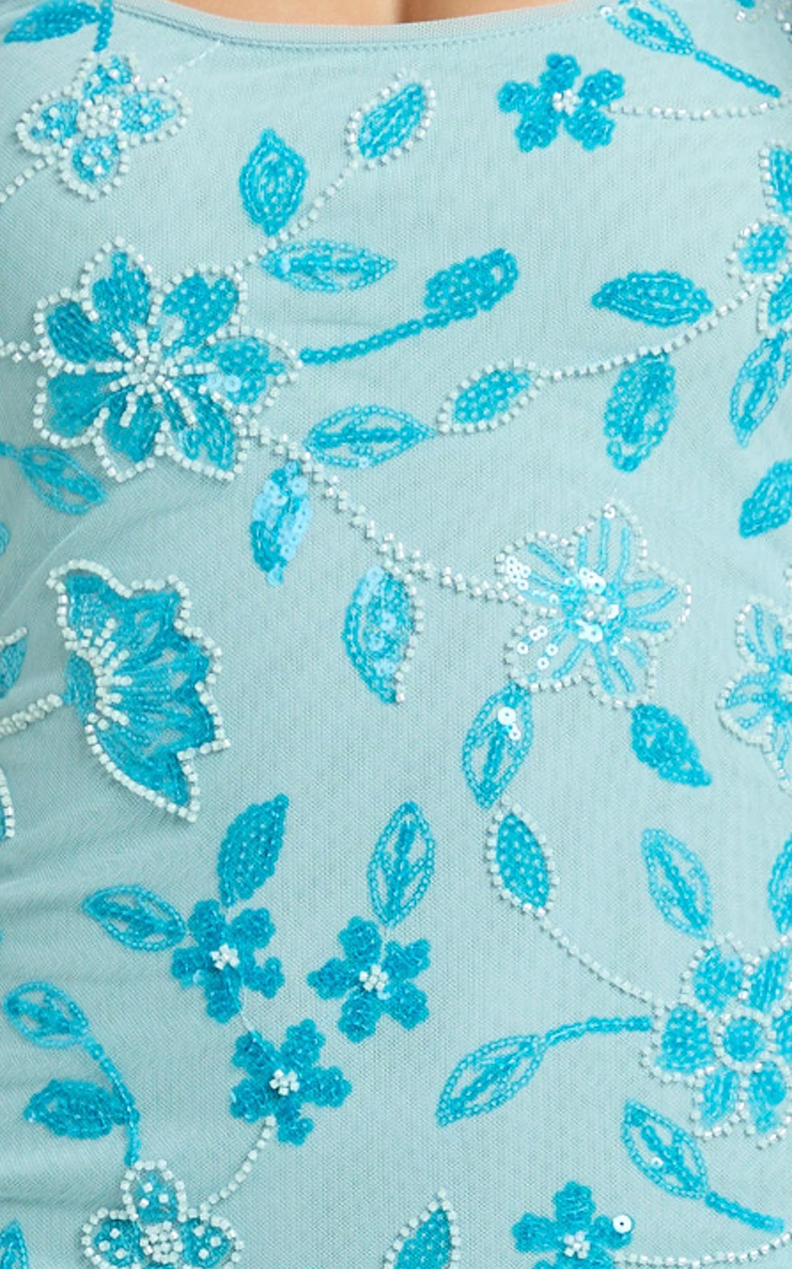 Robbie Maxi Dress - Strappy Scoop Neck Column Fitted Sequin Mesh Dress in Blue