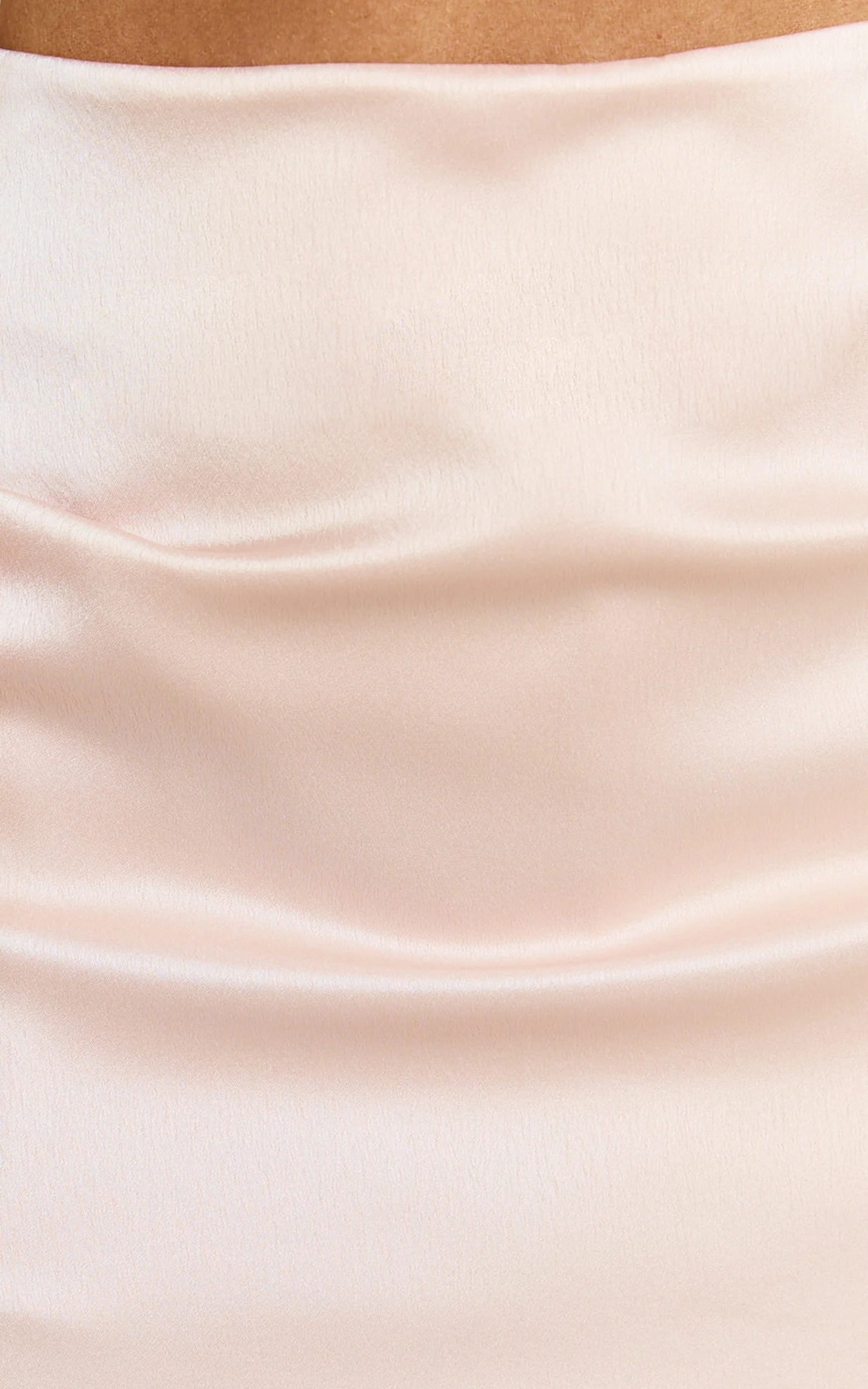 Rylah Mini Skirt - Bow Detail Satin Skirt in Pale Pink