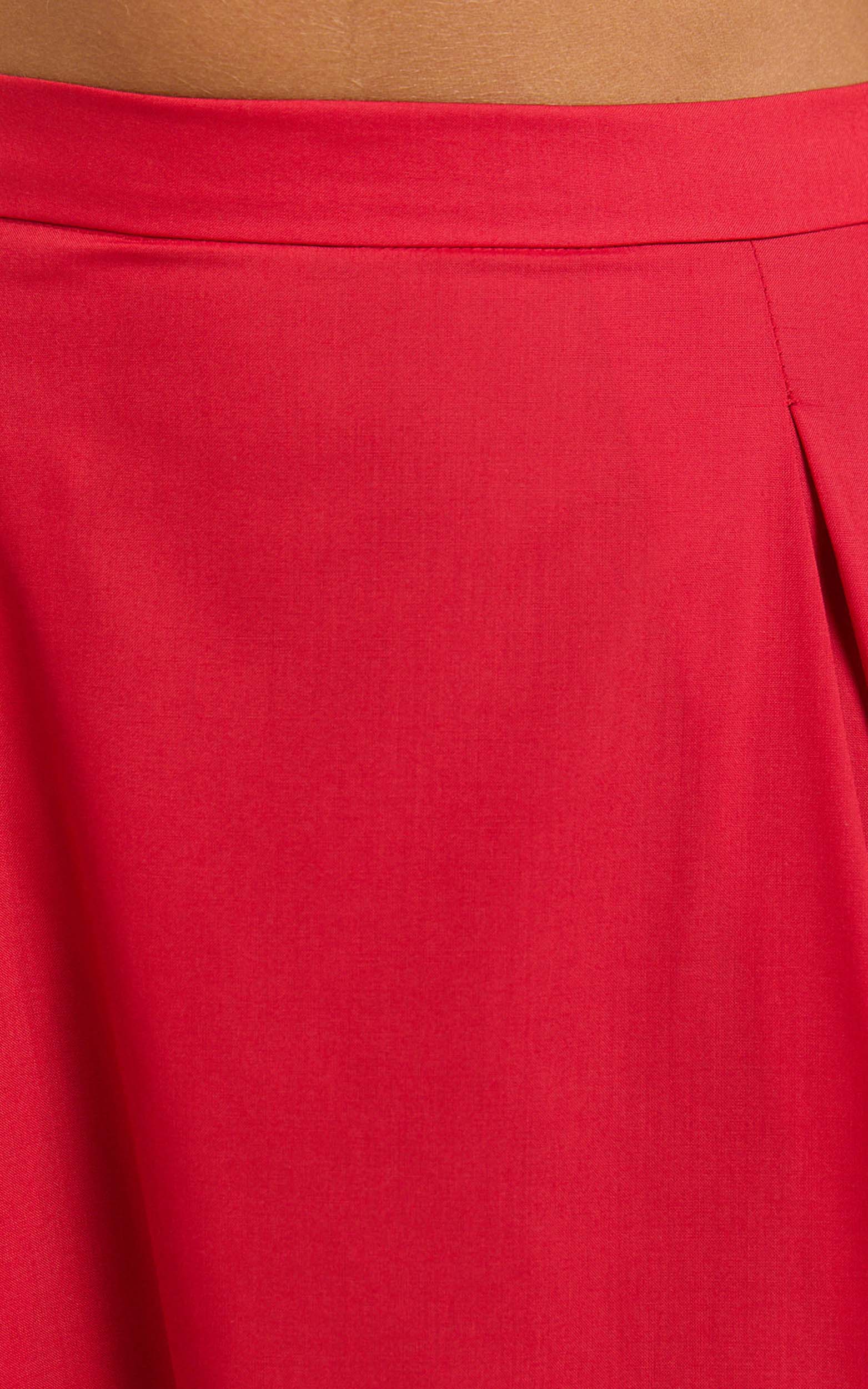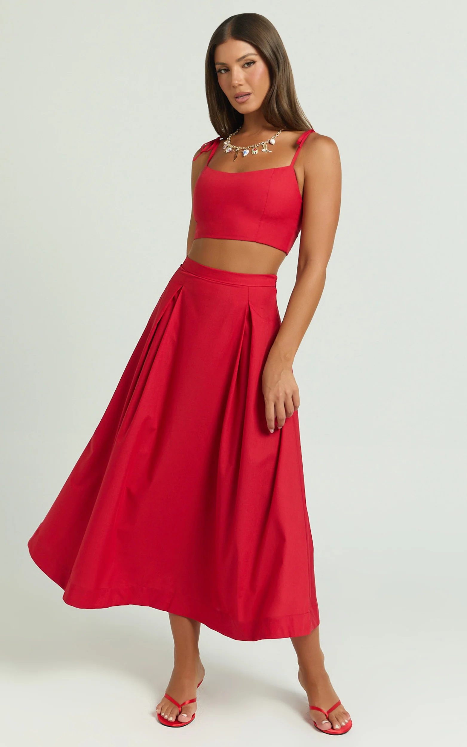 Rosalee Two Piece Set - Strappy Crop Top and High Waisted A Line Midi Skirt Set in Red