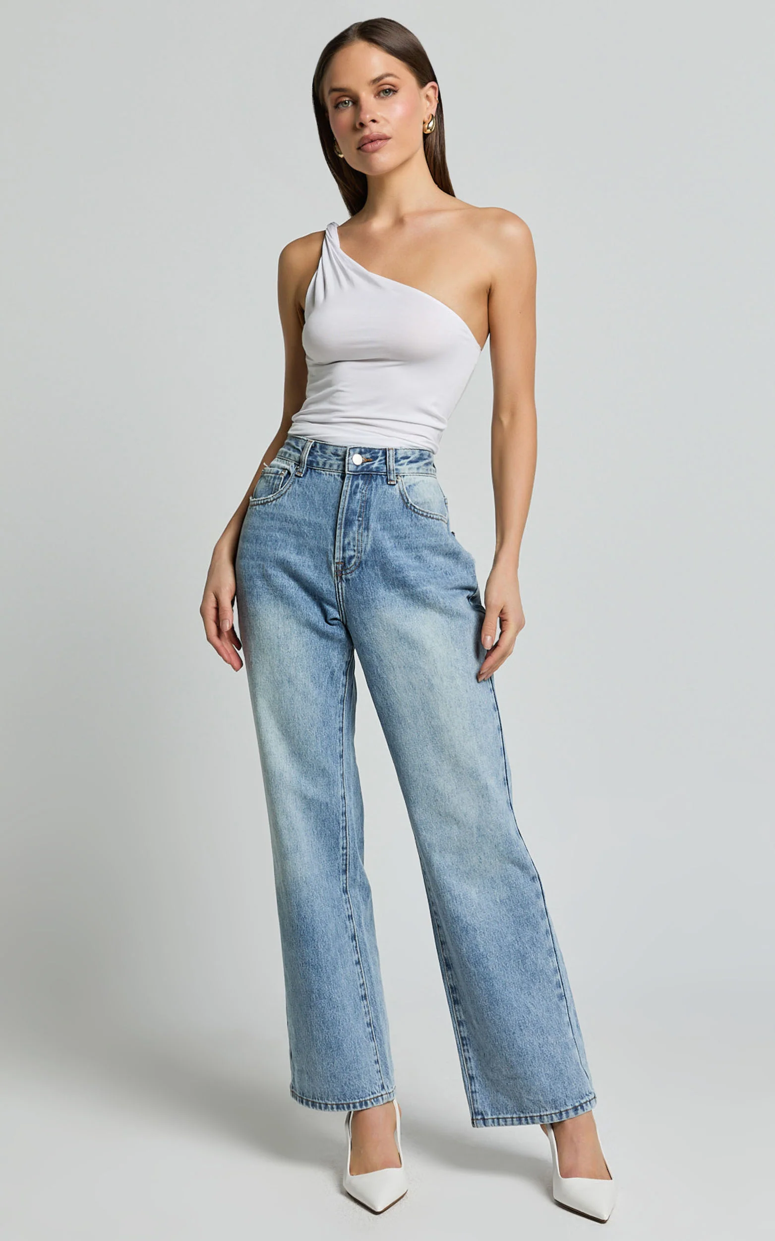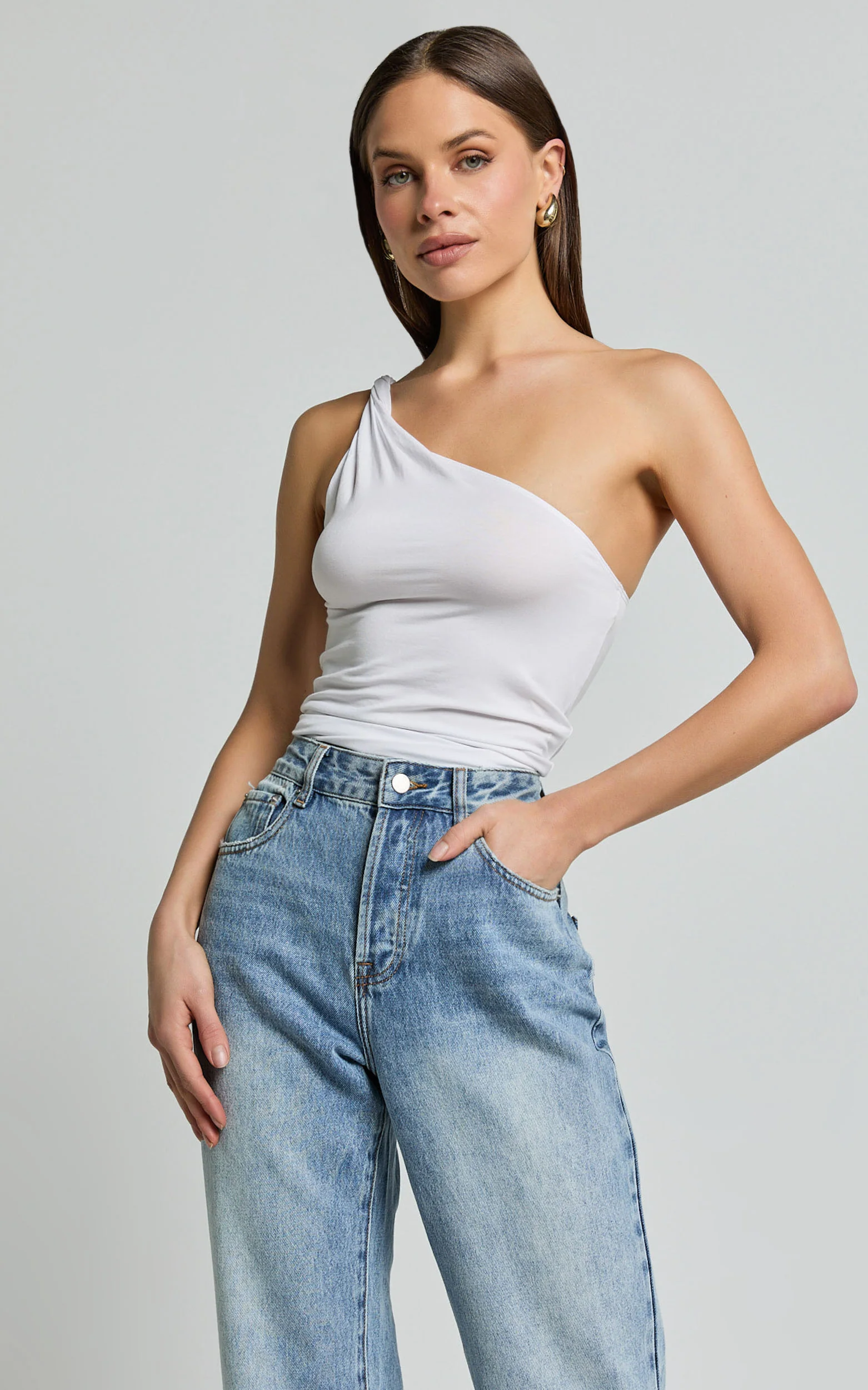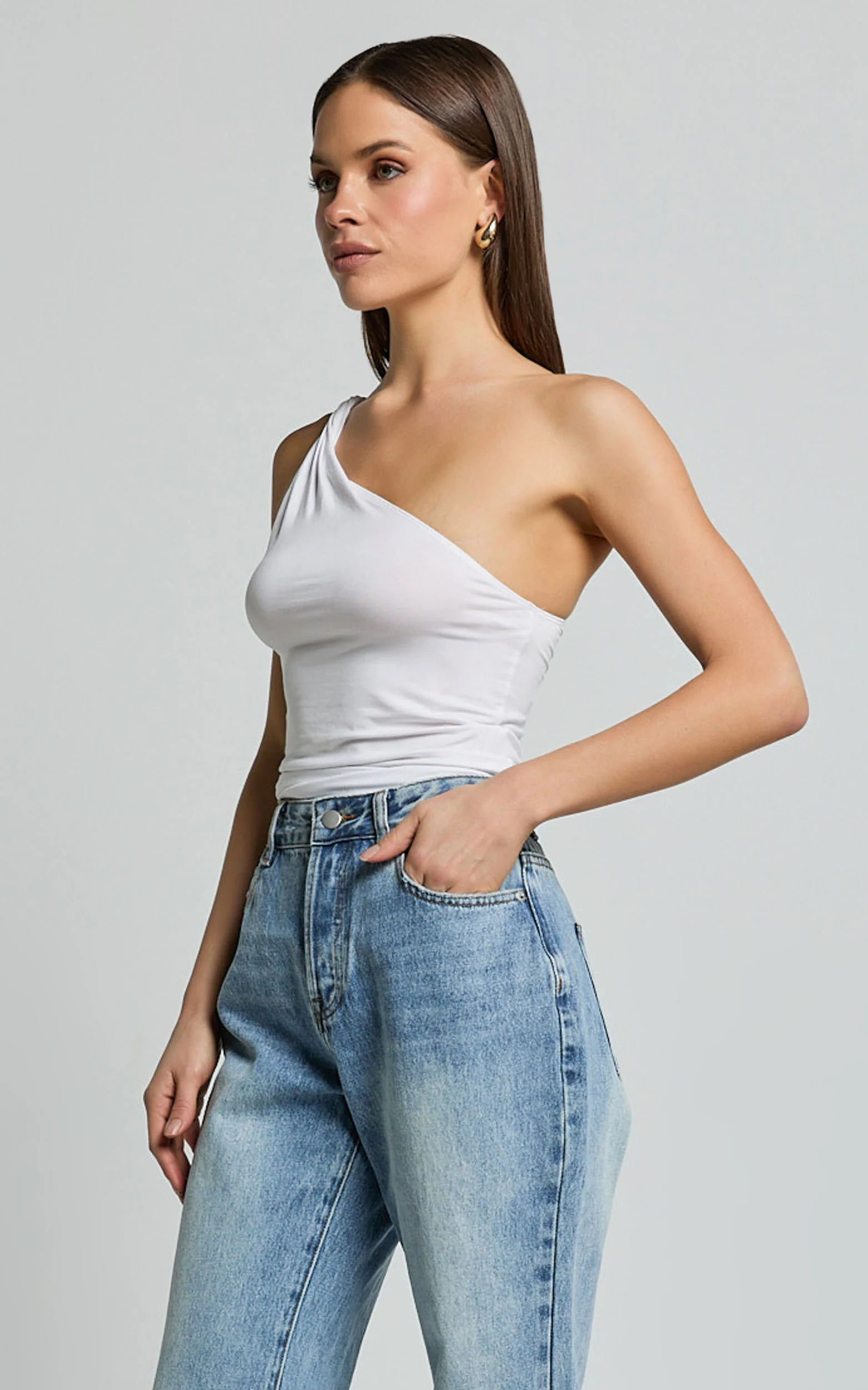 Imani Two Piece Top and Skirt Set - Hardware Detail Strappy Jersey Top And Asymmetric Skirt Set in Off White