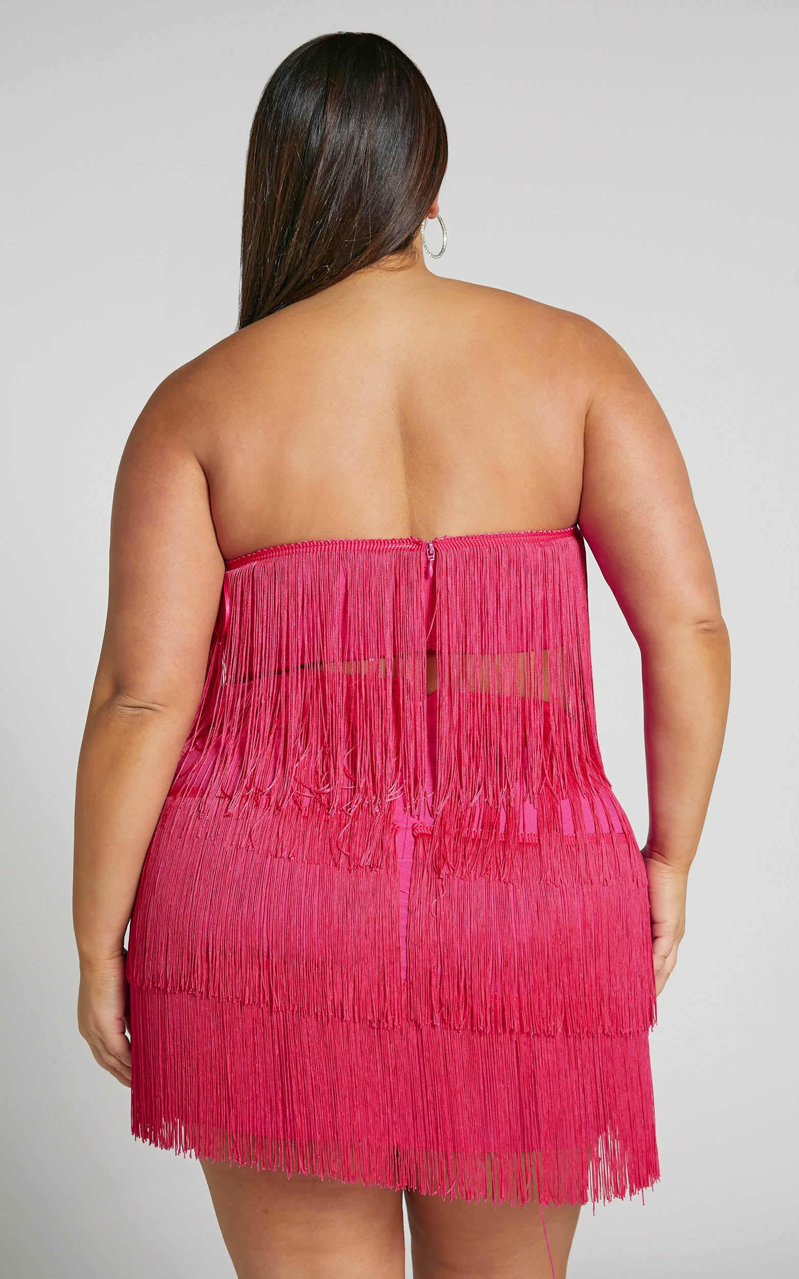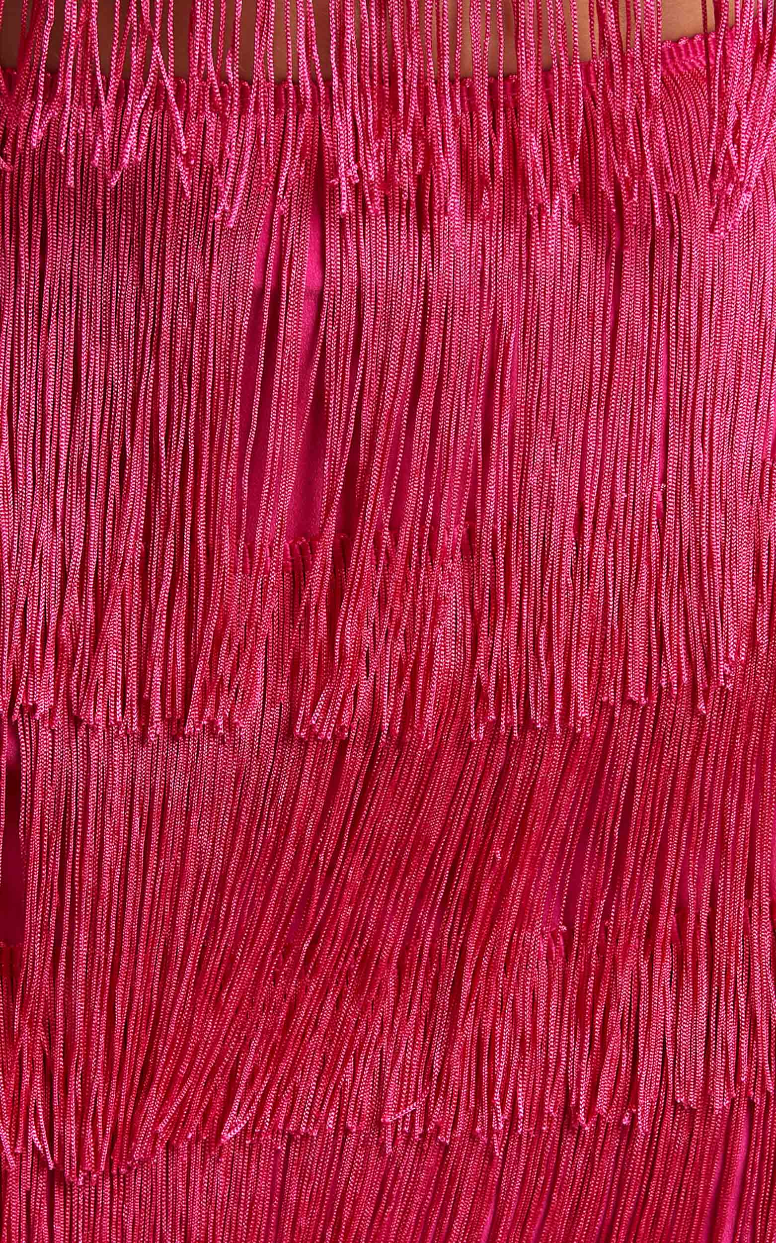 Siofra Two Piece Set - Fringe Crop Top and Mini Skirt Set in Hot Pink