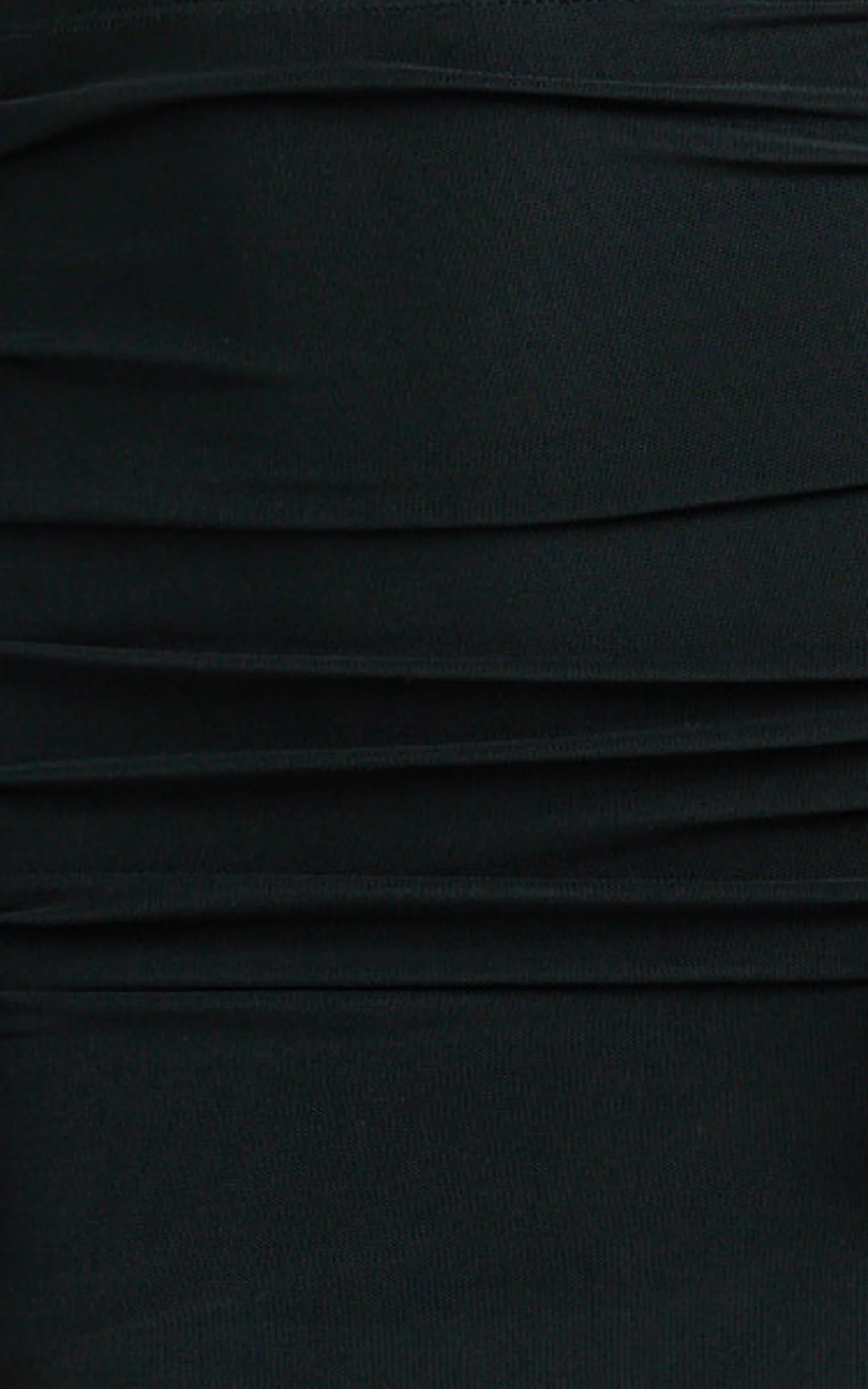 Xandy Two Piece Set - One Sleeve Ruched Mesh Top and Maxi Skirt in Black