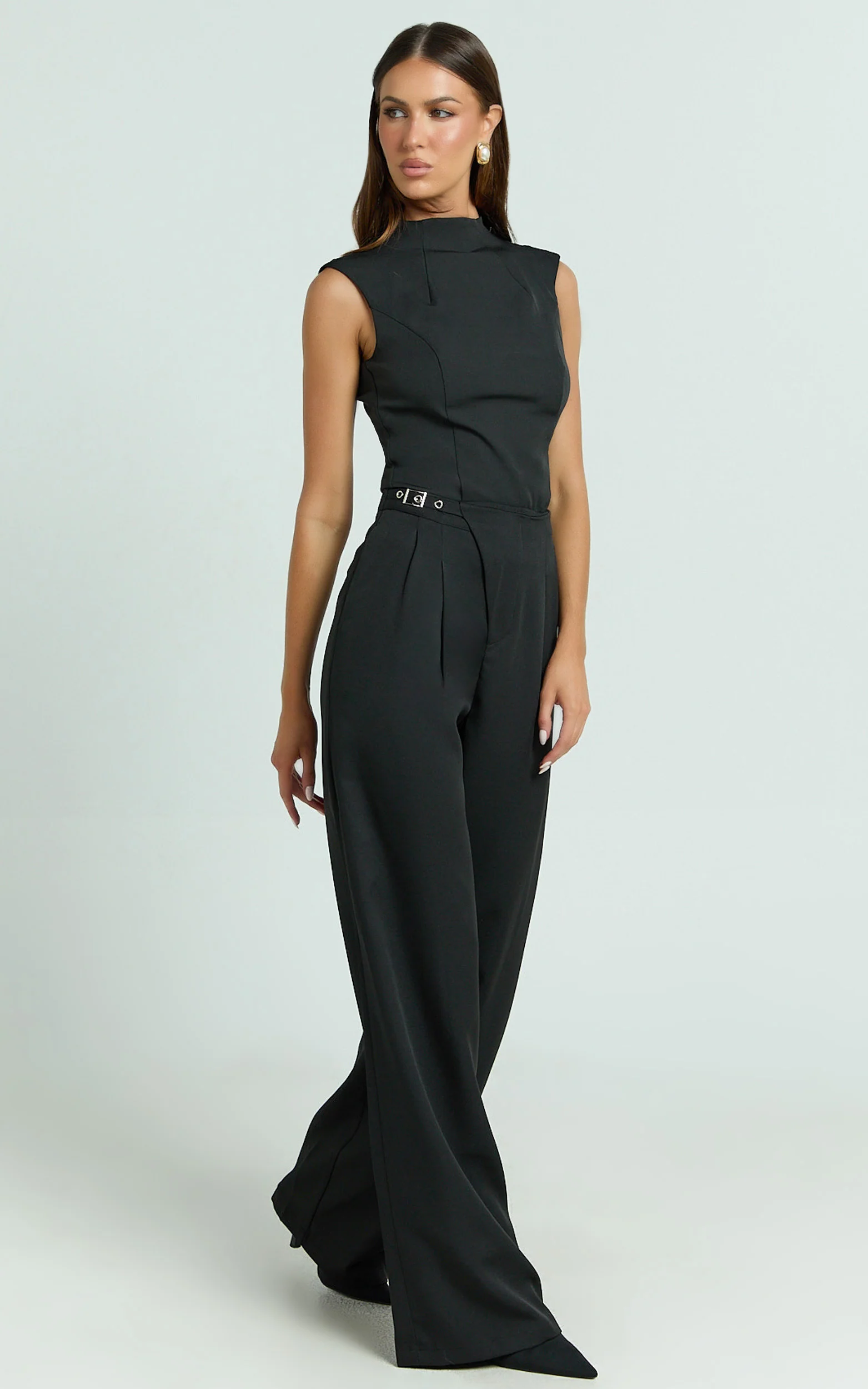 Paxton Top - High Neck Fitted Open Back Sleeveless Top in Black