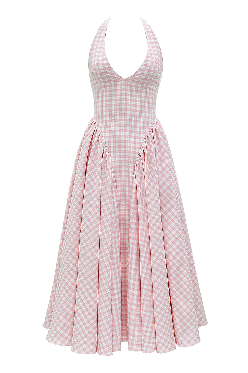 Strawberry Shortcake Gingham Halter Midi Sundress