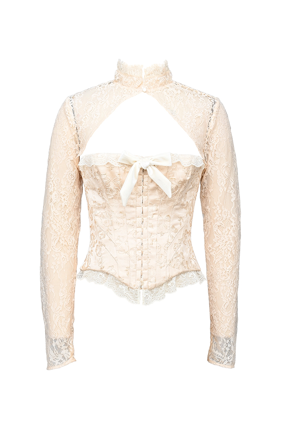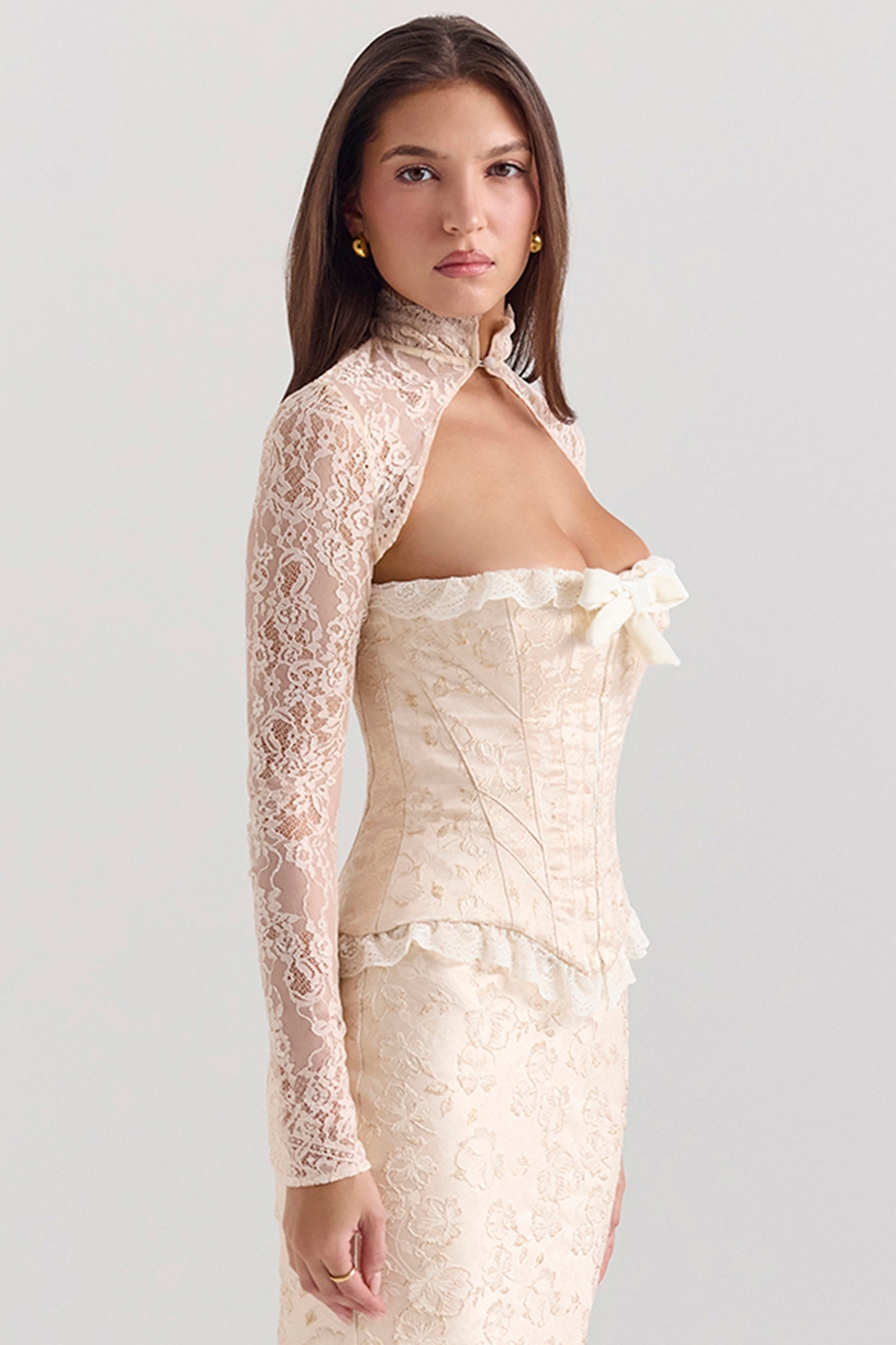 Ivory Metallic Jacquard Corset &Amp; Bolero