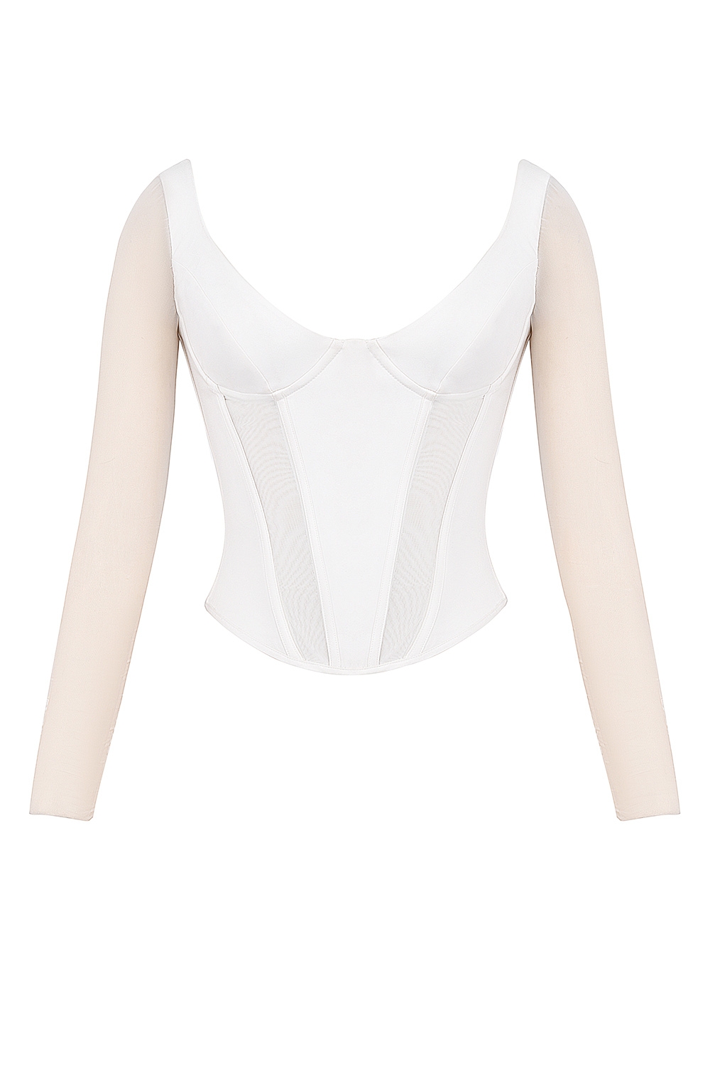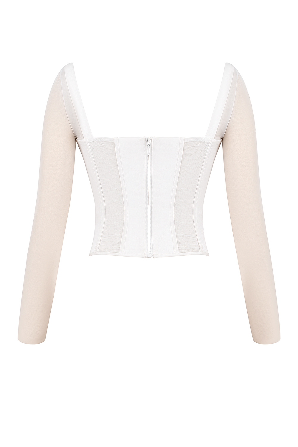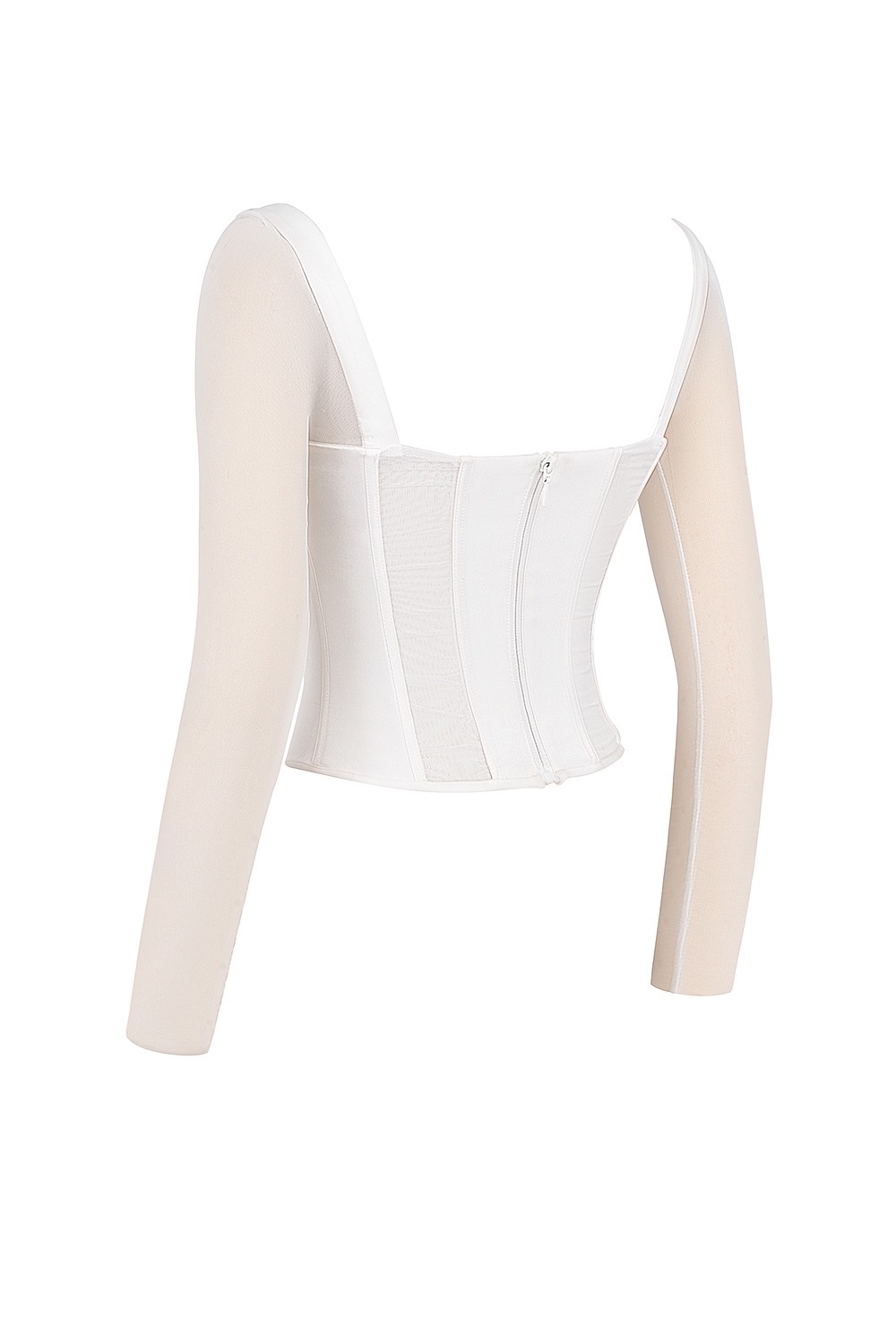 White Long Sleeve Mesh Corset
